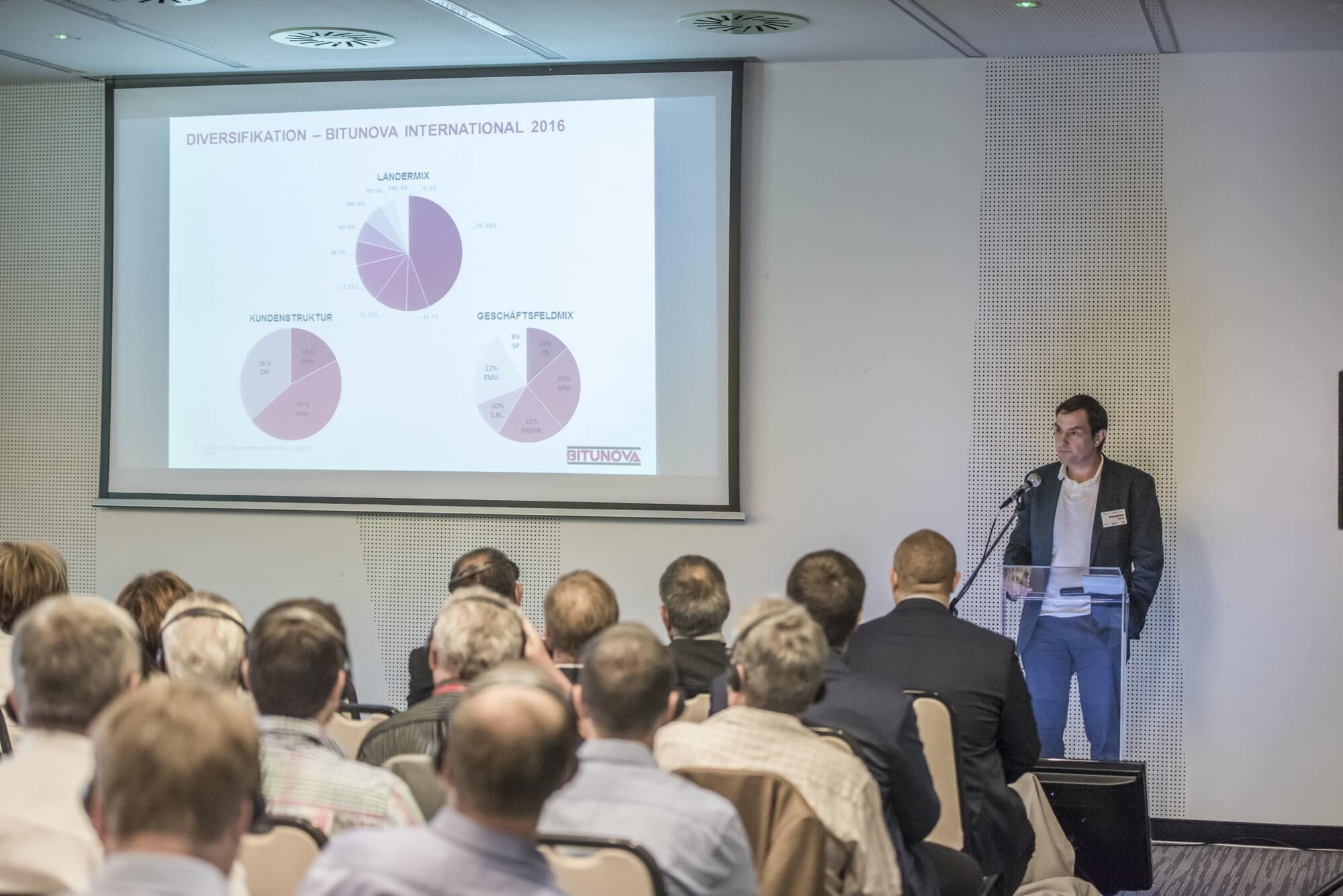 Mindezt Szilvai József Attila, a Magyar Közút műszaki vezérigazgató-helyettese is hangsúlyozta nyitóbeszédében. Hozzátette, az útfelújításnak volt rossz korszaka is Magyarországon, de szerencsére most egy 150 milliárd forintos útfelújítási program kezdetén járunk, amely nem csak uniós, hanem hazai forrásokból is történik. Ehhez csatlakozva Herwig Sumetzberger, a Strabag konszernhez tartozó Bitunova csoport direkció vezetője örömét fejezte ki, hogy második alkalommal is megvalósulhatott a konferencia, s kiemelte, hogy a bitumenemulziót fejlesztő és gyártó osztrák Bitunova 1991 óta van jelen Magyarországon.