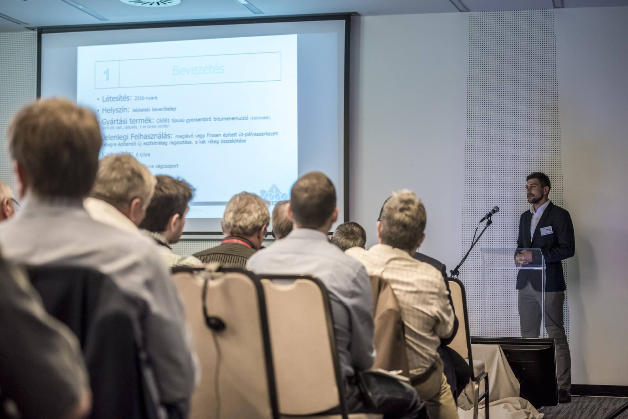 A konferencia során számos előadás elhangzott a különböző technológiákról, műszaki megoldásokról, szabályozásról és eddigi tapasztalatokról. Harald Zaismann, a Bitunova Kft. főtechnológusa a hideg, kevert felületi bevonatról beszélt, amely az utat teljes felületében lezárja és vékony rétegű. Jobb az esővíz elvezető képessége, kevesebb vizet vernek fel róla a járművek, mindez növeli az élettartamot és a közlekedésbiztonságot is.
