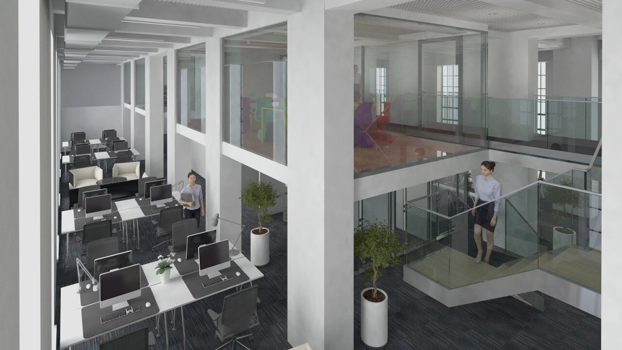 A három éve indult Markó Irodák 9 projekt célja volt, hogy a transzformátorház megtartsa impozáns formáját és stílusát, a belső terek pedig modern megjelenést és új funkciókat kapjanak. A merev irodai skatulyák helyett kihasználták a sajátos térkapcsolatokat, így a fény, a galériák, a zöld teraszok és télikertek is mind hangsúlyozzák a tér játékosságát.