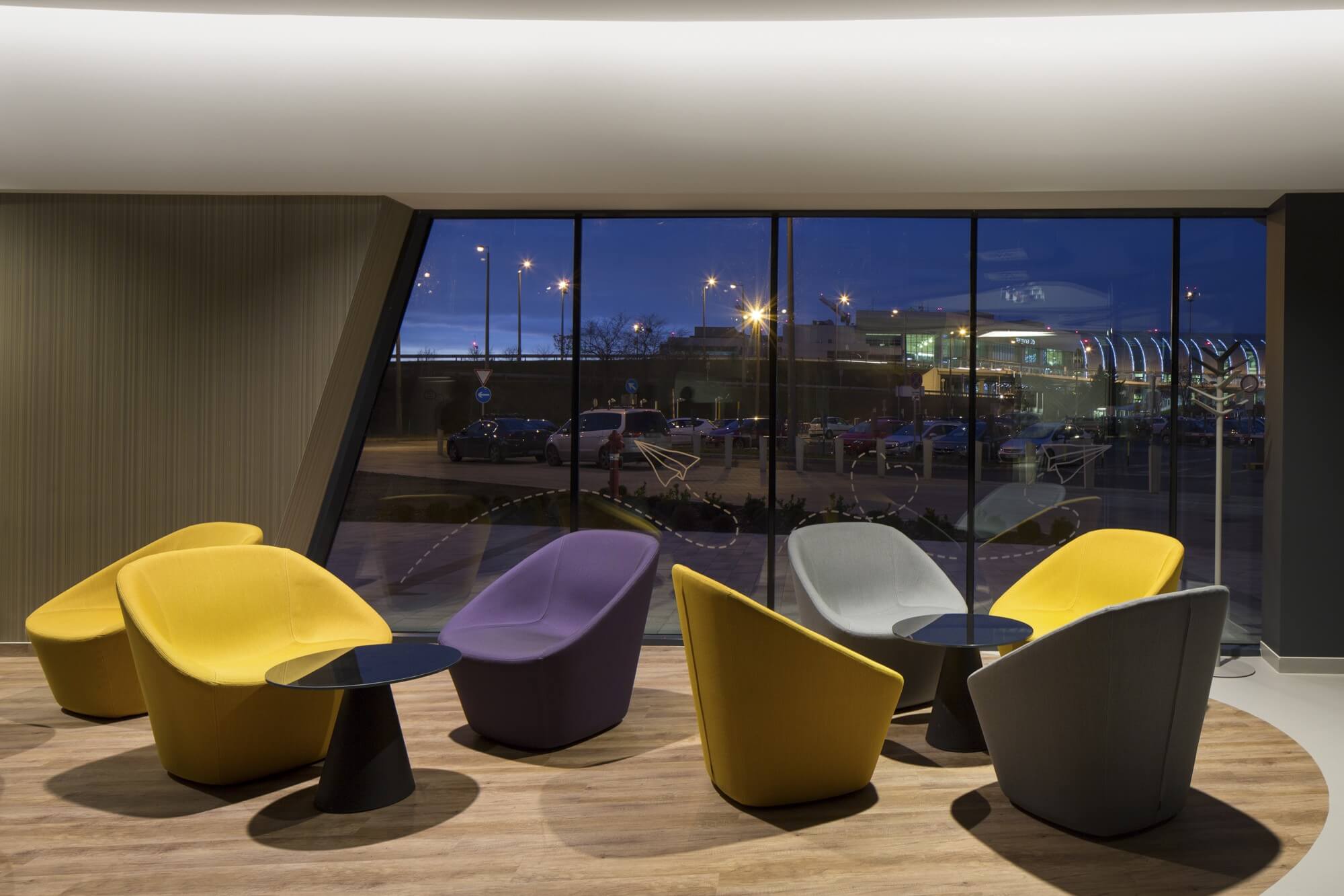 A 2-es terminál előtti volt külső parkoló helyszínén épült fel az ötszintes, 5200 négyzetméteres szálloda, melynek belső tereit és 145 szobáját a repülőtér hangulatát idézve és a kor belsőépítészeti trendjeit követve alakított ki az építésztervező Aspectus Architect, Szerdahelyi László és Pesti József építészek közreműködésével – áll a helyszínen kiosztott, szerdai sajtóközleményben.