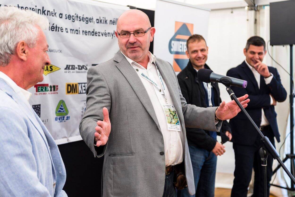 „Az A-Híddal a kezdetektől részt veszünk az infrastruktúra kupán, s párszor dobogós helyezést is sikerült elérnünk” – mondta el a VIP fogadáson a Magyar Építők szerkesztőségének Sal László, az A-Híd Zrt. vezérigazgatója. „Jó alkalom ez, hogy oldott hangulatban, más körülmények között is találkozhassunk a szakmabeliekkel” – tette hozzá. A vezérigazgató azt is elmondta, hogy a cégcsoportnak két focicsapata is van: az egyikben a fiatal munkatársak, a másikban pedig a volt kollégák játszanak rendszeresen.