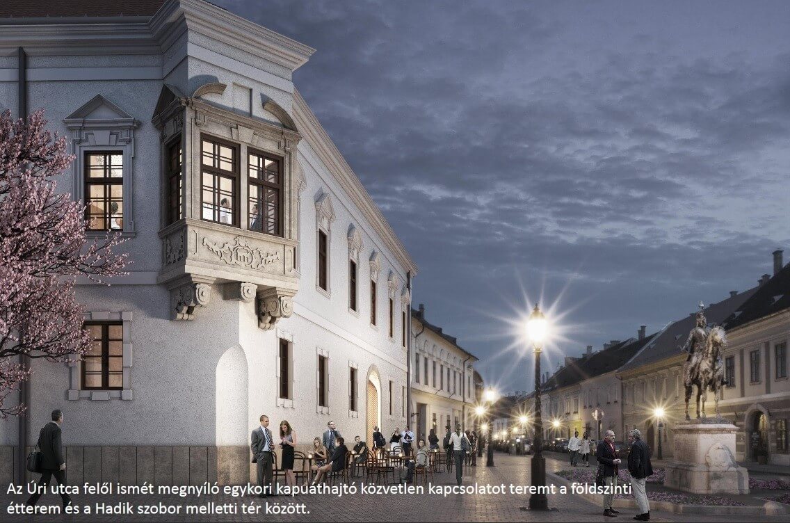Az Úri utca 21. szám alatt egy éve zajló projekt keddi sajtóbejárásán kiderült, az első szakaszban műemléki rekonstrukció, az épület korszerűsítése, illetve bővítése történt meg.