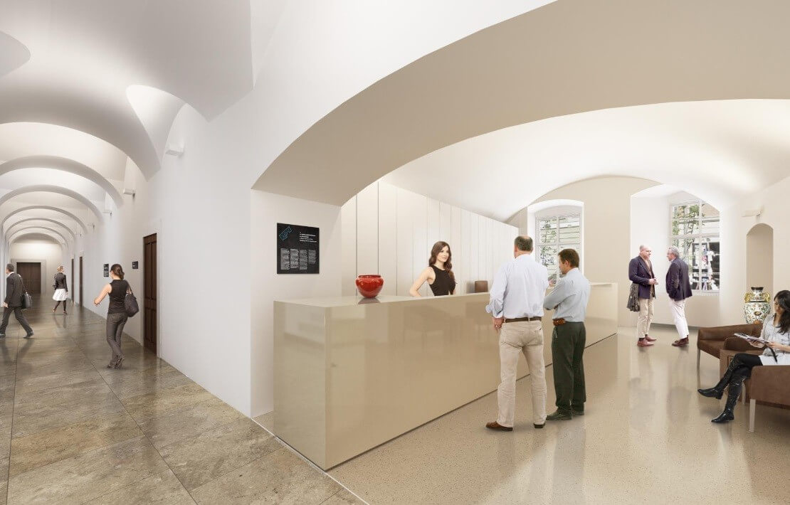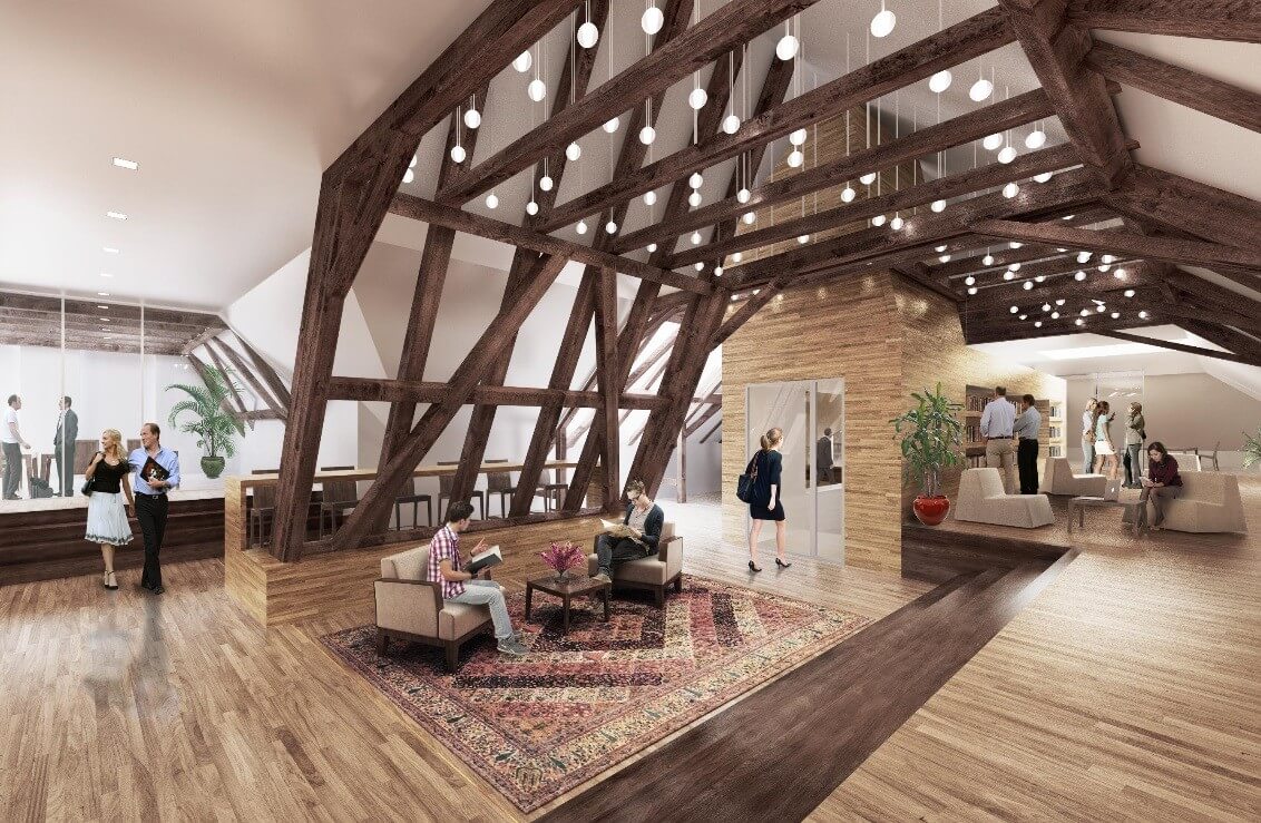 A bővítés egyik elemét az adta, hogy az épület két udvara üvegfedést kap, így az eddig külső terek belsőkké válnak: éttermi fogyasztótér, az intézmény lounge-kávézója és fogadótér lesz itt. További bővítést jelent, hogy az épület eddig kihasználatlan, 300 éves padlástere beépítésre és hasznosításra kerül: itt a doktori iskola előadótermei, oktatási helyiségei és kutatóterei helyezkednek majd el.