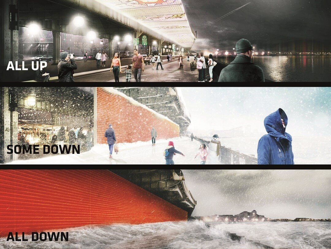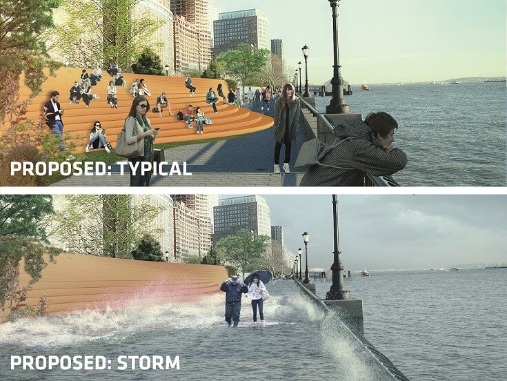 Idén kezdődik az építése annak a nagyszabású New York-i fejlesztésnek, amelyet bronzéremmel díjazott 2015-ben a LafargeHolcim. A Dryline, vagy más néven a „Nagy U” egy Dél-Manhattan köré felépülő, 12 kilométer hosszú árvízvédelmi gát. A megemelt partvonal egyben parkként is működik majd: lesznek itt padok, bicikliutak és -tárolók, de még gördeszkás korlátok is. Néhány utat is megemelnek, amelyek alá további közösségi tereket lehet kialakítani.