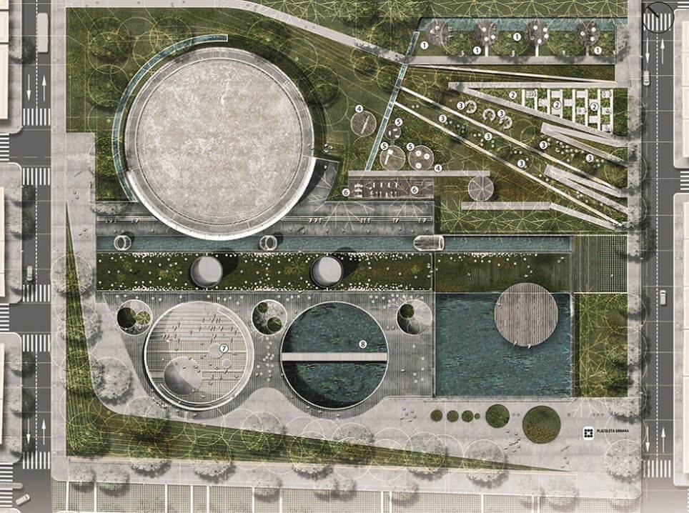 Felépült egy tető, amelynek köszönhetően két szint alakult ki, a felsőn parkot hoztak létre. Alul a két régi tartály közül az egyik ma nyitott auditórium, a másikat pedig újra feltöltötték vízzel, vízinövényeket ültettek bele, fölé pedig egy nyitott átjárót építettek. Az átalakításhoz újrahasznosított anyagokat használtak, és helyi emberek végeztek el a munkát: minden téren a költségek minimalizálása és a közösség bevonása volt a cél.