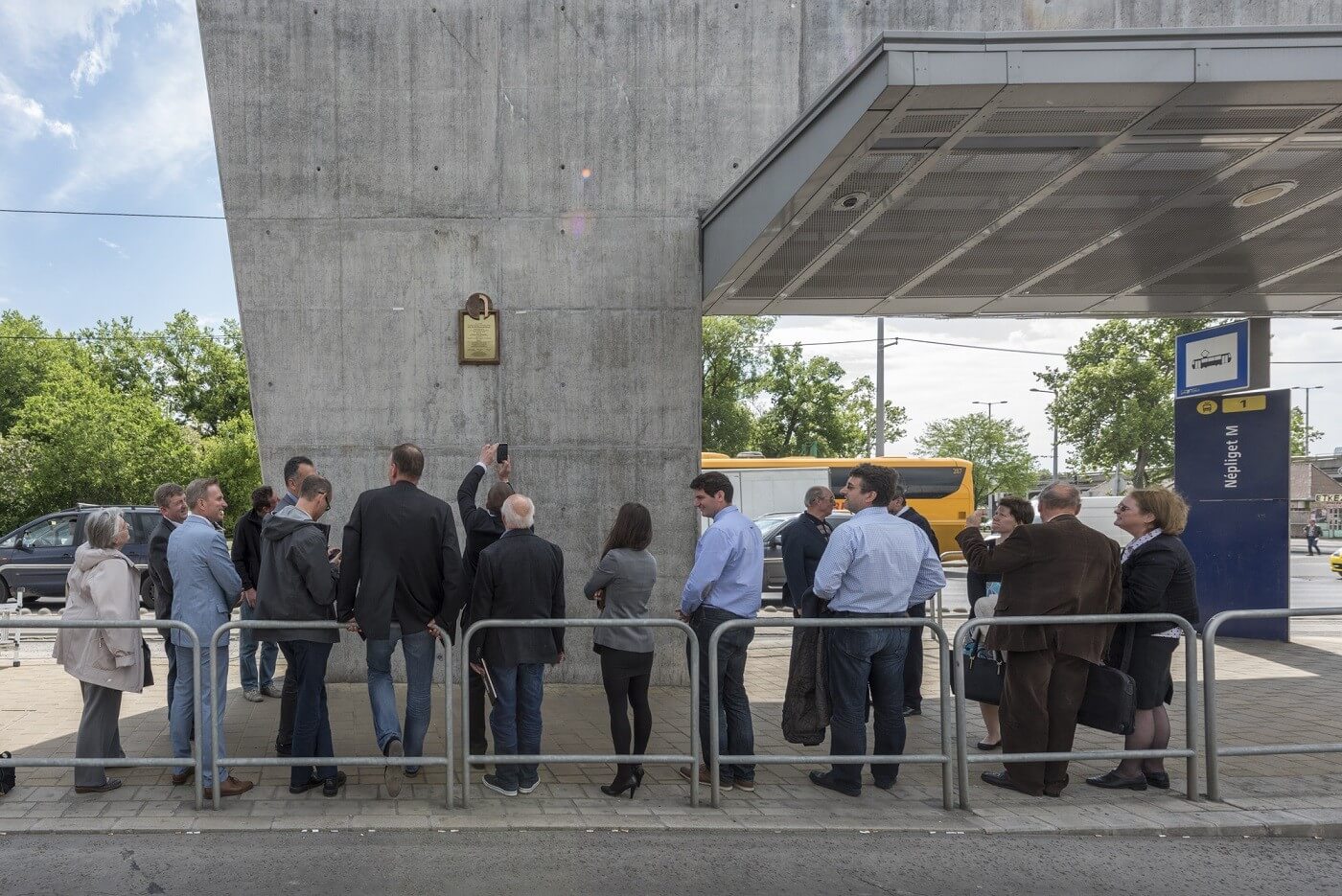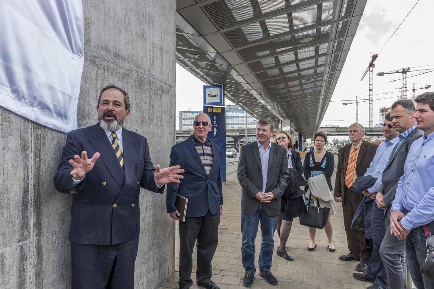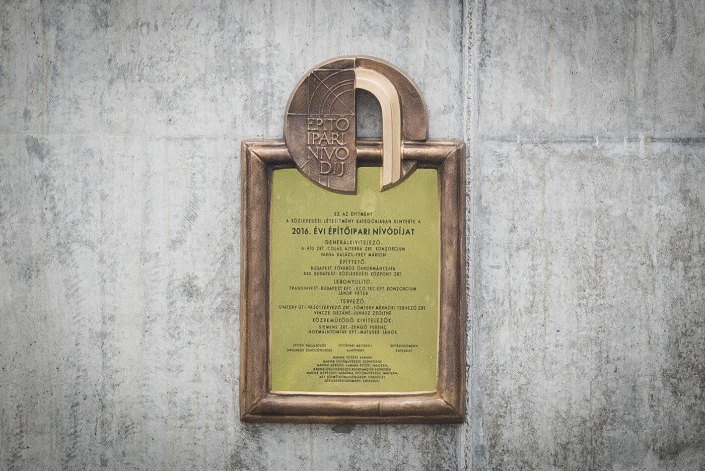 A tavaly decemberben elnyert Építőipari Nívódíj tiszteletére az A-Híd Zrt. pénteken táblát avatott a járat népligeti megállójában.