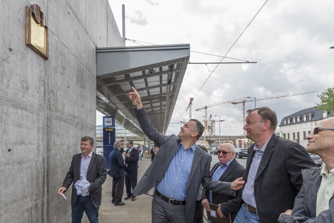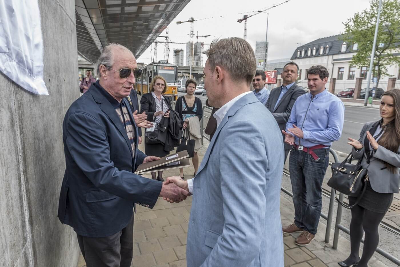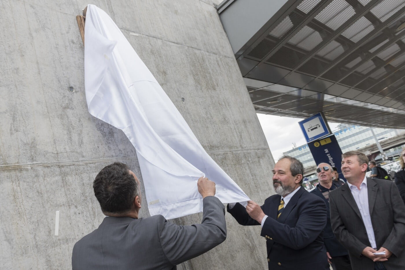 A tavaly decemberben elnyert Építőipari Nívódíj tiszteletére az A-Híd Zrt. pénteken táblát avatott a járat népligeti megállójában.