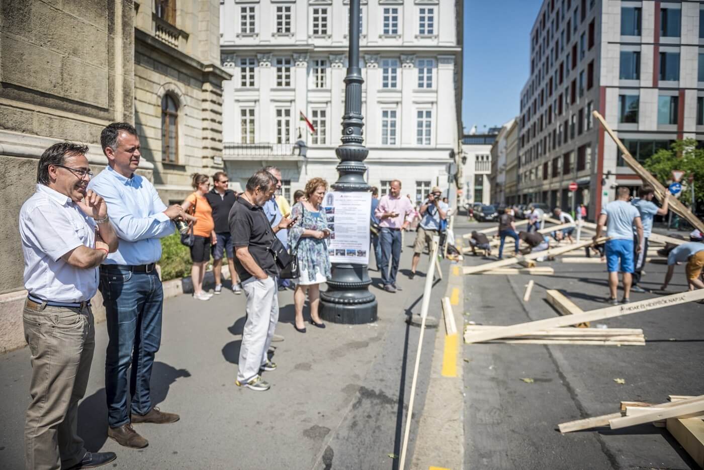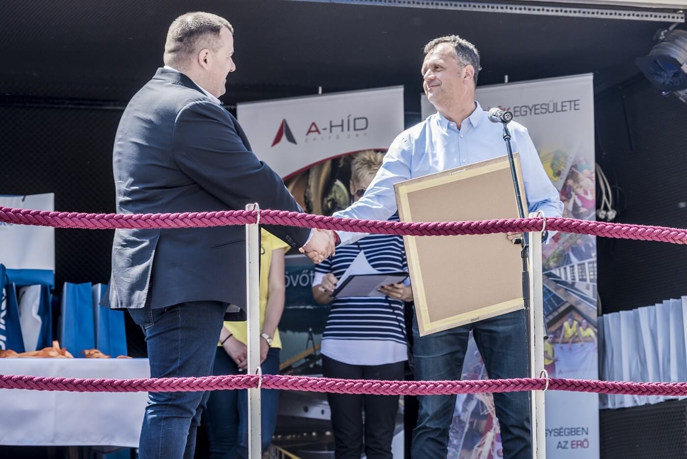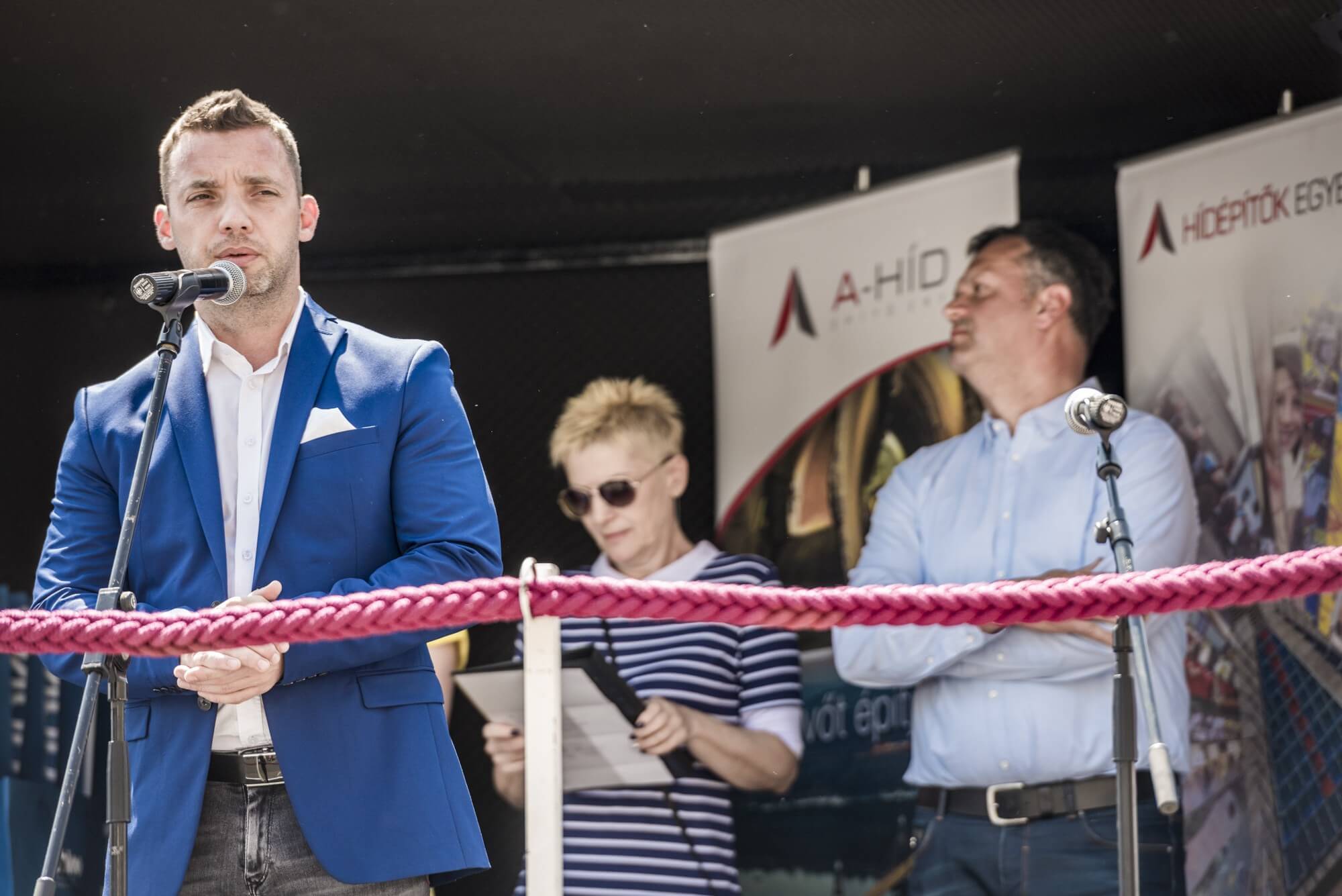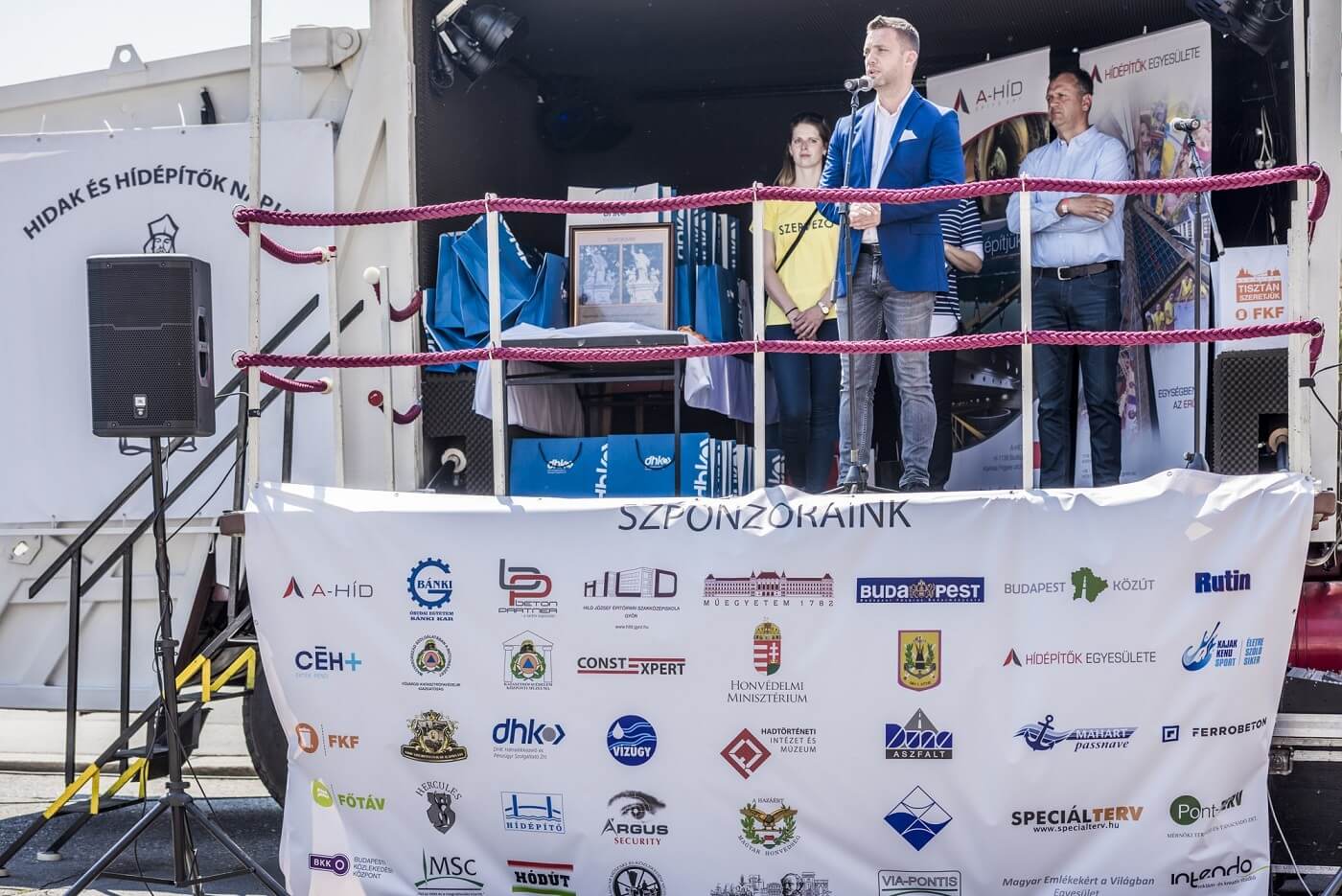 A vizes felvonulás után a Lánchíd szomszédságában, a Magyar Tudományos Akadémia épülete előtt Sal László, az A-Híd Zrt. vezérigazgatója ezúttal a Hídépítők Egyesületének egyik tagjaként köszöntötte a megjelenteket. Elmondta, hogy már 5 éves az egyesület, mely azt a célt tűzte ki feladatául, hogy a hídépítő szakmát népszerűsítse és széles körben megismertesse. „Ünnepelni jó, és ünnepelni kell, mert úgy látjuk, hogy lendületben van a szakma. Közel száz híd épül az autópályákon, hidat épít a szakma a Kőrösön és a Mosoni-Dunán is. Hamarosan épül a Komáromi-Duna híd, valamint a közeljövőben megépül egy Tisza híd is” – foglalta össze Sal László.