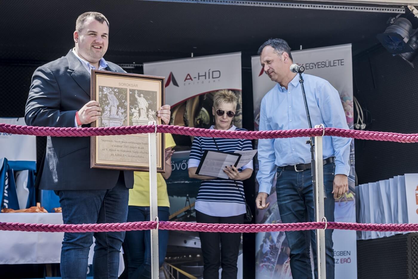 Az ünnepi beszédek után Sal László jelképesen átadta az idén felújíttatott Nepomuki Szent János szobor képét Weinmann Antalnak, Soroksár alpolgármesterének. „Nepomuki Szent János a hidak és hídépítők védőszentje. Ígéretet tettünk, és igyekszünk betartani, ezért minden évben felújítunk egy ilyen szobrot az országban. Idén Soroksárra esett a választás” – mondta Sal László.