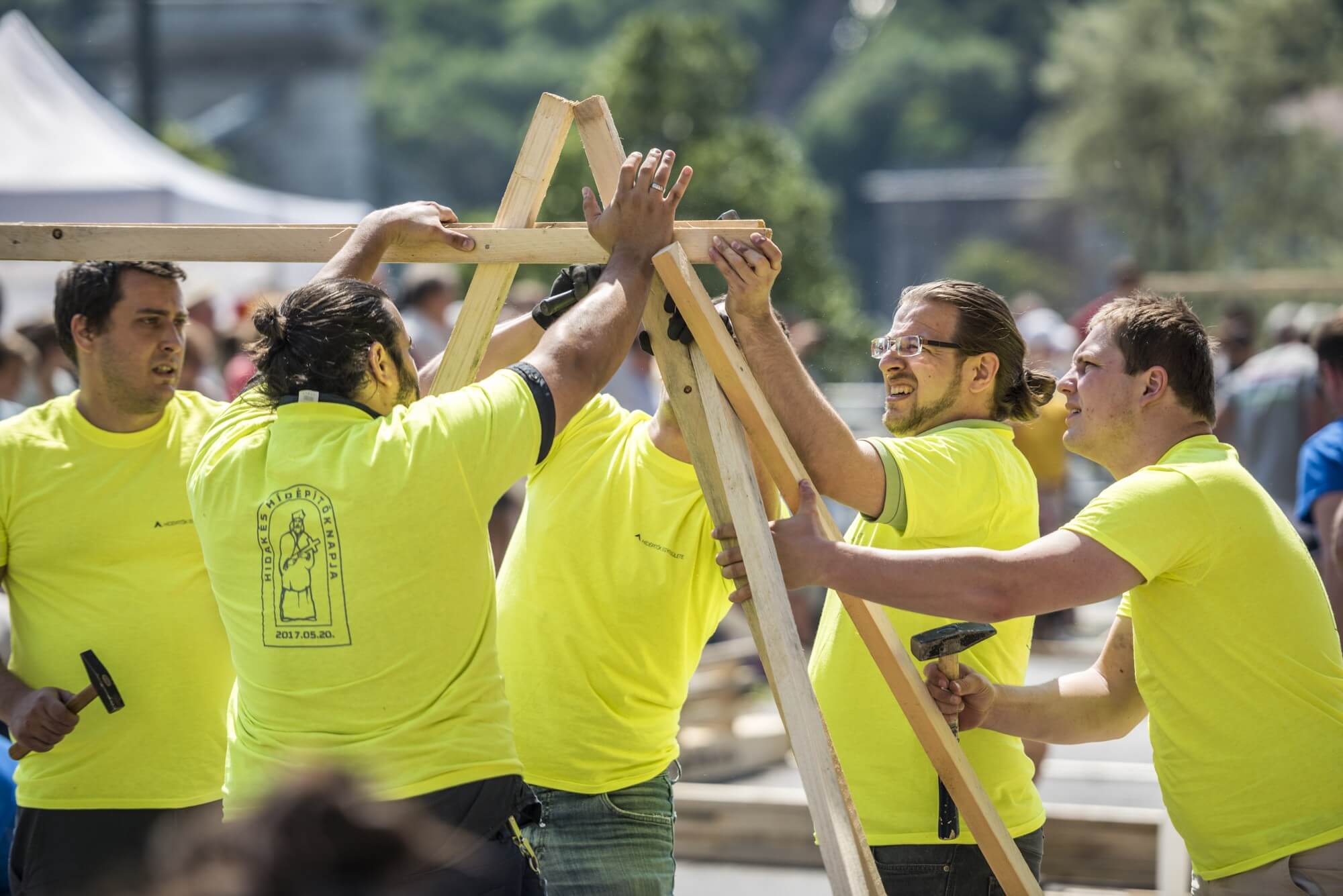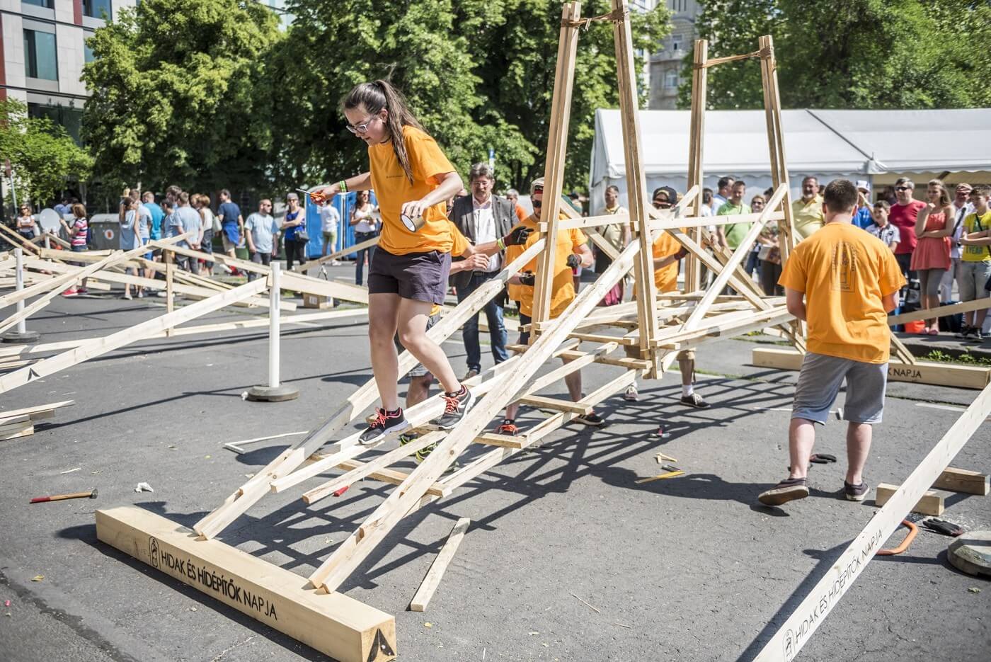 A nap csúcspontja a délután megrendezett Szakmai Hídépítő Verseny volt, ahol az induló 11 csapatnak hat méteres hidakat kellett építenie cseréplécből, valamint kaptak néhány szöget és egy tekercs ragasztószalagot is, de mást nem használhattak építőanyagként. A hidak elkészülte után próbaterhelésnek vetették alá őket, azaz egy-egy embernek – kezében hordóval – át kellett haladnia a hídon, segítség nélkül. A hordó régi történetet szimbolizál, amelyben a hídépítő az ördöggel kötött szövetséget, hogy segítsen az építésben és ne omoljon össze a szerkezet. A segítségért cserébe az elsőként átkelő lelkét az ördög kapta meg, így a leleményes hídépítők először mindig egy hordót küldtek át a hídon.