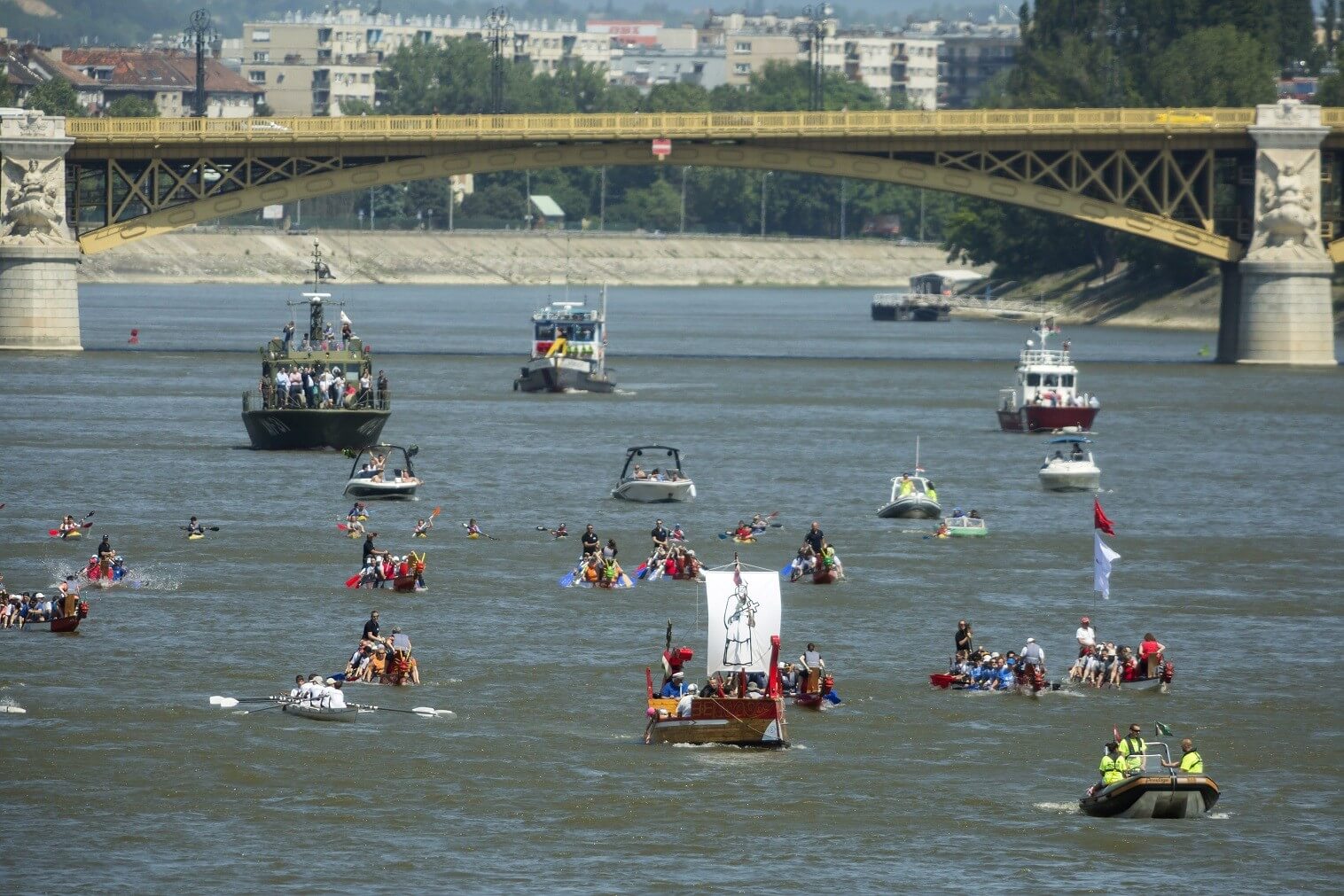 A május 20-án tartott V. Hidak és Hídépítők Napja evezősök, sárkányhajósok, kajak-kenusok és egyéb motoros hajók (hadihajó, tűzoltó hajó, kitűző hajó) dunai felvonulásával kezdődött. A járművek az Újpesti-öbölből indultak és a Kopaszi-gátnál kötöttek ki. Itt az érdeklődők a járművek közül néhánynak a fedélzetére is ellátogathattak.