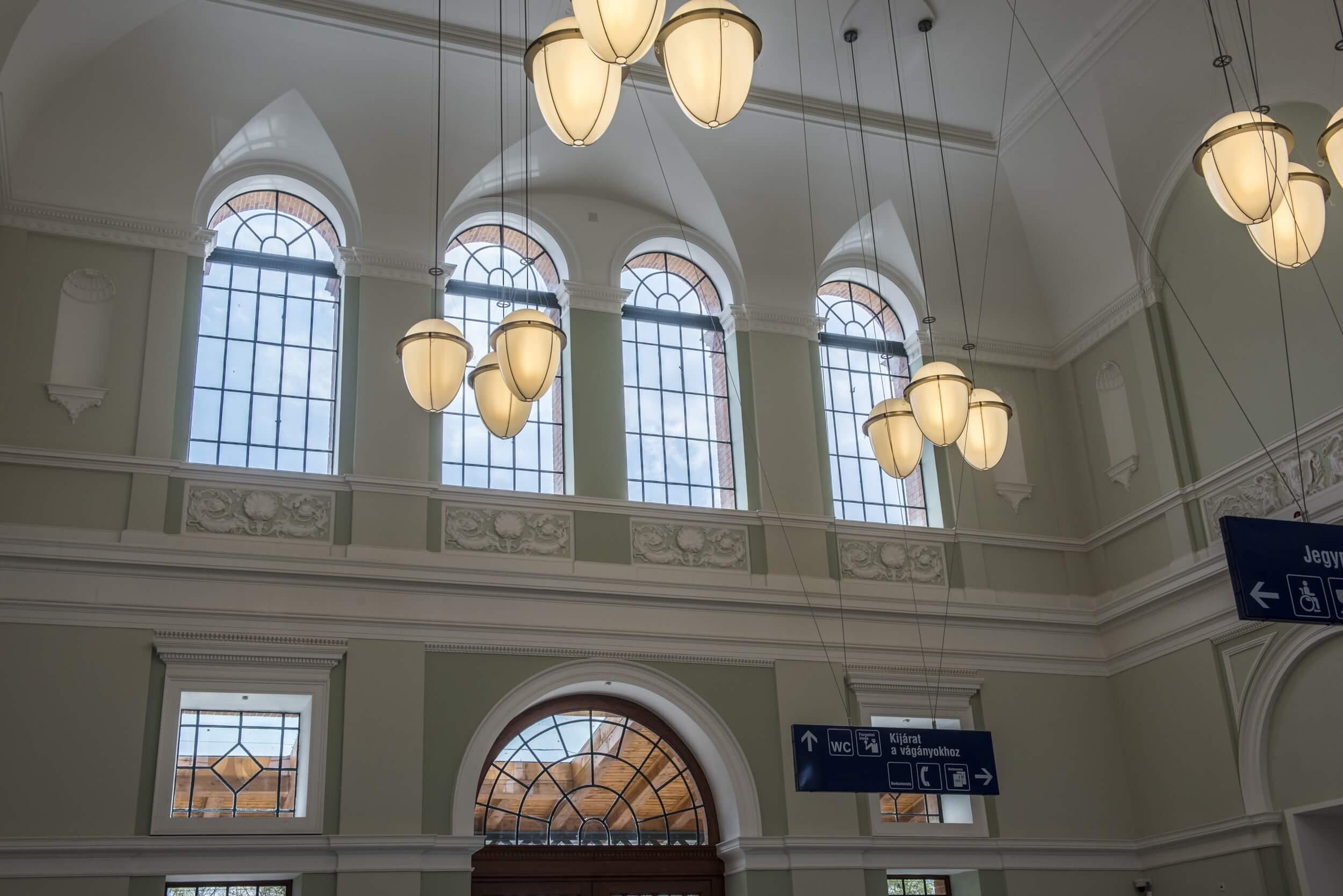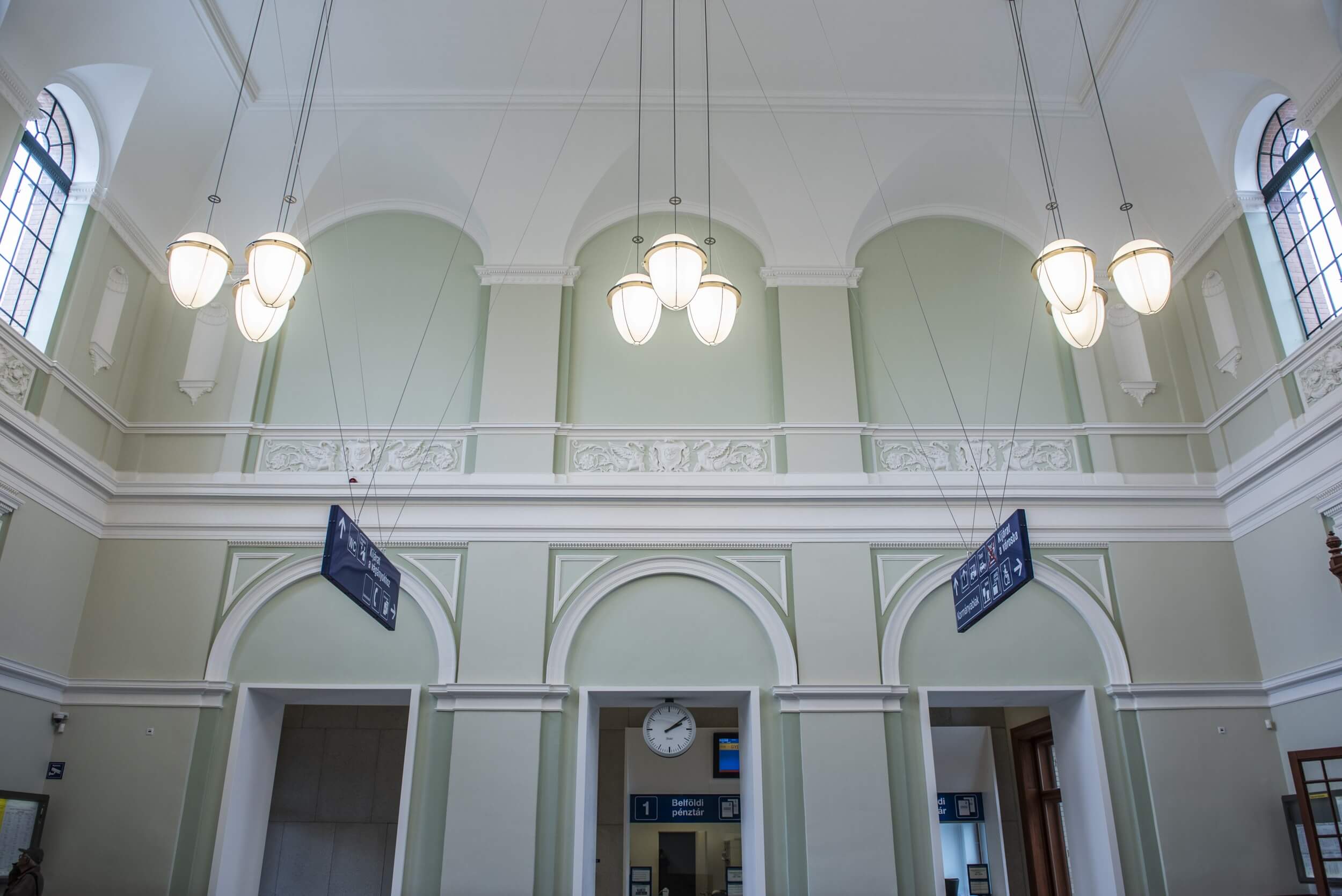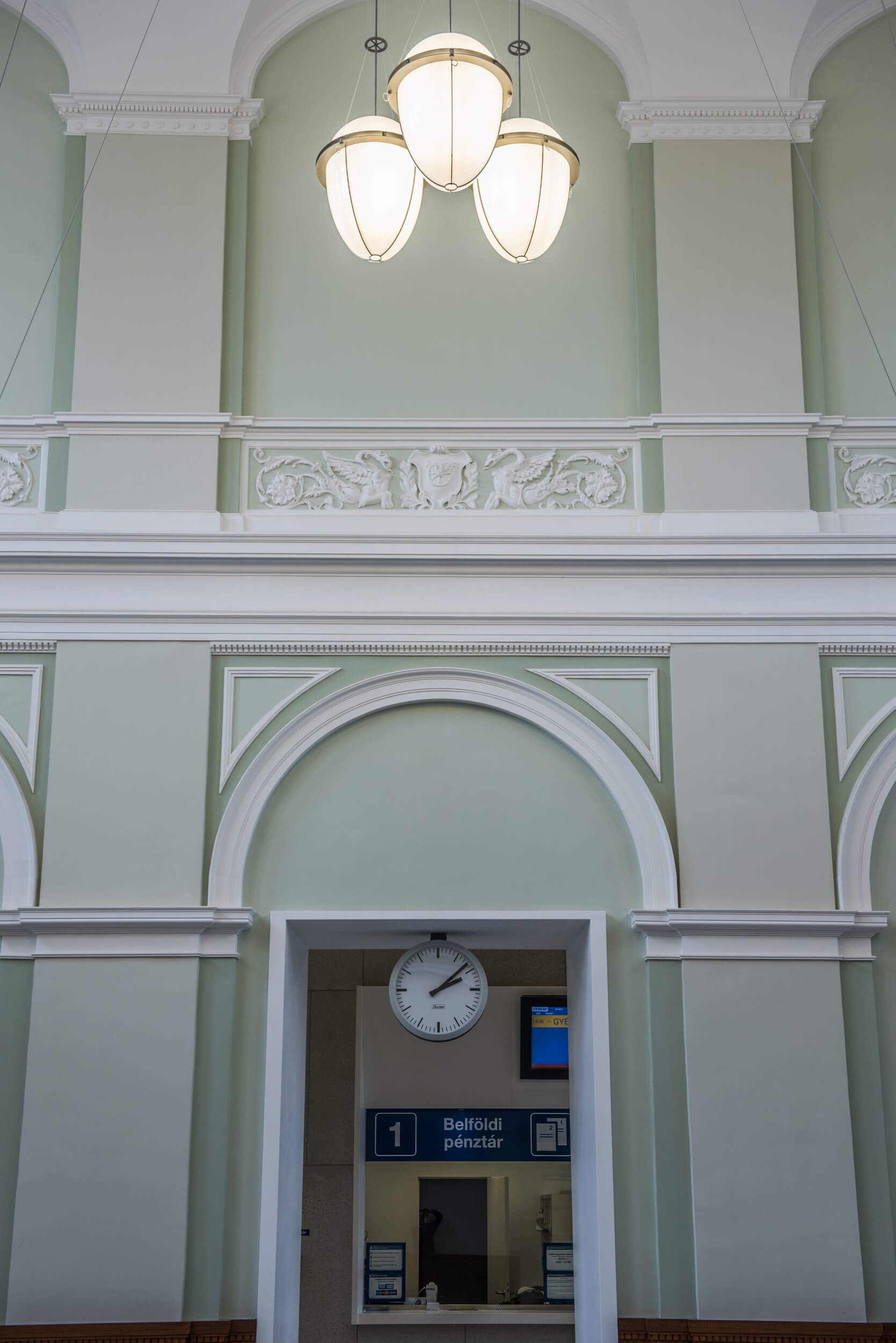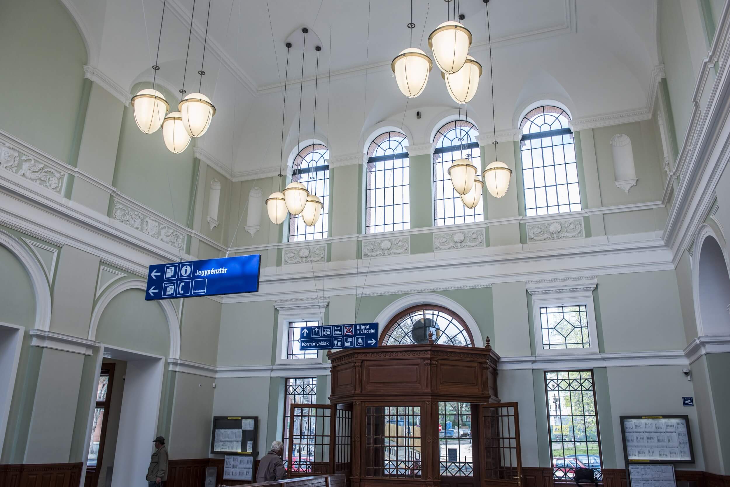 A 3000 négyzetméteres állomást a MÁV egykori főépítésze, Pfaff Ferenc tervezte, ám az épület díszei a 20. században teljesen elvesztek, többek közt az összes stukkót leverték, és lecsupaszították a belső tereket. A 2015 márciusában indult felújítás az eredeti állapot helyreállítását célozta meg, a legendás főépítész tervei azonban csak hiányosan álltak rendelkezésre. „Rengeteg egyeztetés kellett folytatni, a tervezőkkel napi szinten kapcsolatban álltunk” – mondja Diós András. „Minden nap új és új információk derültek ki az épületről, amit megosztottunk a tervezőkkel. Ők átdolgozták a terveket, és csak ezután tudtam munkába adni.”