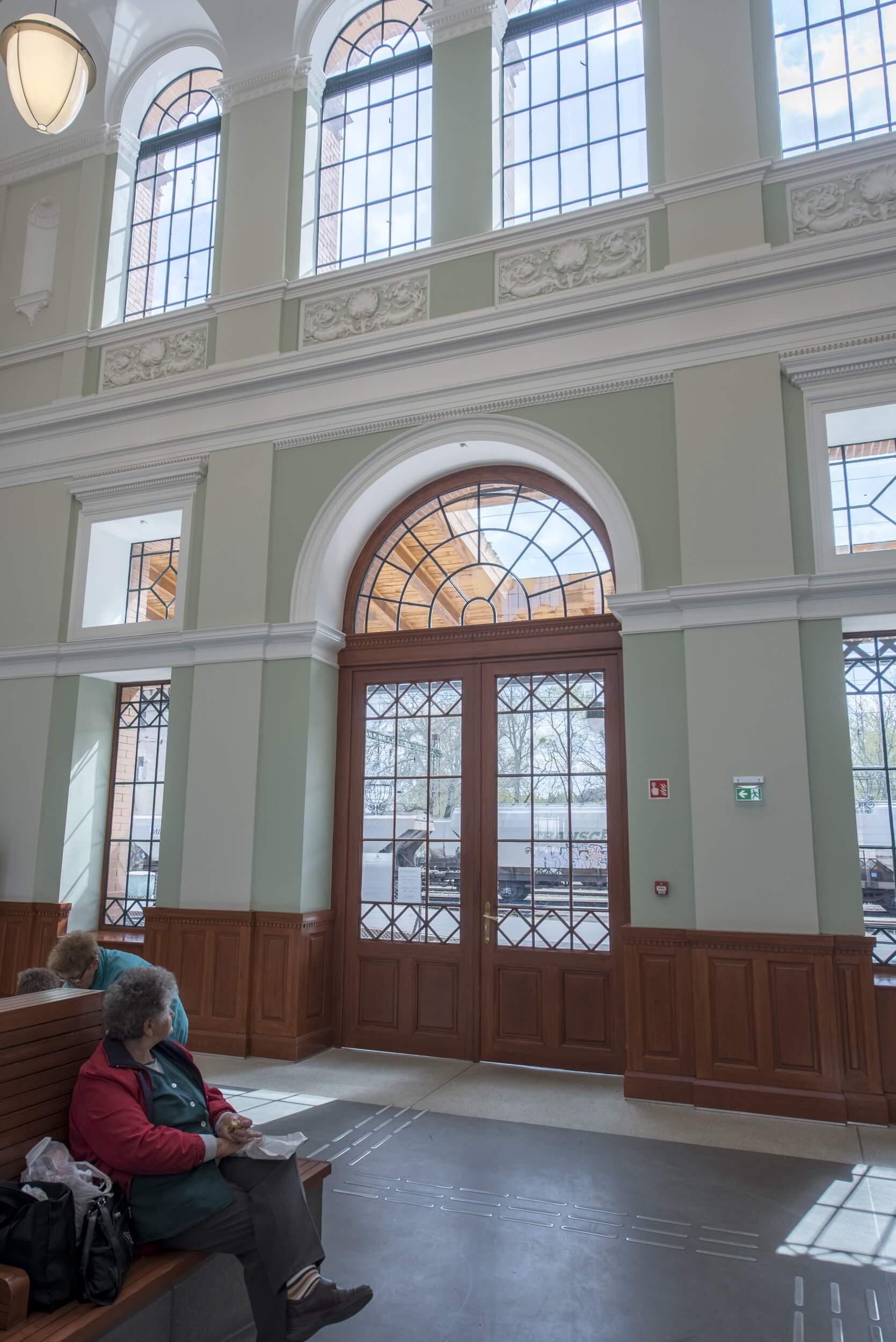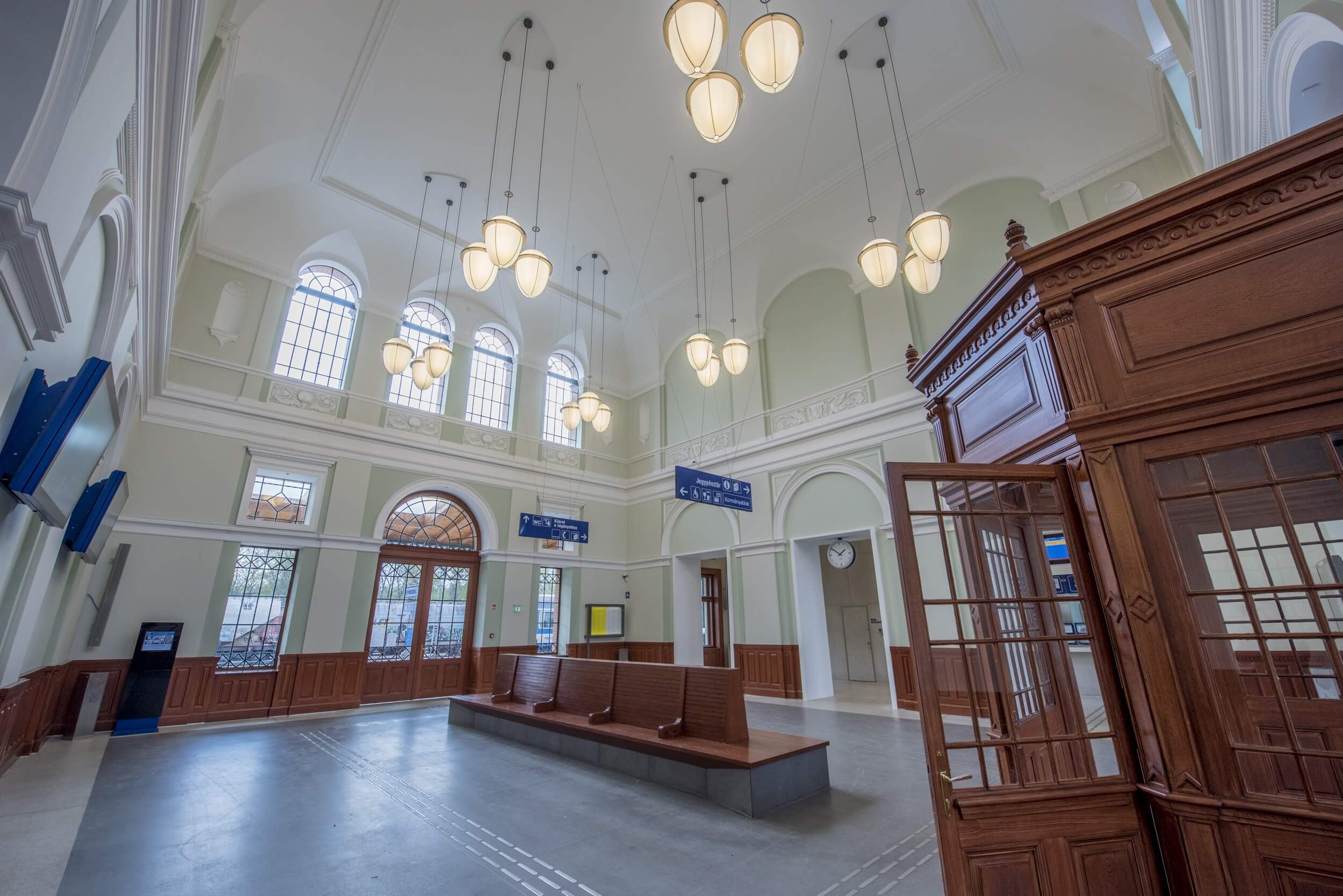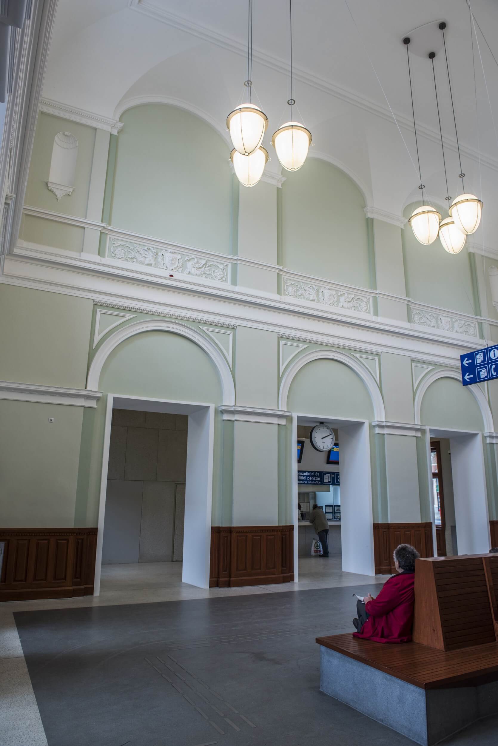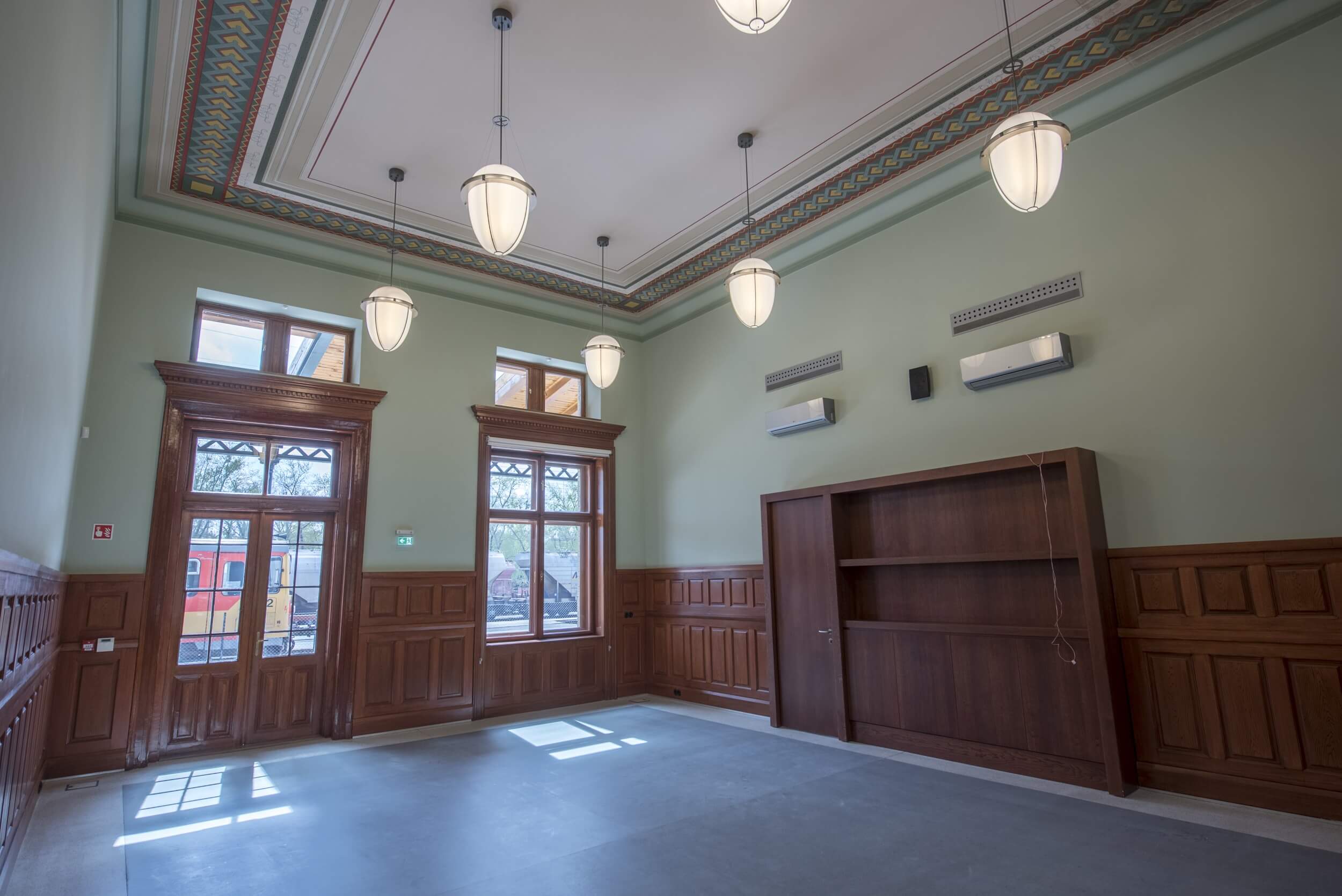 A 3000 négyzetméteres állomást a MÁV egykori főépítésze, Pfaff Ferenc tervezte, ám az épület díszei a 20. században teljesen elvesztek, többek közt az összes stukkót leverték, és lecsupaszították a belső tereket. A 2015 márciusában indult felújítás az eredeti állapot helyreállítását célozta meg, a legendás főépítész tervei azonban csak hiányosan álltak rendelkezésre. „Rengeteg egyeztetés kellett folytatni, a tervezőkkel napi szinten kapcsolatban álltunk” – mondja Diós András. „Minden nap új és új információk derültek ki az épületről, amit megosztottunk a tervezőkkel. Ők átdolgozták a terveket, és csak ezután tudtam munkába adni.”
