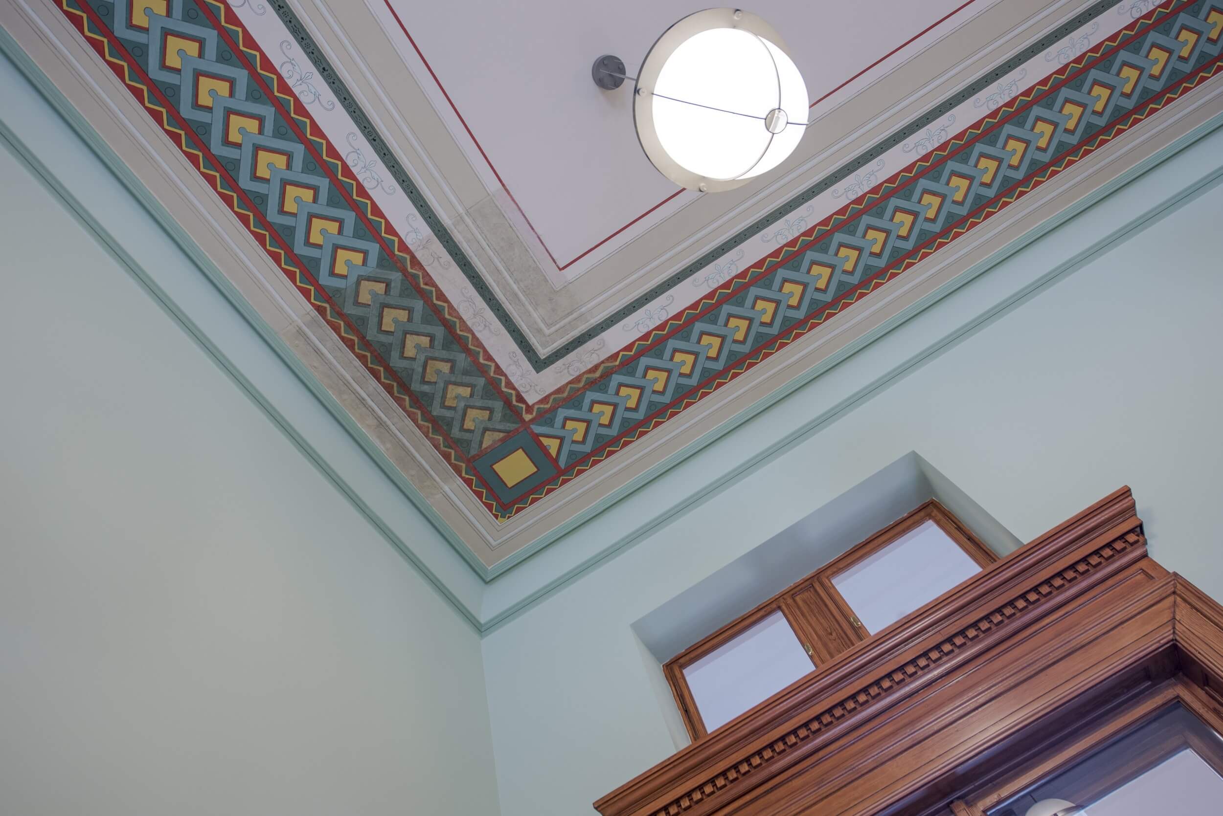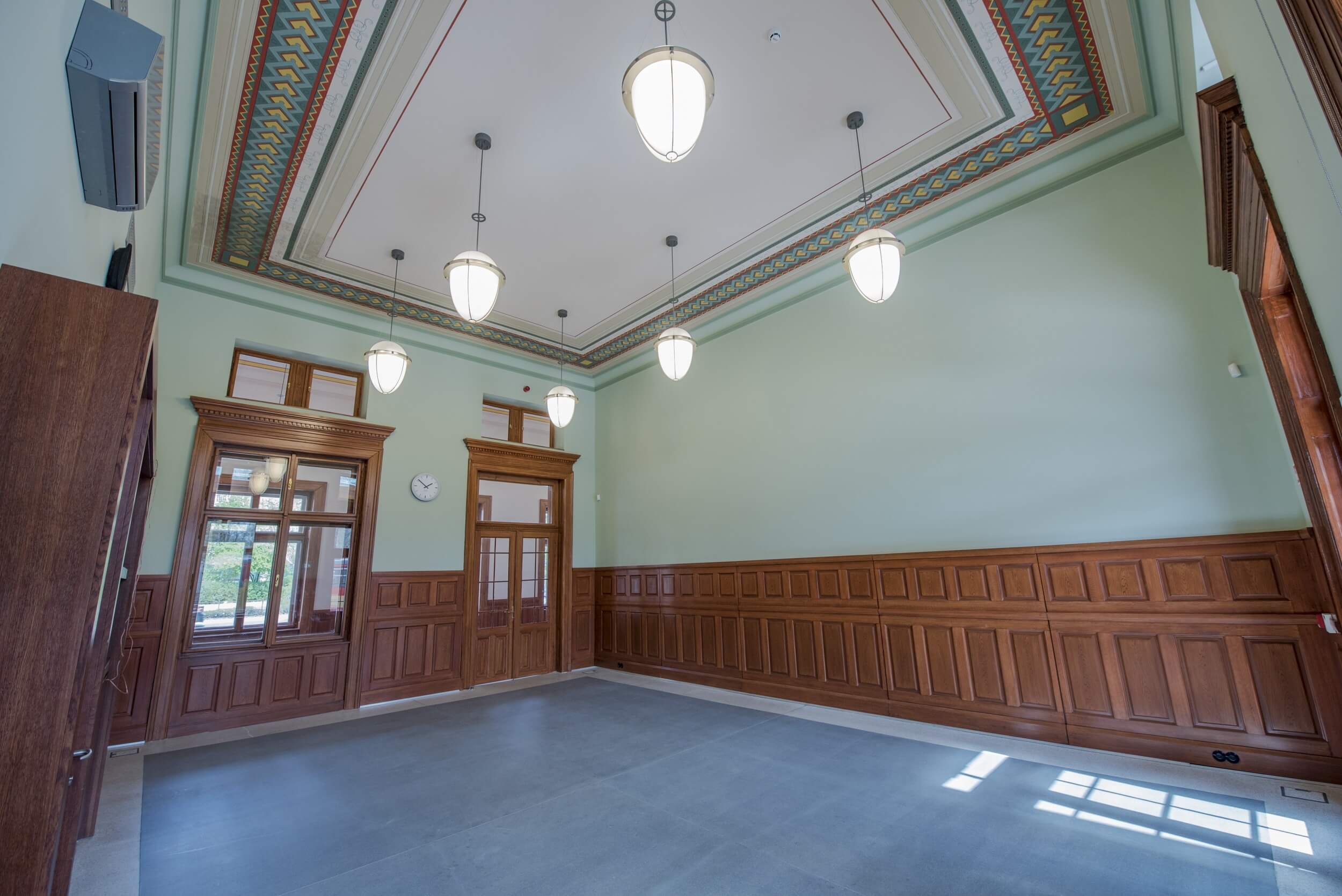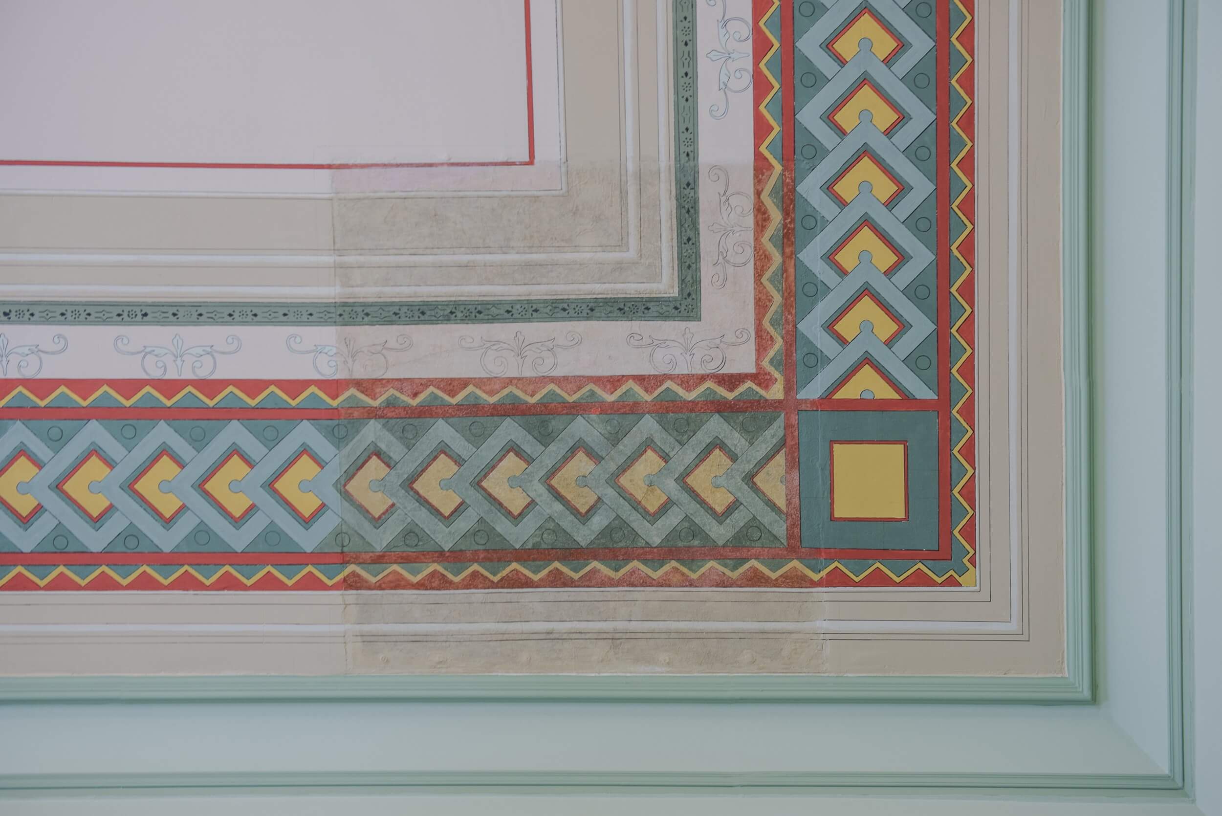 A szakrestaurátorok a régi első osztályú váróterem mennyezetén is találtak megmenthető díszítőfestés darabokat, mennyezetdíszeket. Ebből a fafödéméből egy négyzetmétert leválasztottak, és ezt a födém festőrestaurálása után visszahelyezték tanúfoltként az új födémre.