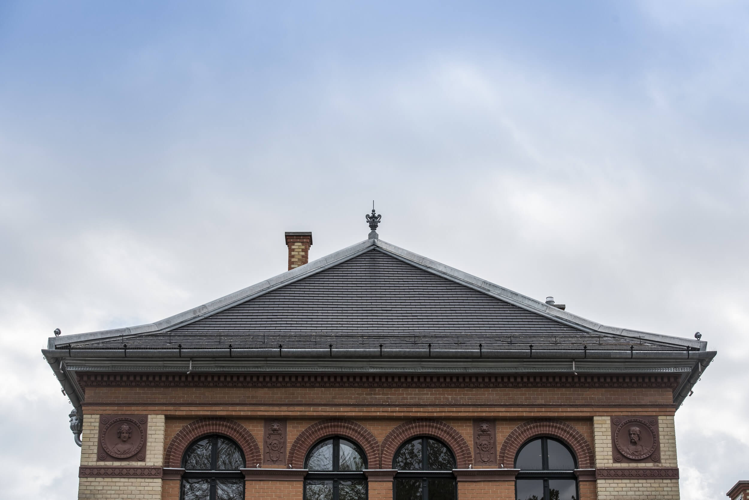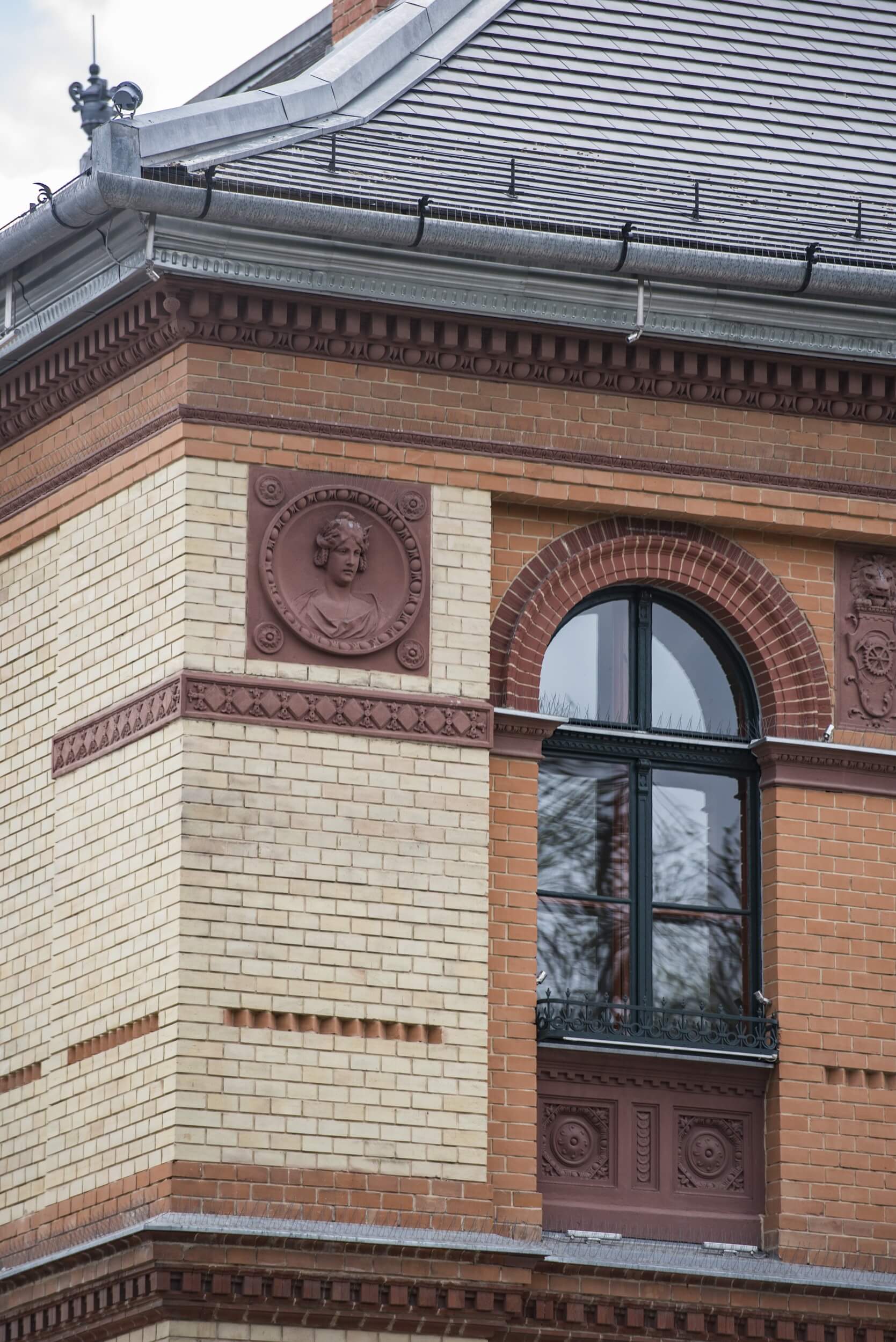 A főfalak a külső téglaburkolattal és a külső stukkókkal együtt megmaradtak, a mállottakat viszont lecserélték: „Nyolcezer darab új téglát építettünk be egyenként. A külső díszbádogos munkához is fényképek kellettek, ezek alapján készült el a terv, majd pedig egyedi megoldásokkal a kivitelezés.”