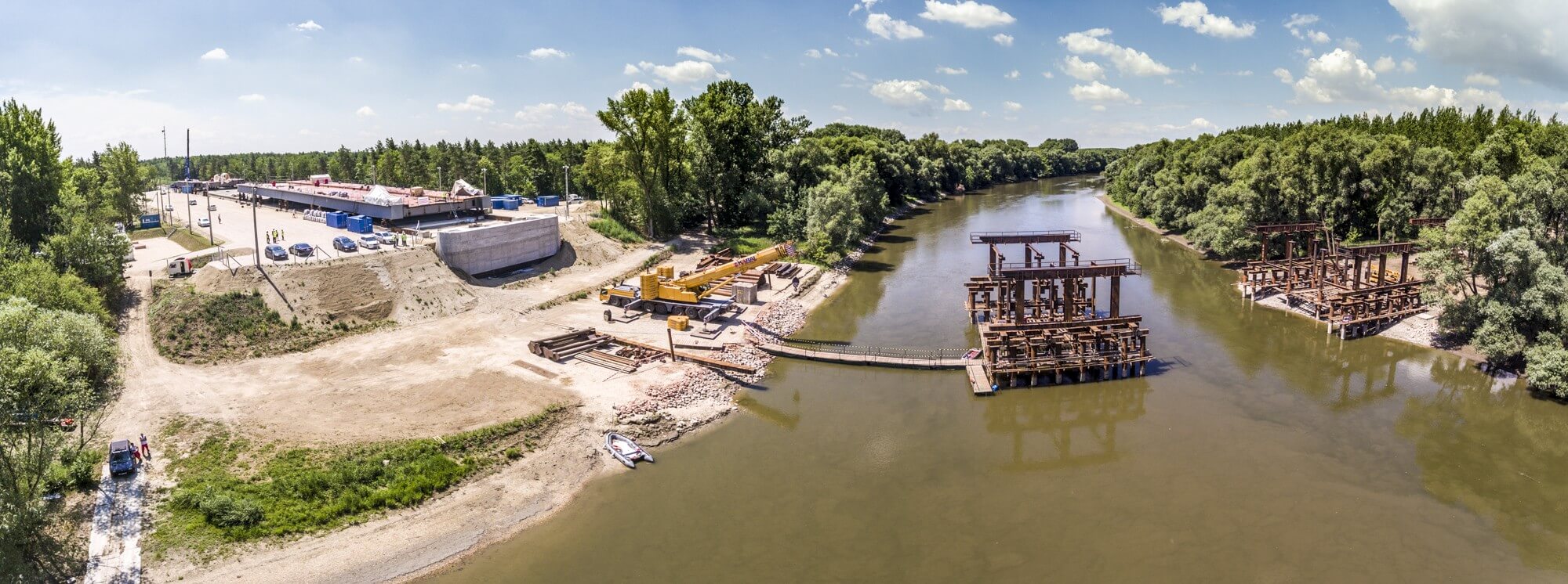 A hidat nagy szilárdságú acélkábelekkel erősítik meg, melyek ferdén, egymást keresztezve haladnak majd. Mindez légiesebb, karcsúbb kialakítást eredményez, mintha függőleges kábeleket használnának. A projekt legizgalmasabb része, hogy a mederhíd acélszerkezetét a parton kialakított szerelőtéren készítik el, majd ősszel a pillérek és jármok felett kiépített betolópályákon, csúszkákkal tolják a helyére néhány hét alatt.