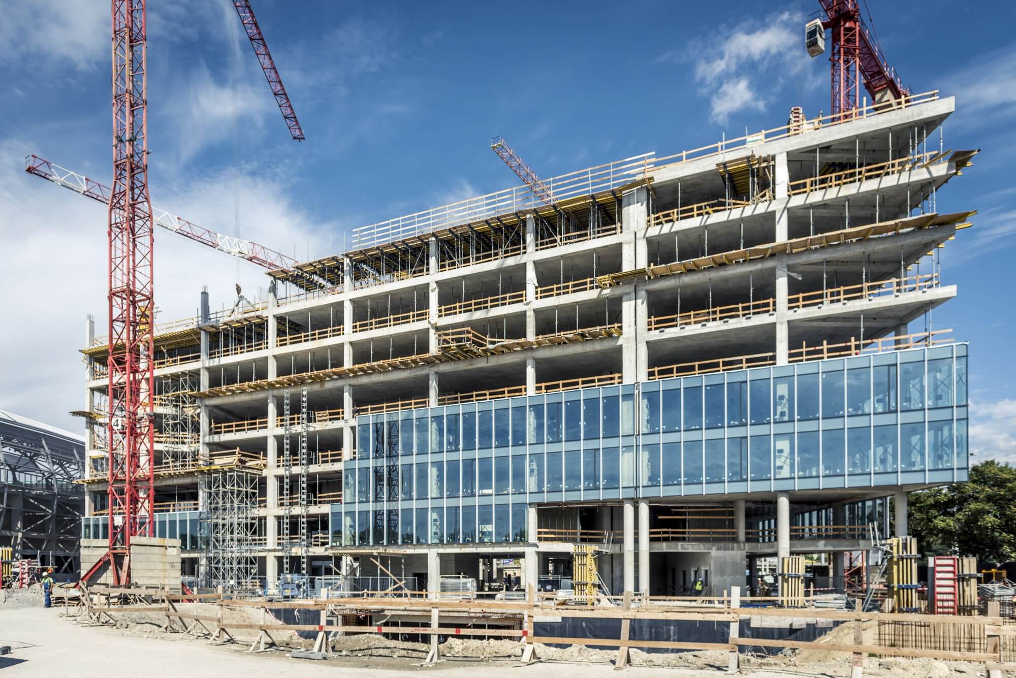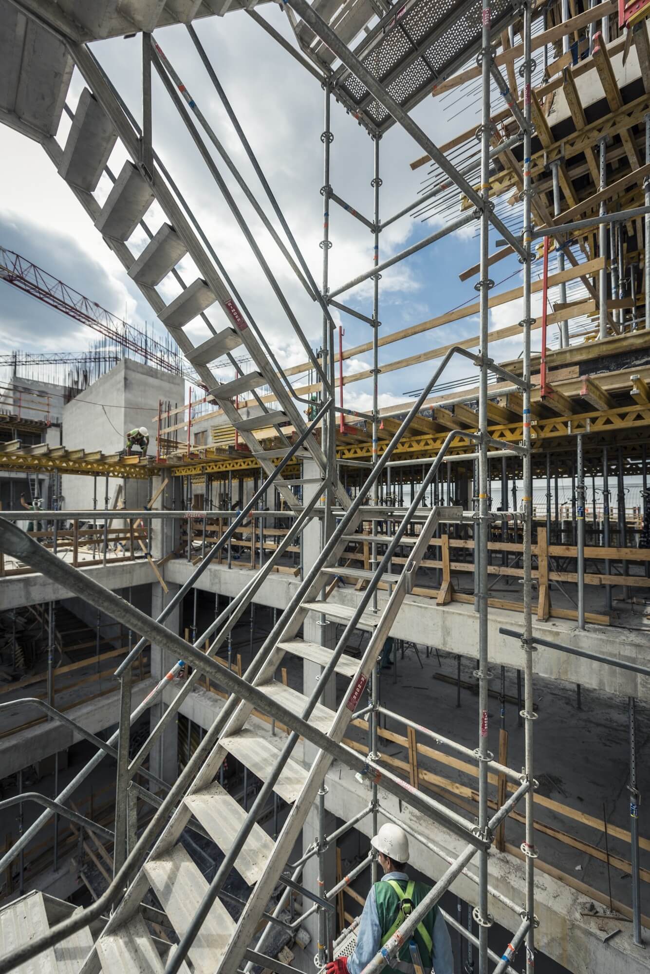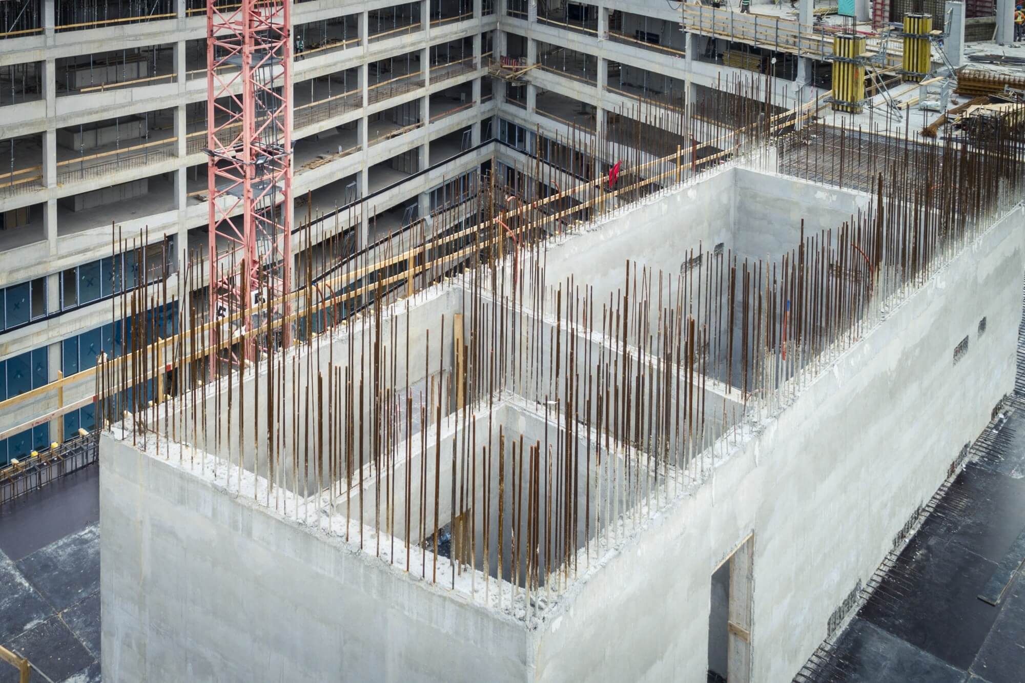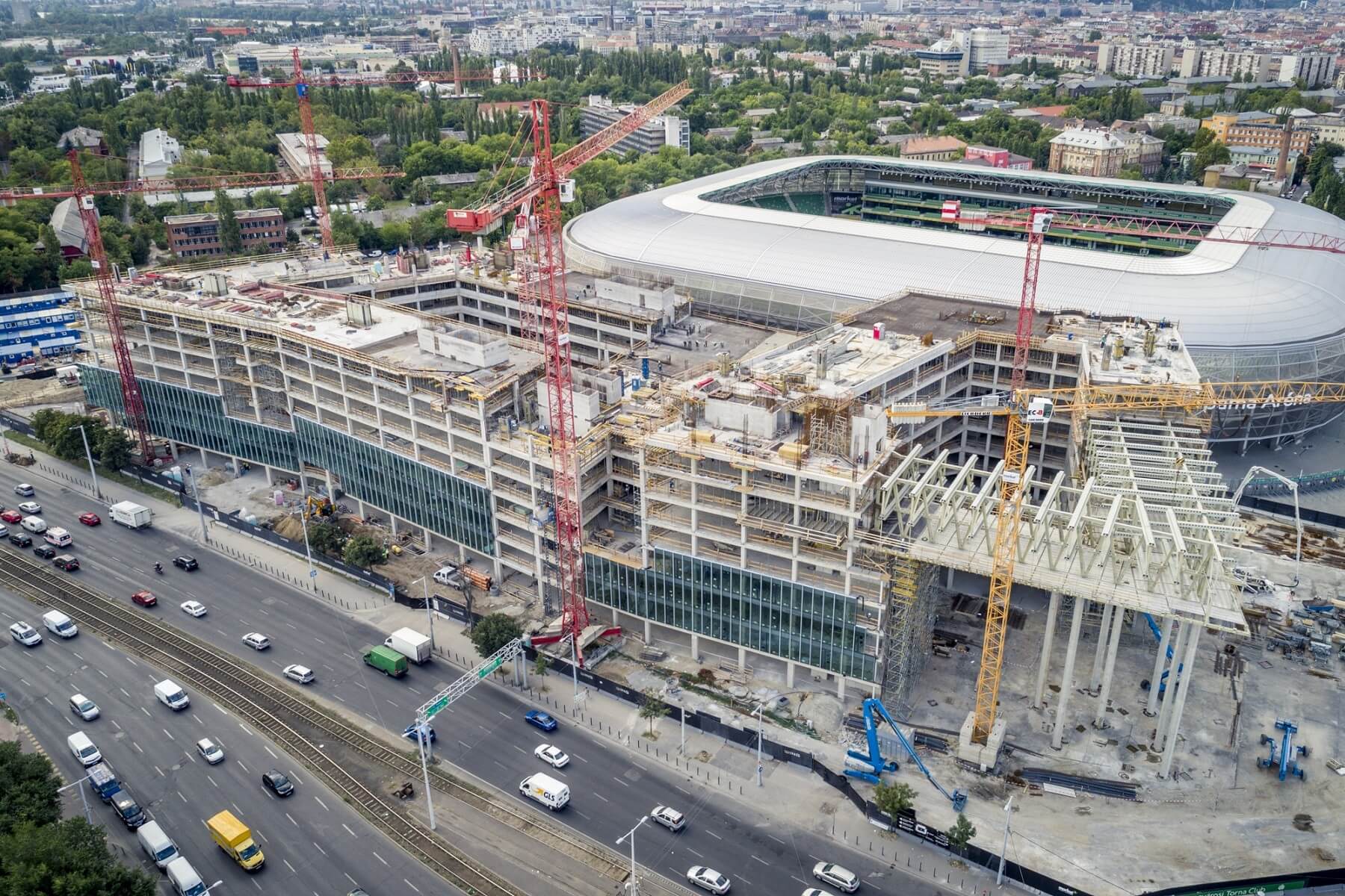 Ami a felszerkezetet illeti, részben már elkészült a zárófödém a nyolc- és a hétemeletes épületrésznél is, ugyanakkor az épület középső traktusában még a hatodik emelet tájékán tartanak. A szerkezetkész állapot október végére várható. Nagy előrelépésnek számított, hogy az épület sarkánál található, hét pilléren nyugvó, hatodik emelettől induló épületrész acélszerkezete készen van, itt már a vasbeton födémek behelyezése zajlik.
