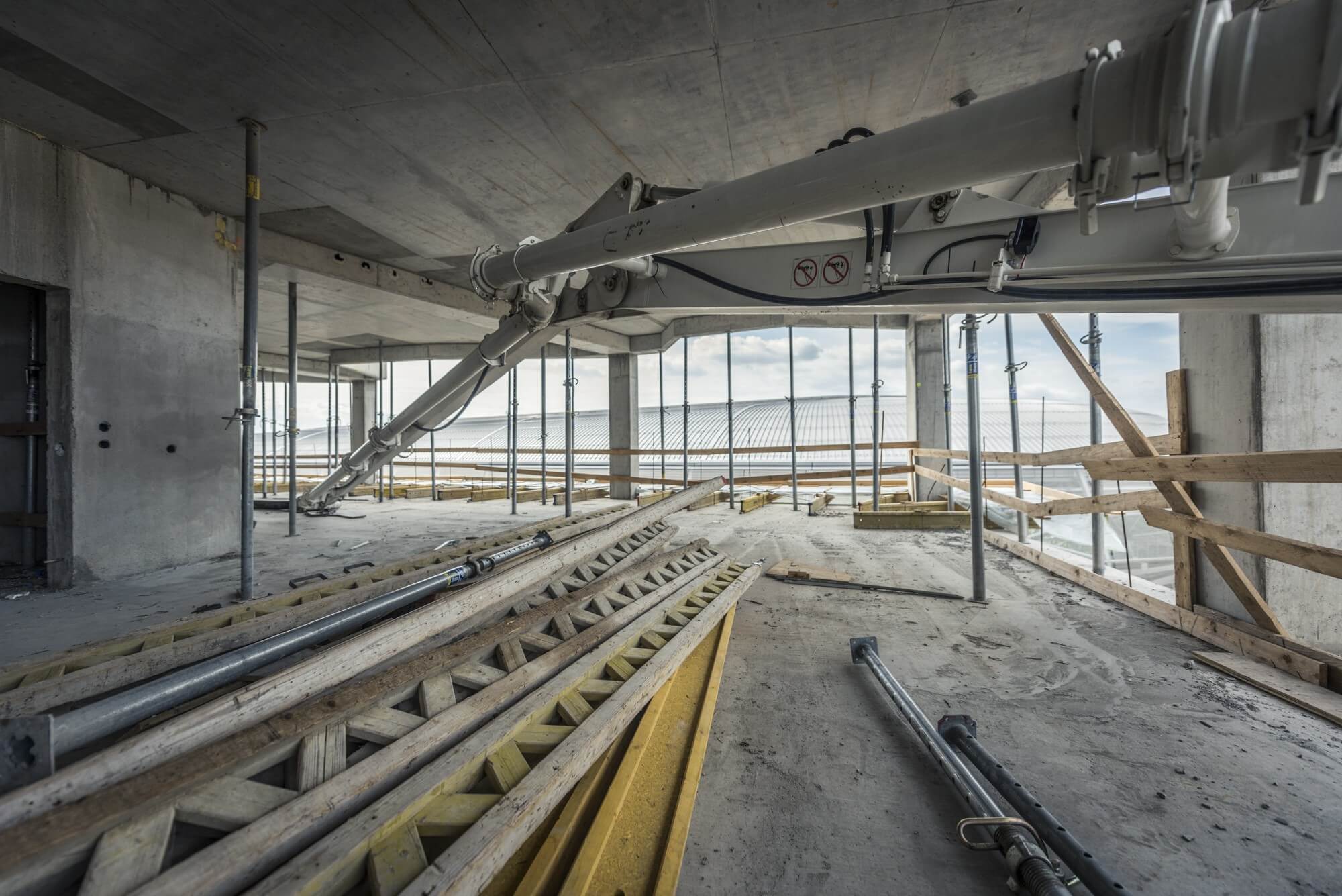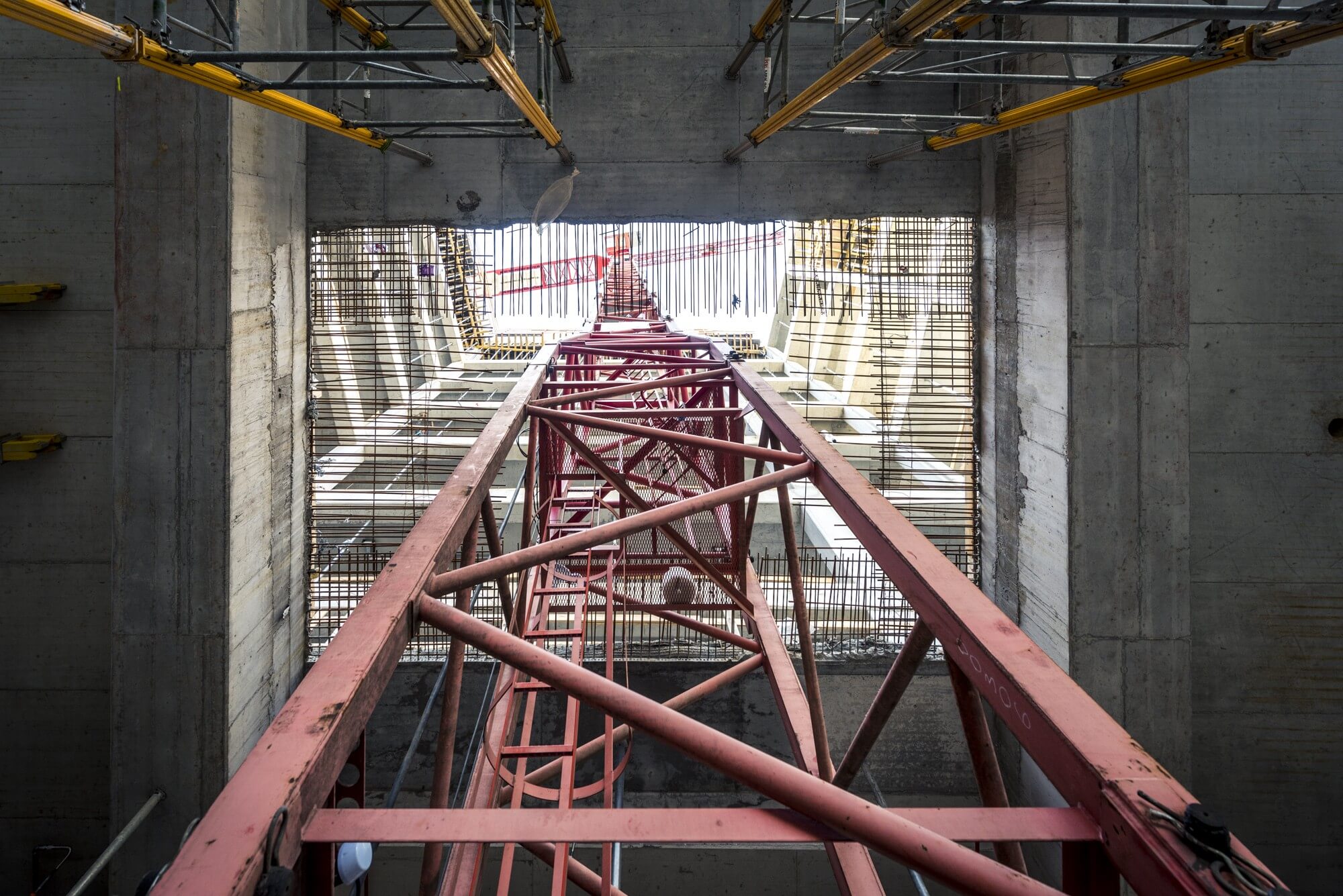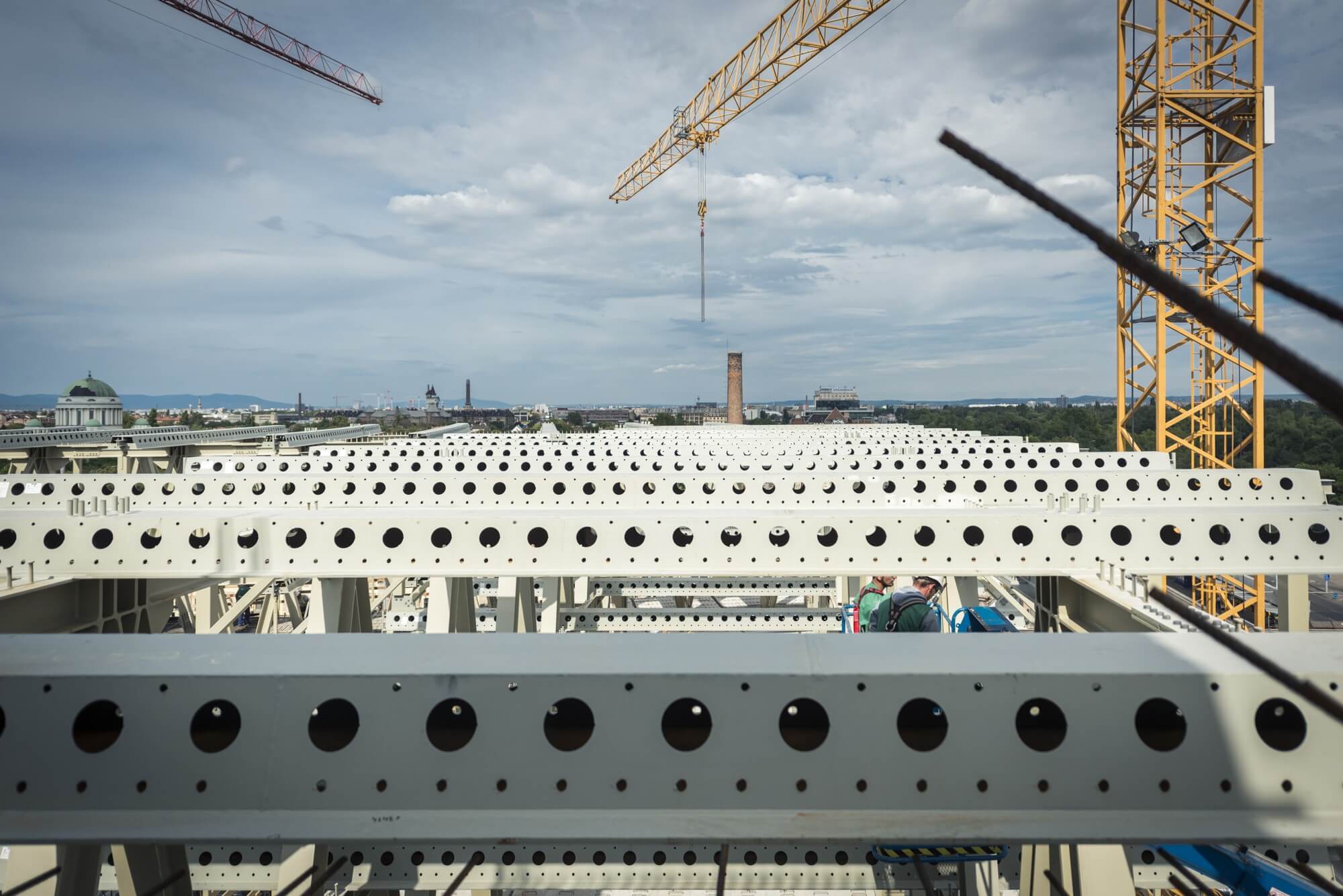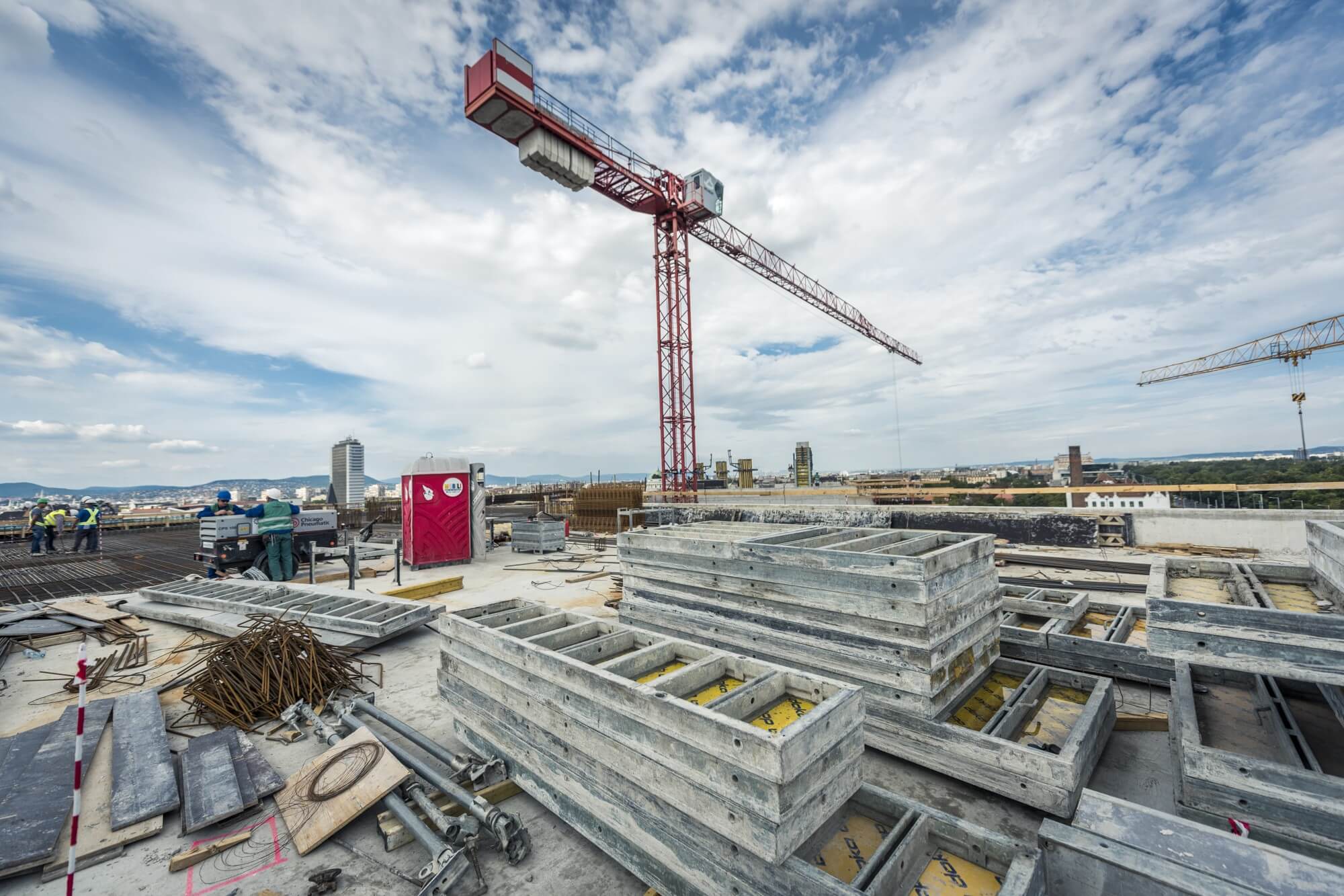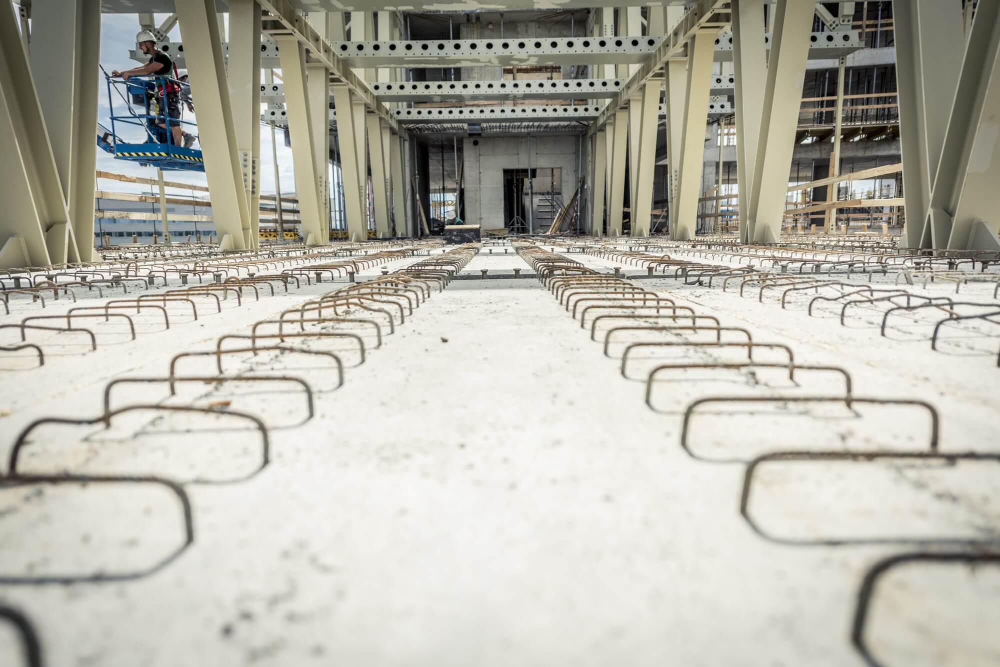Ami a felszerkezetet illeti, részben már elkészült a zárófödém a nyolc- és a hétemeletes épületrésznél is, ugyanakkor az épület középső traktusában még a hatodik emelet tájékán tartanak. A szerkezetkész állapot október végére várható. Nagy előrelépésnek számított, hogy az épület sarkánál található, hét pilléren nyugvó, hatodik emelettől induló épületrész acélszerkezete készen van, itt már a vasbeton födémek behelyezése zajlik.
