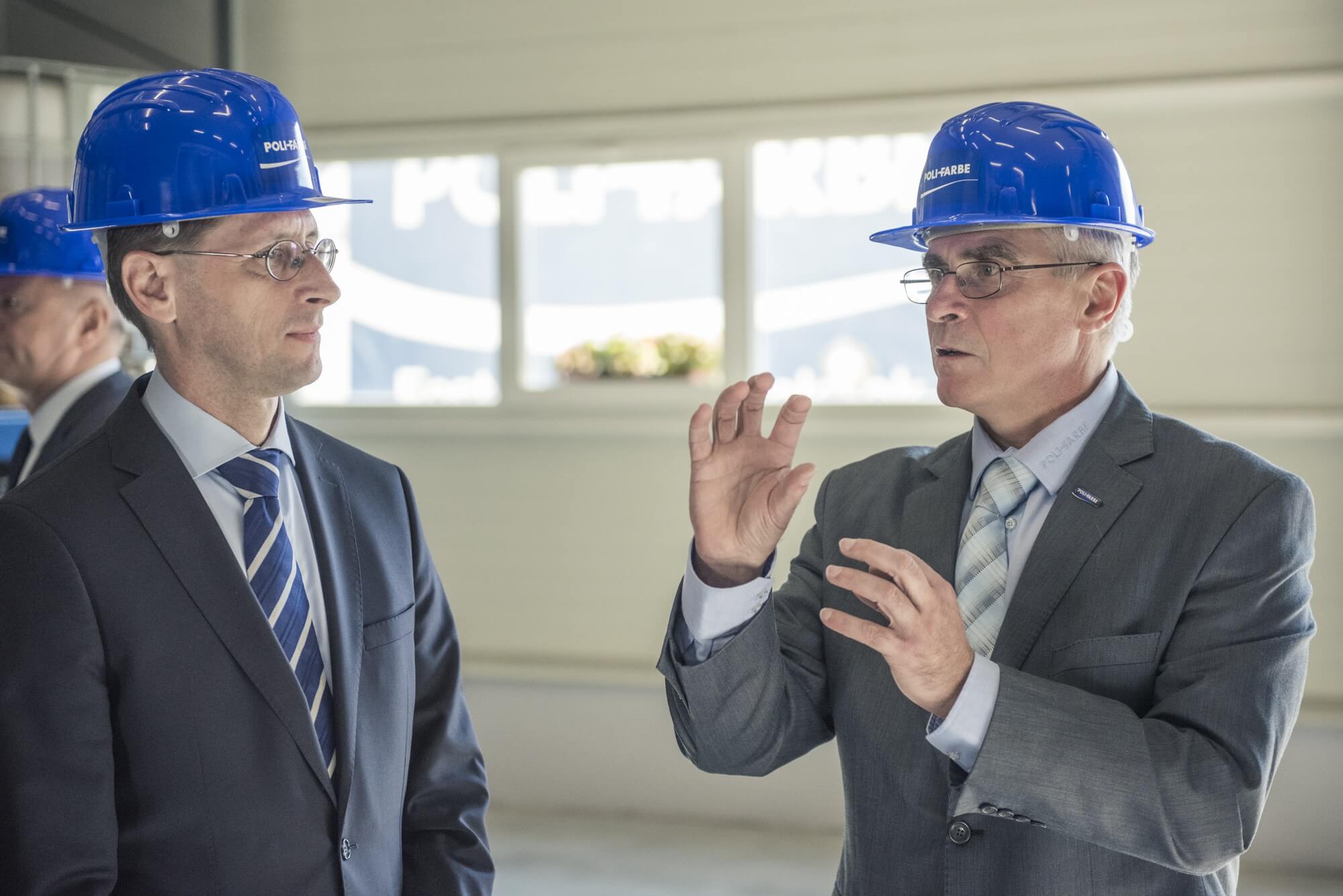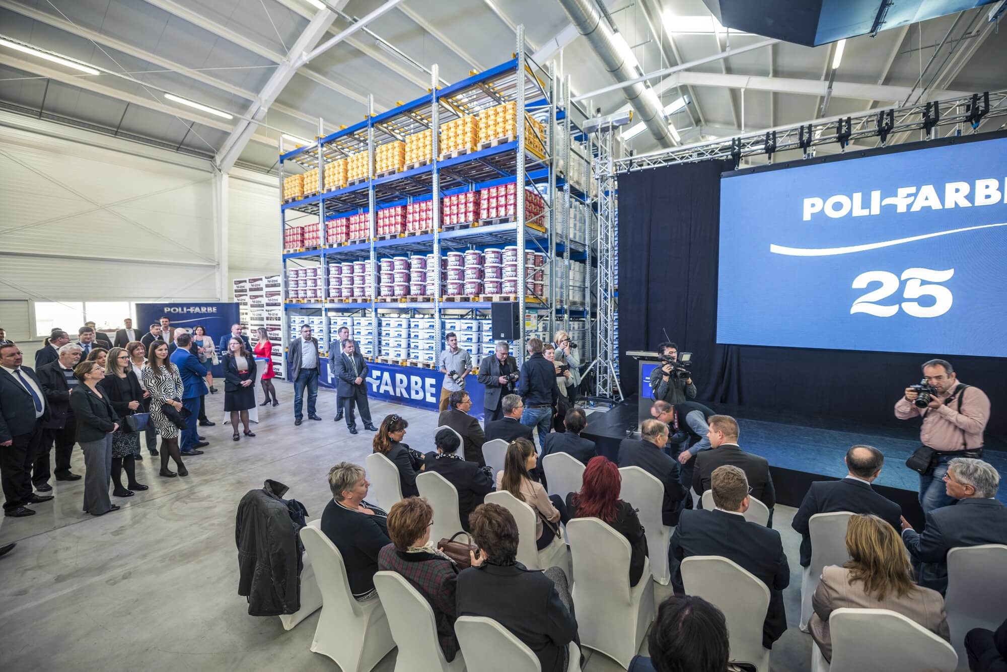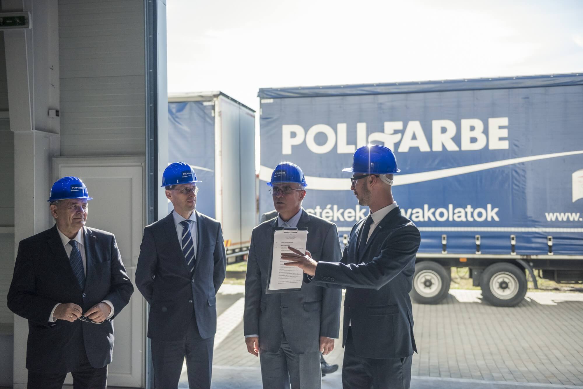 A szerdai átadón részt vevő Varga Mihály, nemzetgazdasági miniszter azt hangsúlyozta, a magyar cég a fejlesztéssel robottechnológiát és teljesen automatizált gyártást valósított meg, amellyel jelentősen növeli versenyképességét. Ráadásul a robotizációval nem jár létszámcsökkenés, mivel a munkavállalóikra továbbra is szükség van az előreláthatóan növekvő mértékű feladatok ellátásához. "A magyar gazdaságnak olyan példákra van szüksége, amelyek megmutatják: kitartó munkával, hozzáértéssel és elkötelezettséggel egy hazai vállalkozás is képes arra, hogy szinte a semmiből indulva érje el a sikert" - fogalmazott a tárcavezető. Varga Mihály arra utalt, hogy a Poli-Farbe kisvállalkozásként indult 1989-ben, kevesebb, mint 20 tonnás éves termeléssel.