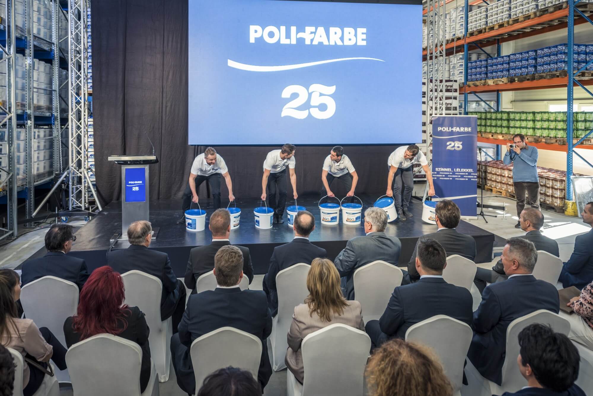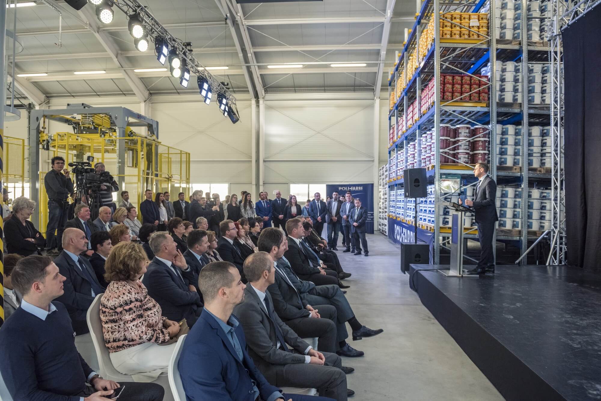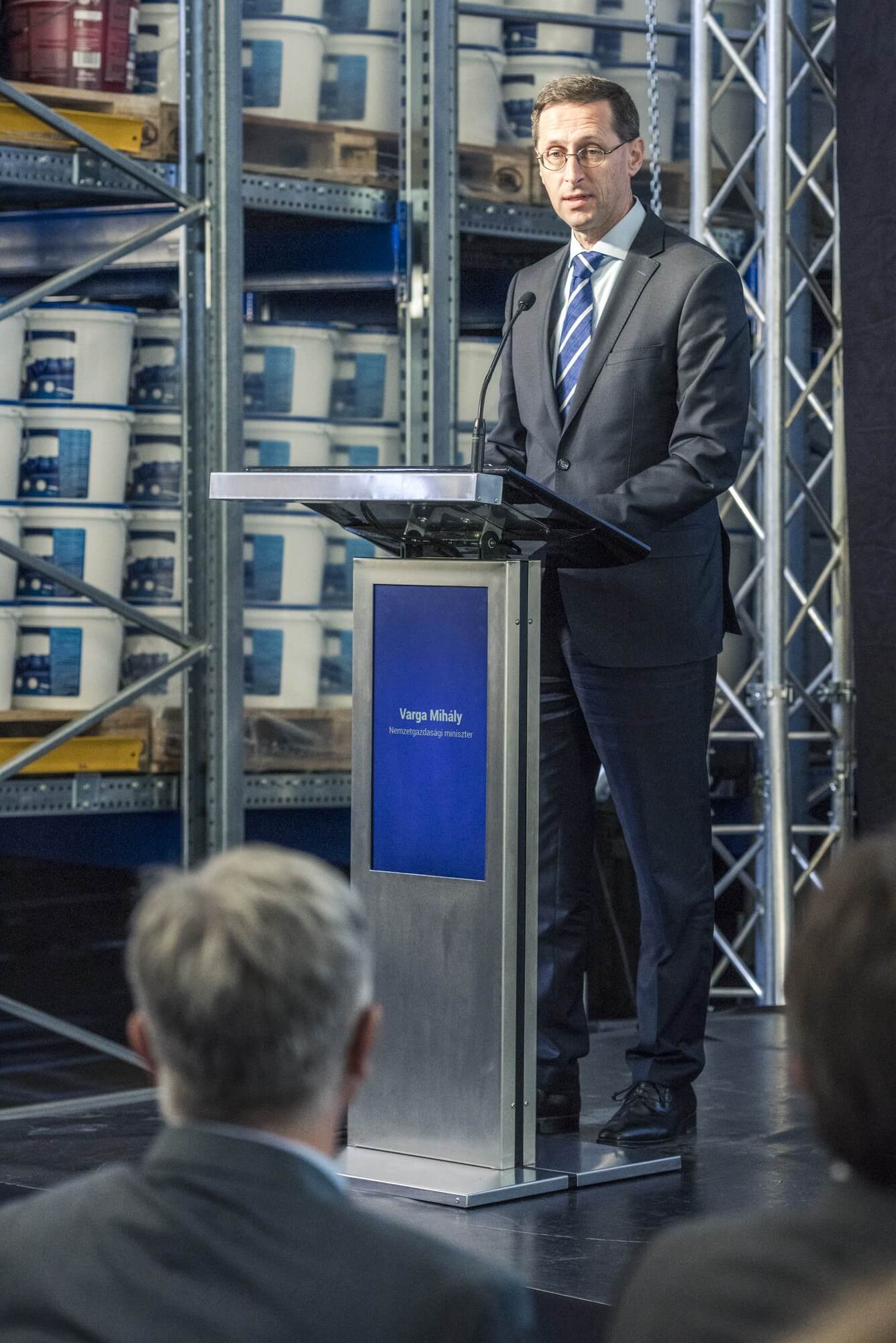 A szerdai átadón részt vevő Varga Mihály, nemzetgazdasági miniszter azt hangsúlyozta, a magyar cég a fejlesztéssel robottechnológiát és teljesen automatizált gyártást valósított meg, amellyel jelentősen növeli versenyképességét. Ráadásul a robotizációval nem jár létszámcsökkenés, mivel a munkavállalóikra továbbra is szükség van az előreláthatóan növekvő mértékű feladatok ellátásához. "A magyar gazdaságnak olyan példákra van szüksége, amelyek megmutatják: kitartó munkával, hozzáértéssel és elkötelezettséggel egy hazai vállalkozás is képes arra, hogy szinte a semmiből indulva érje el a sikert" - fogalmazott a tárcavezető. Varga Mihály arra utalt, hogy a Poli-Farbe kisvállalkozásként indult 1989-ben, kevesebb, mint 20 tonnás éves termeléssel.