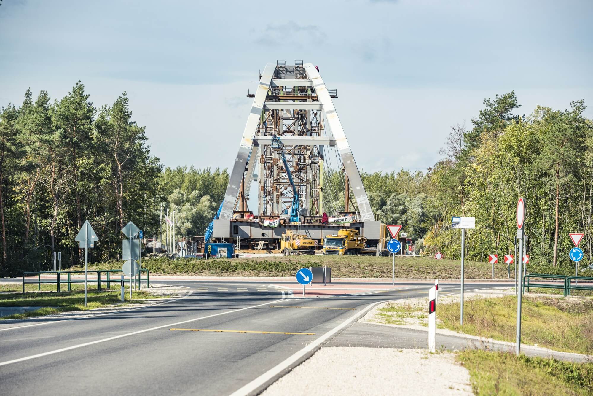 Október közepén a kivitelező Hódút-Strabag konzorcium elkezdte az acélszerkezet helyére tolását.