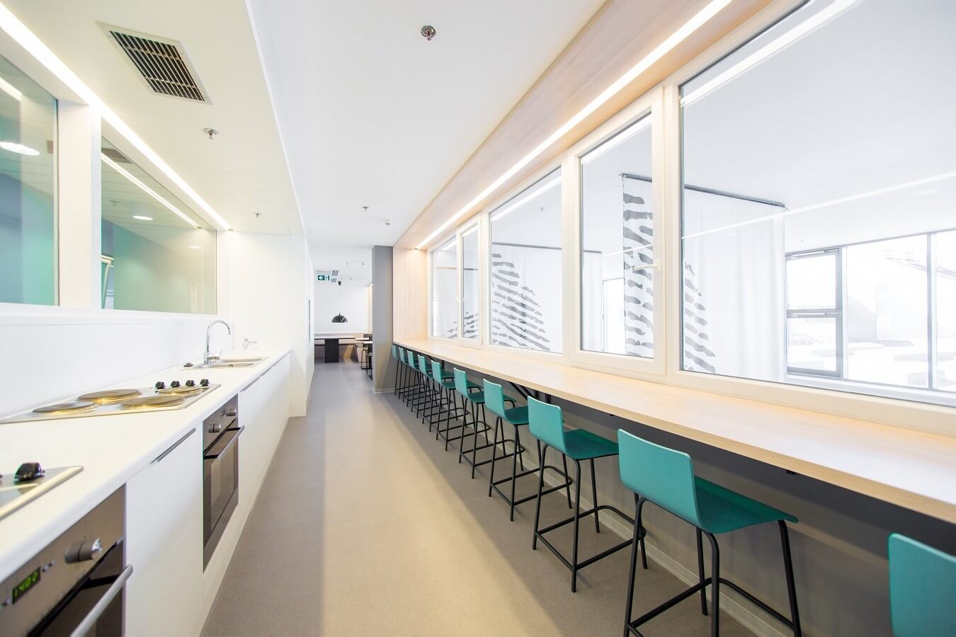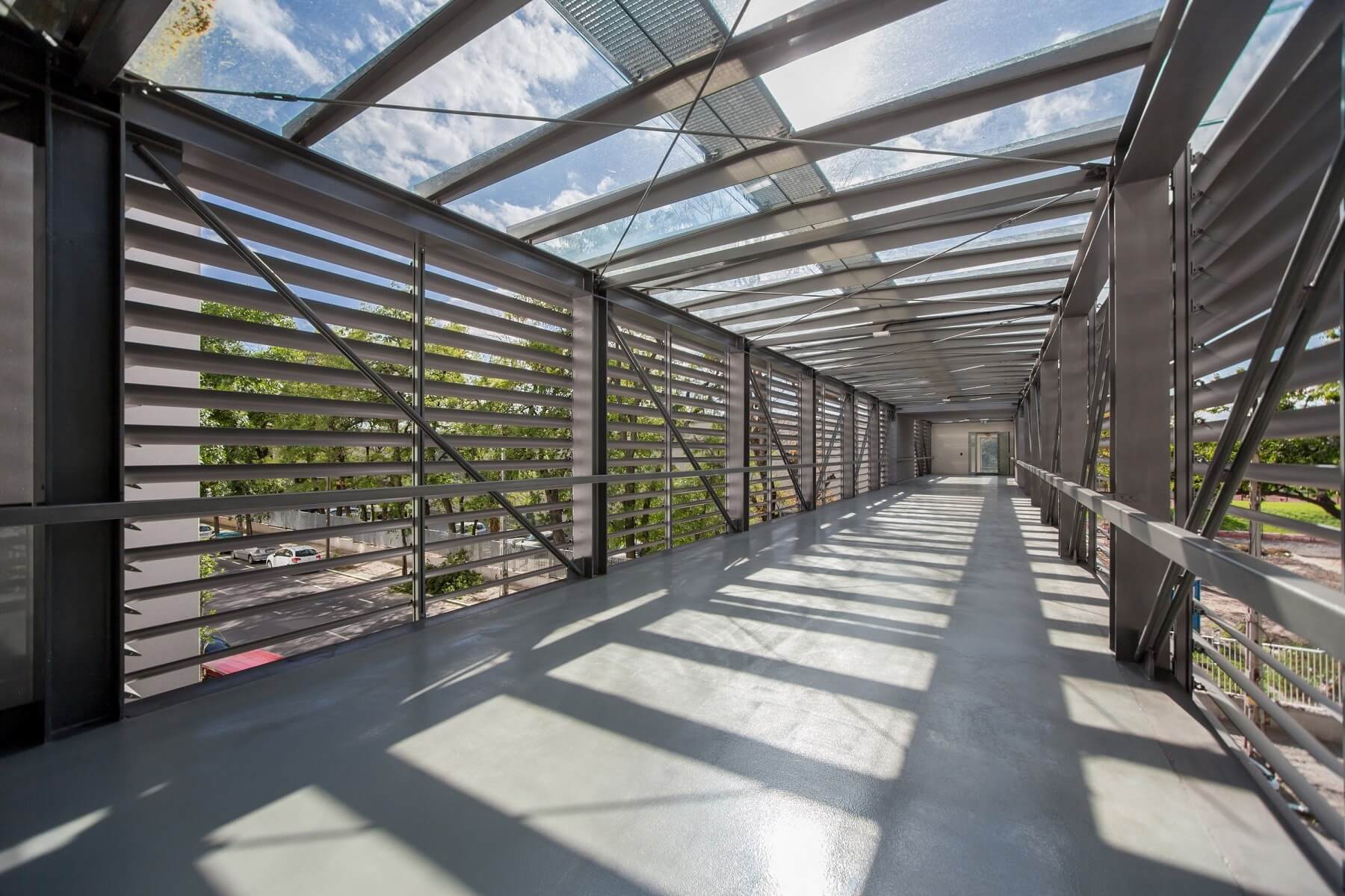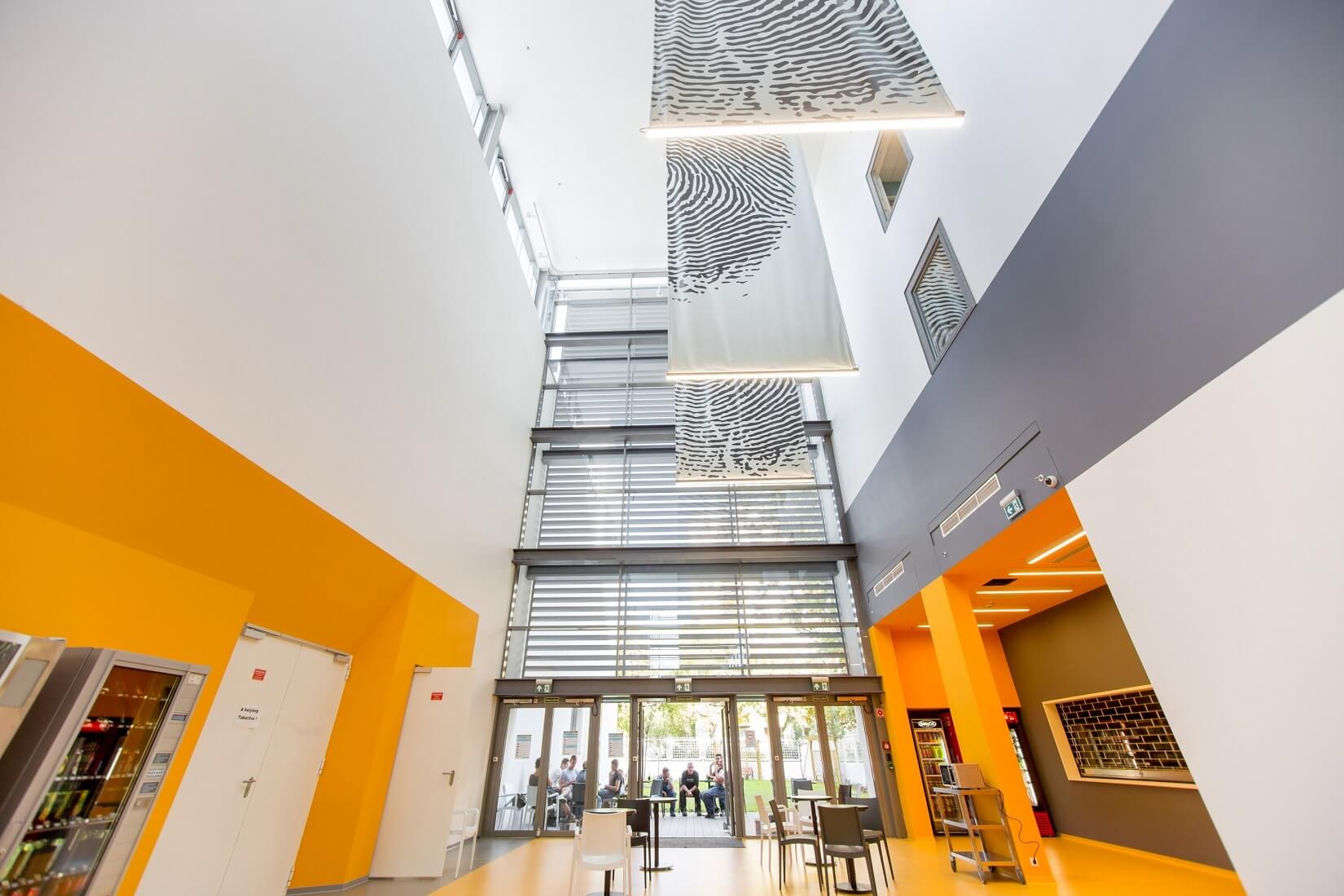 A projekt egyik kihívása az volt, hogy a régi, felújításon áteső épületet, valamint a teljesen új kollégiumot azonos megjelenésű, harmonikus együttessé kellett tenni. Szintén különlegesség, hogy a kollégium első emeletéről, 5 méterrel az utcaszint felett egy üveg fedésű gyalogoshidat is át kellett vezetni a Diószeghy utca túloldalán lévő sportközpont lőtér épületéhez, így a hallgatók a campus elhagyása nélkül juthatnak el egyik létesítményből a másikba.