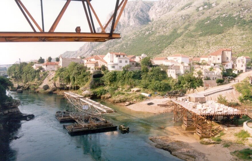 1993 november 9-én a horvátok tanktűz alá vették a város keresztény és muszlim részeit összekötő hidat, miután nem sikerült ellenőrzésük alá vonniuk a várost. Ugyan a háborút lezáró daytoni megállapodás után egy államalakulatba, a Bosnyák-Horvát Föderációba került Bosznia-Hercegovinán belül a két nemzet, akkor még a vad harcok dúltak közöttük.