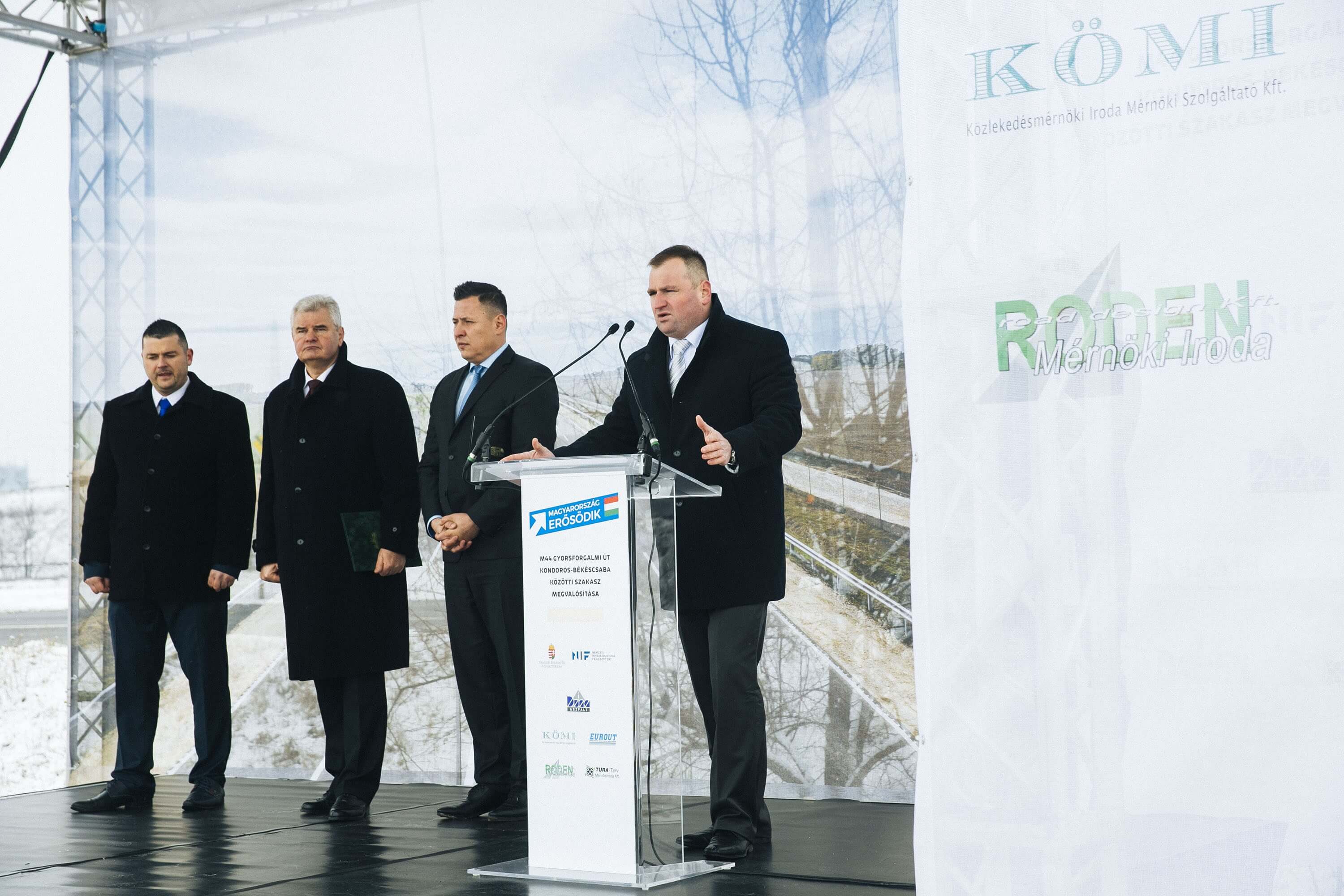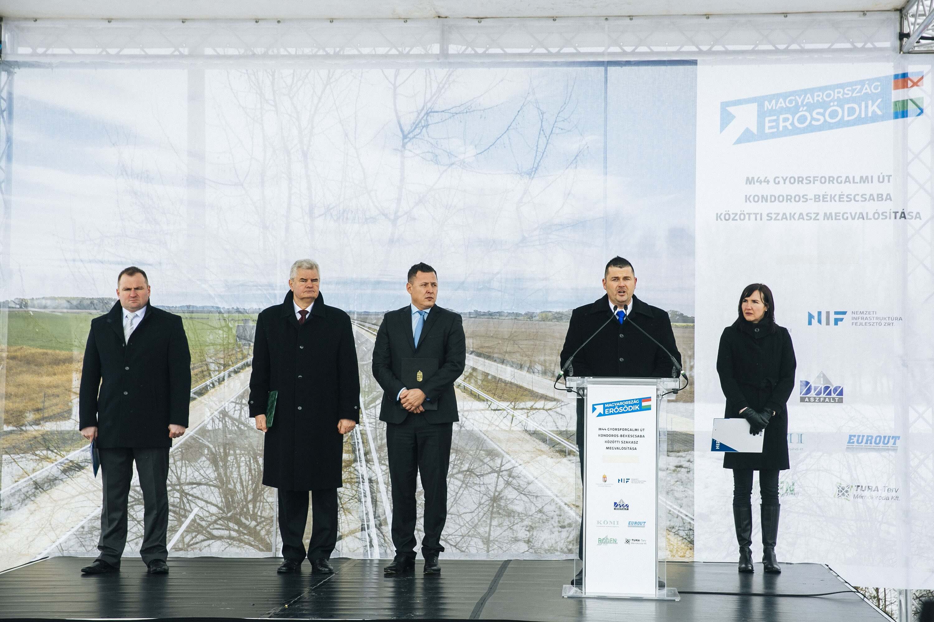 A tervezett végcsomópontnál tartott keddi sajtóeseményen Tóth Andor Nándor, az NFM helyettes államtitkára; Vantara Gyula, Békés megyei képviselő; Dr. Rákóczi Attila, a megyei Kormányhivatal főigazgatója és Pántya József, a NIF útfejlesztési igazgatója is részt vett.