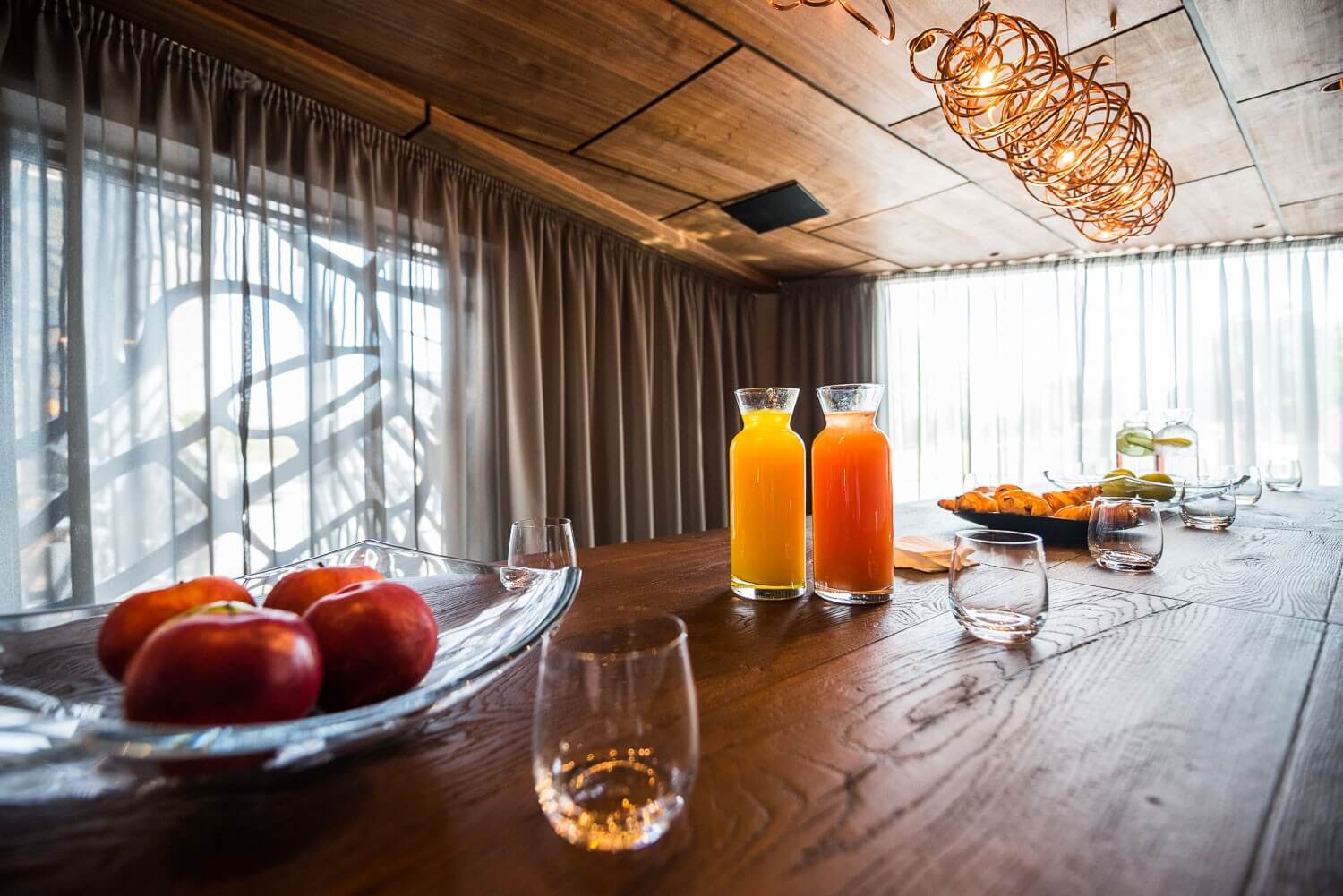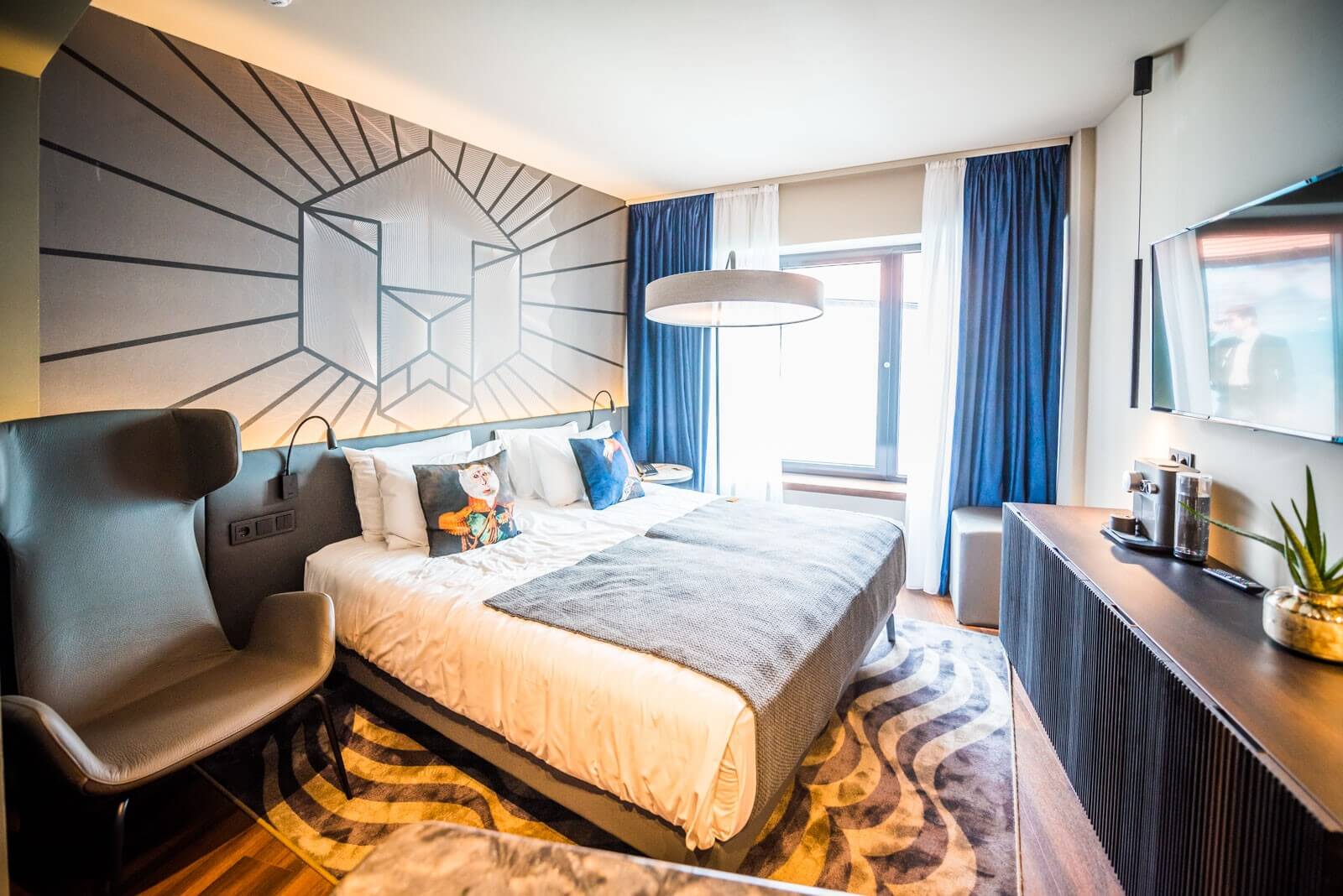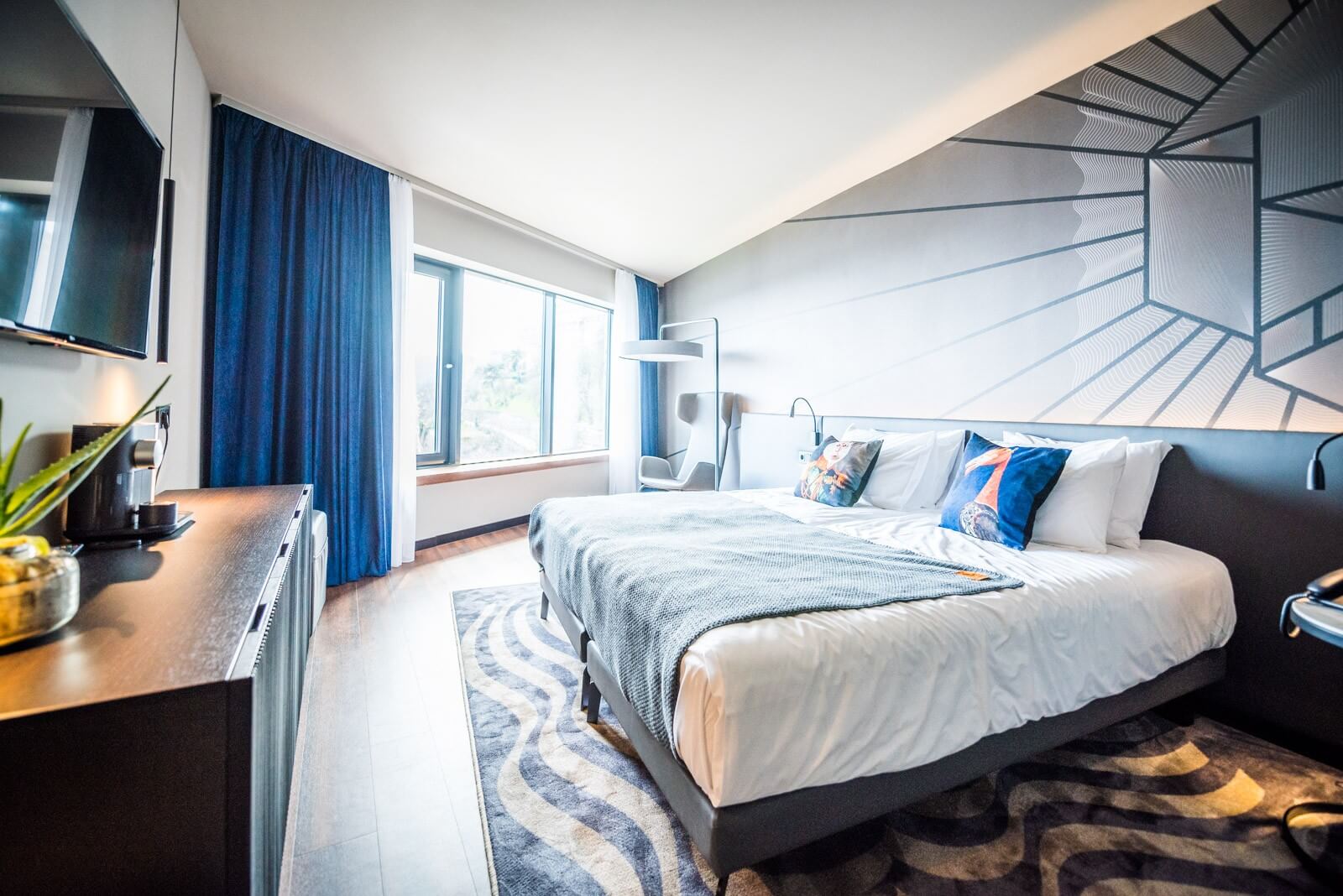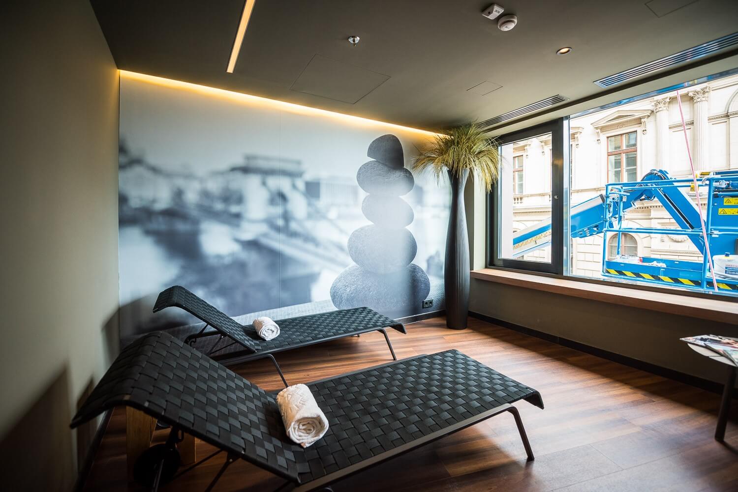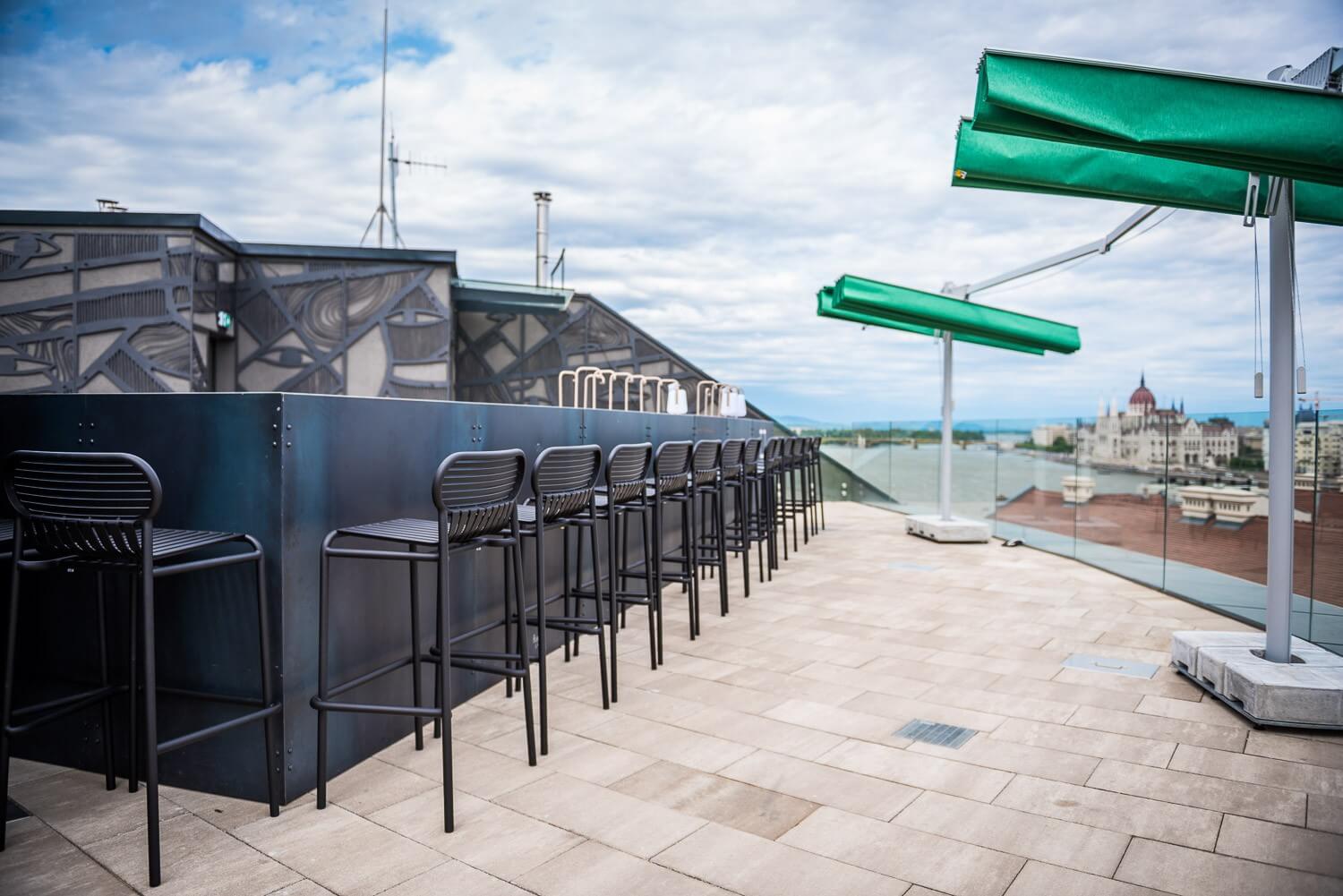 A körpanorámás tetőteraszt tavasztól őszig folyamatosan igyekeznek rendezvényekkel is megtölteni, jövő héten például autóbemutatót tartanak majd itt, egy járművet daruval emelve fel a teraszra. A tetőtérhez két beltéri lounge szoba tartozik, mosdóval együtt. A hotel panoráma nélküli szobái is rendelkeznek belső ablakkal, ahonnan izgalmas grafikusművészeti alkotásokat láthatnak a vendégek.
