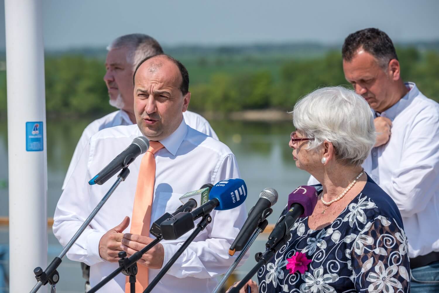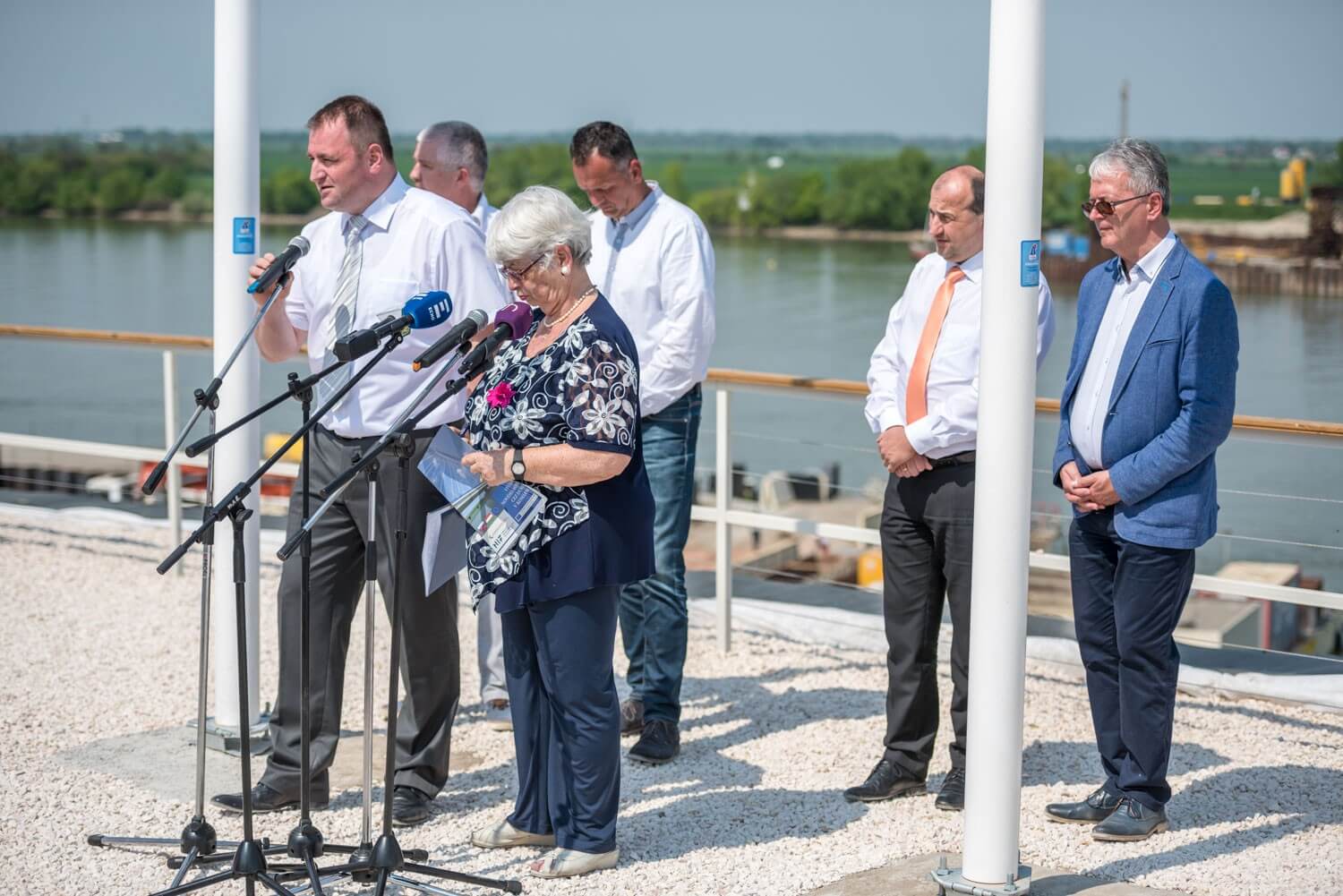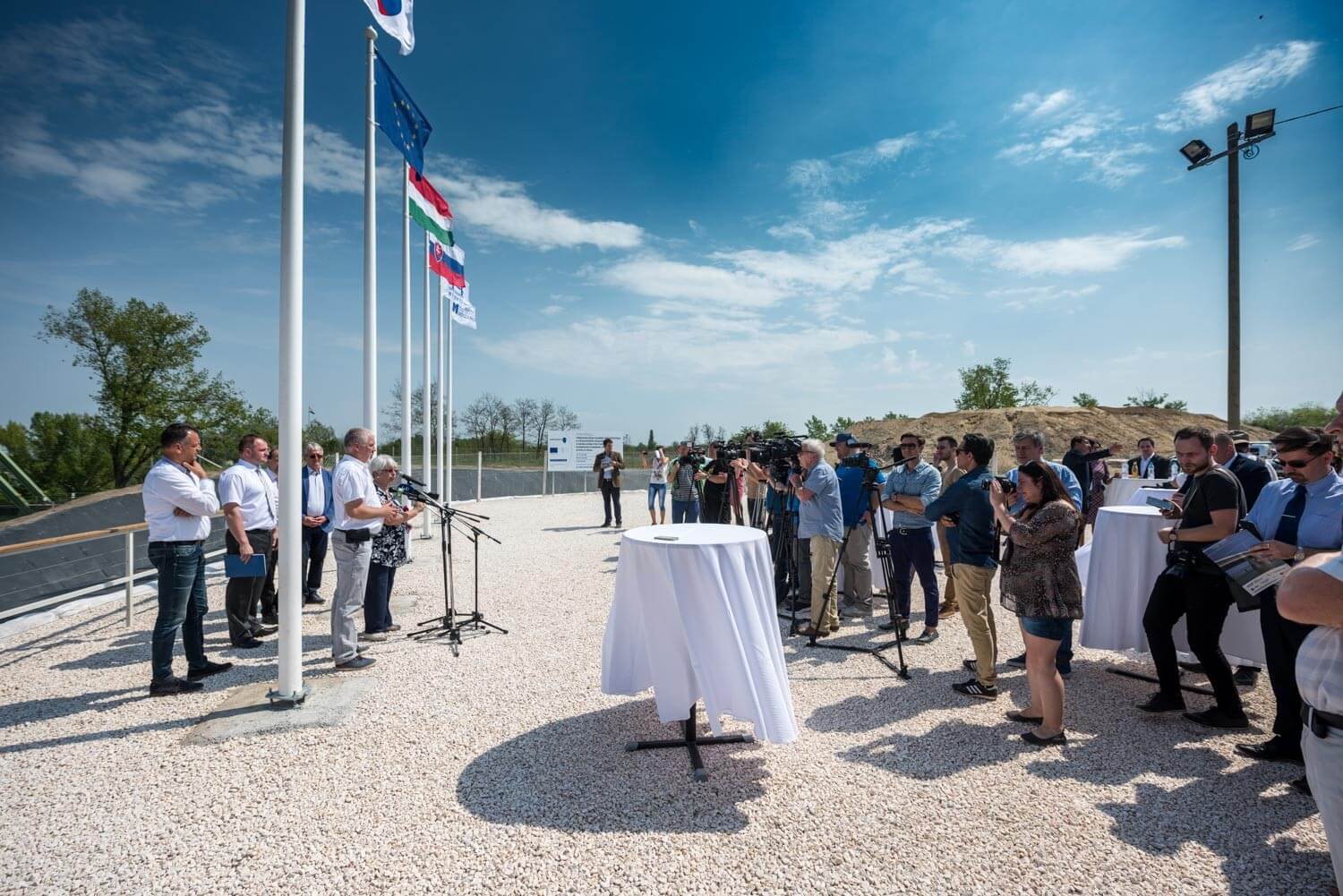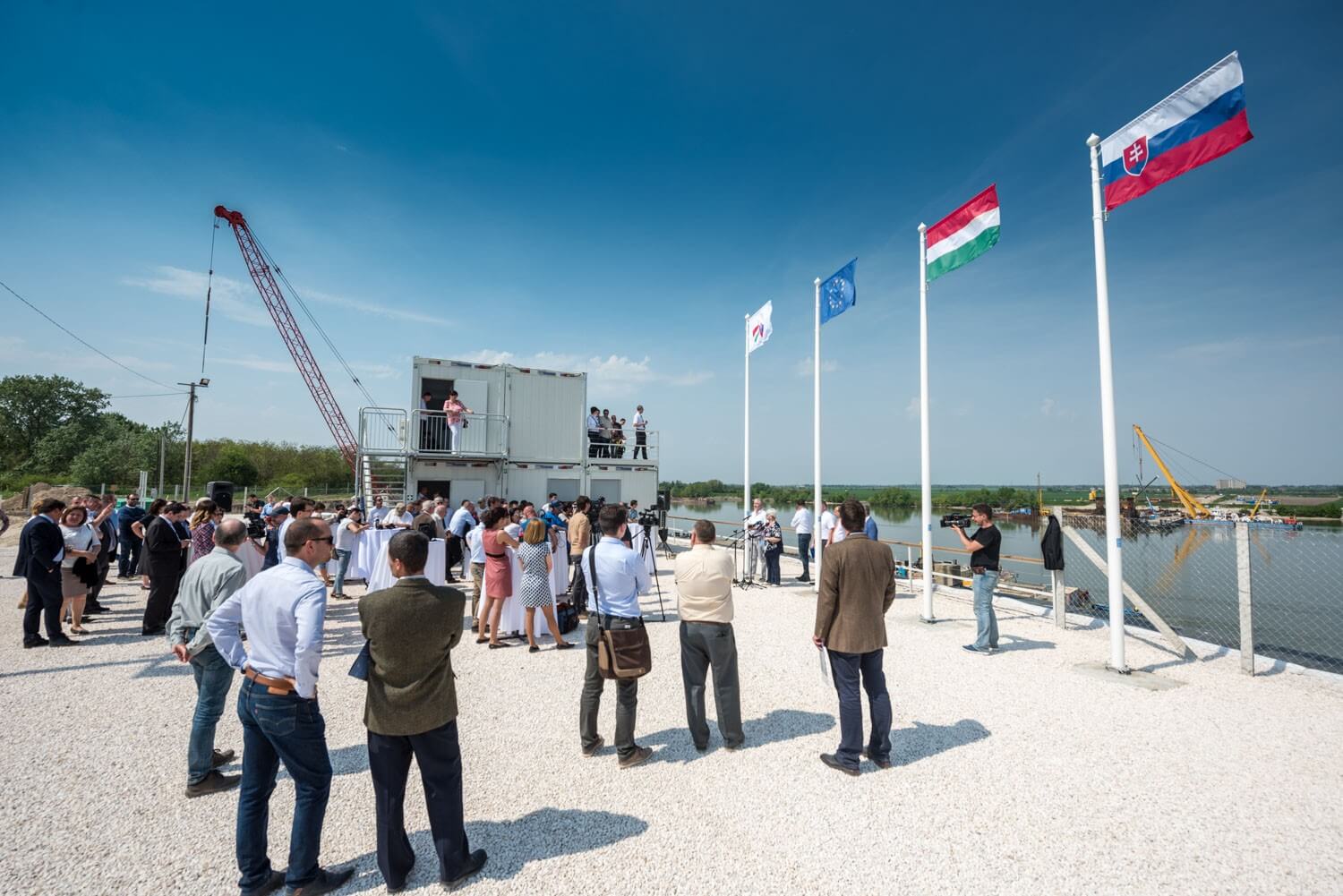 A kivitelező konzorcium nevében Sal László, az A-Híd Zrt. vezérigazgatója niytotta meg a központot. A vezérigazgató elmondta, a tavaly ősszel indult munkákban már befejeződött valamennyi vízi és szárazföldi pillér szádfalas előkészítése. A hídhoz készítendő 95 méteres, acélszerkezetes pilon alépítménye is kész van, ez lassan a víz fölé fog emelkedni. Hozzátette, Csehországban, Szlovákiában, Lengyelországban és Magyarországon már elkezdődött az acélszerkezet gyártása és festése.