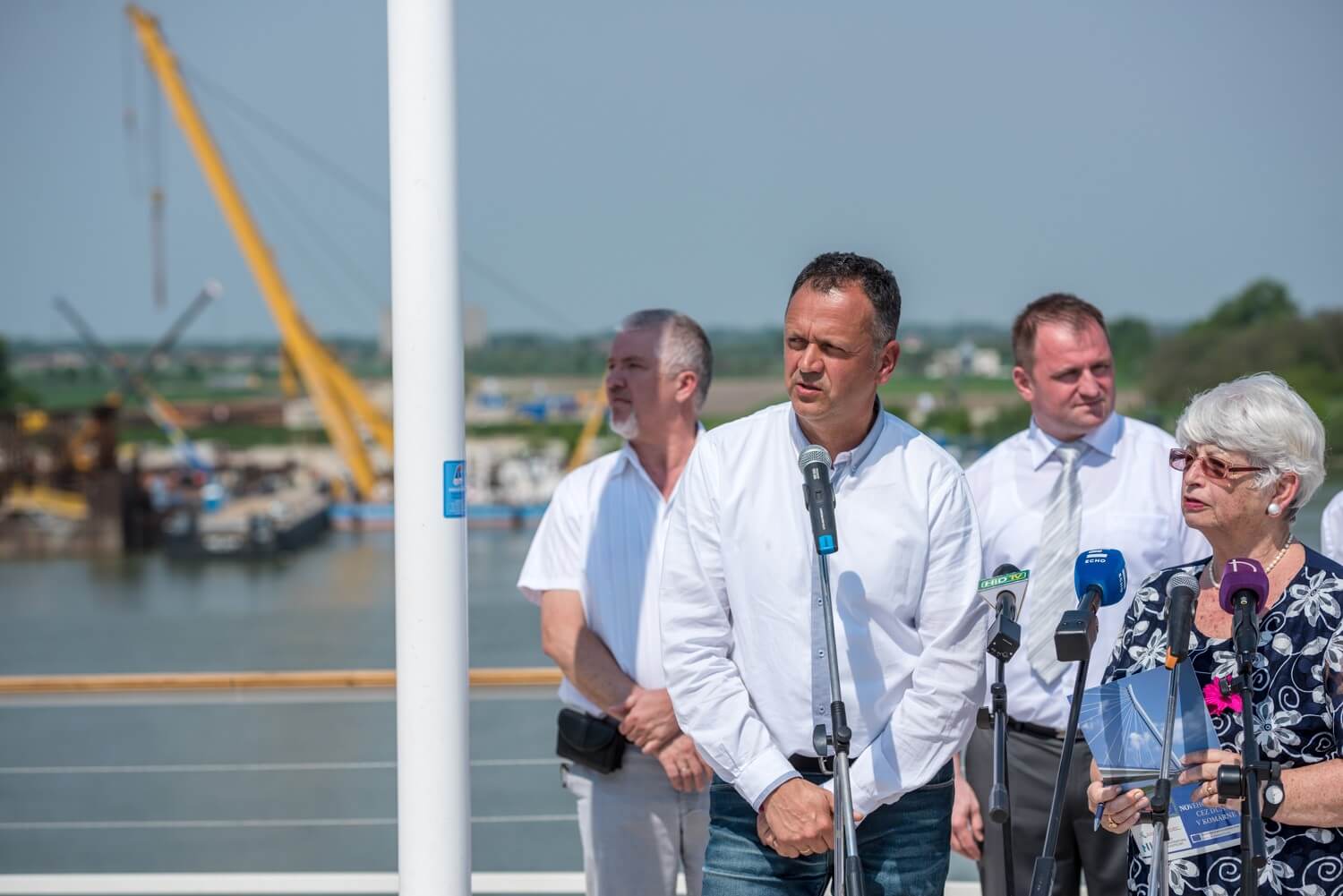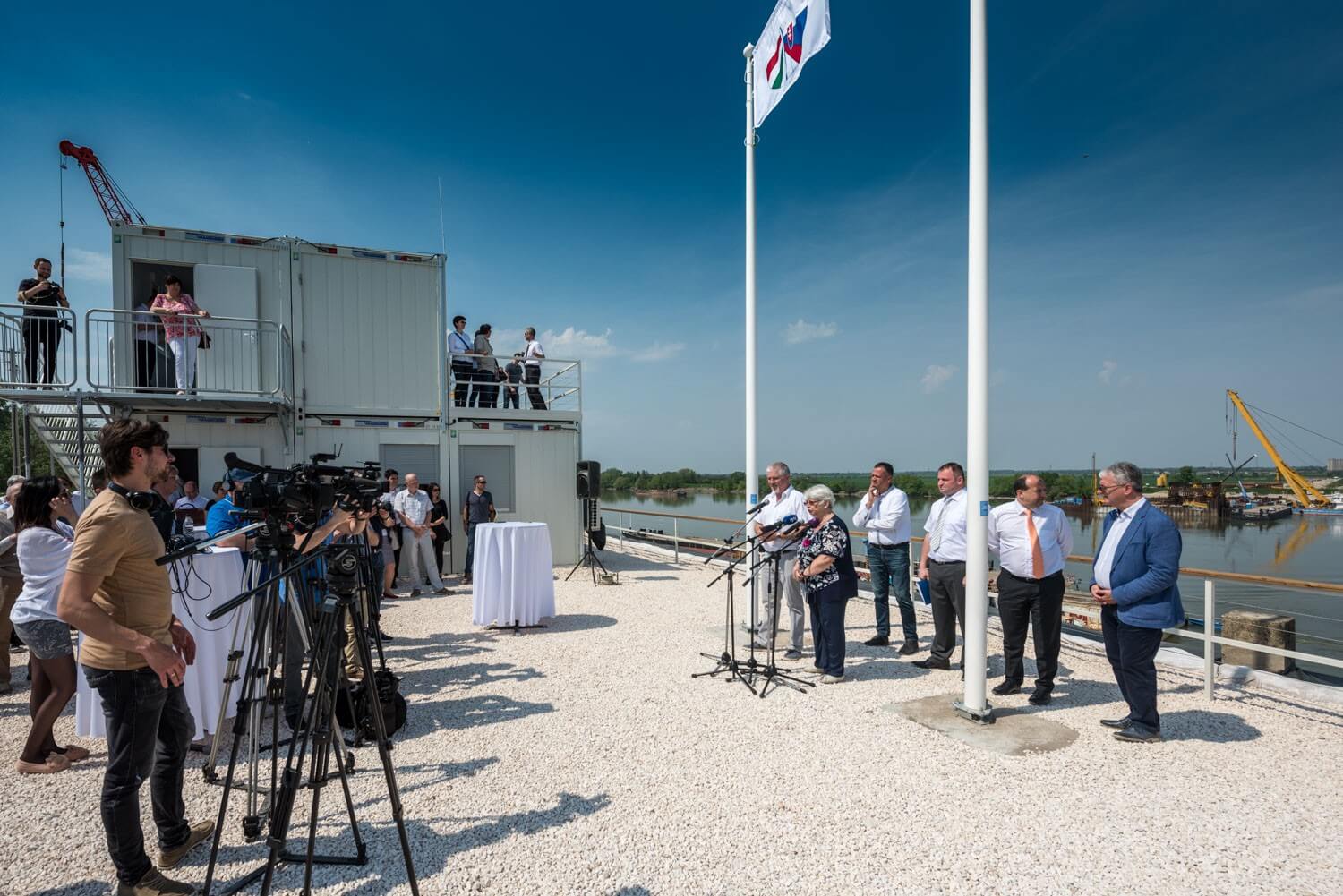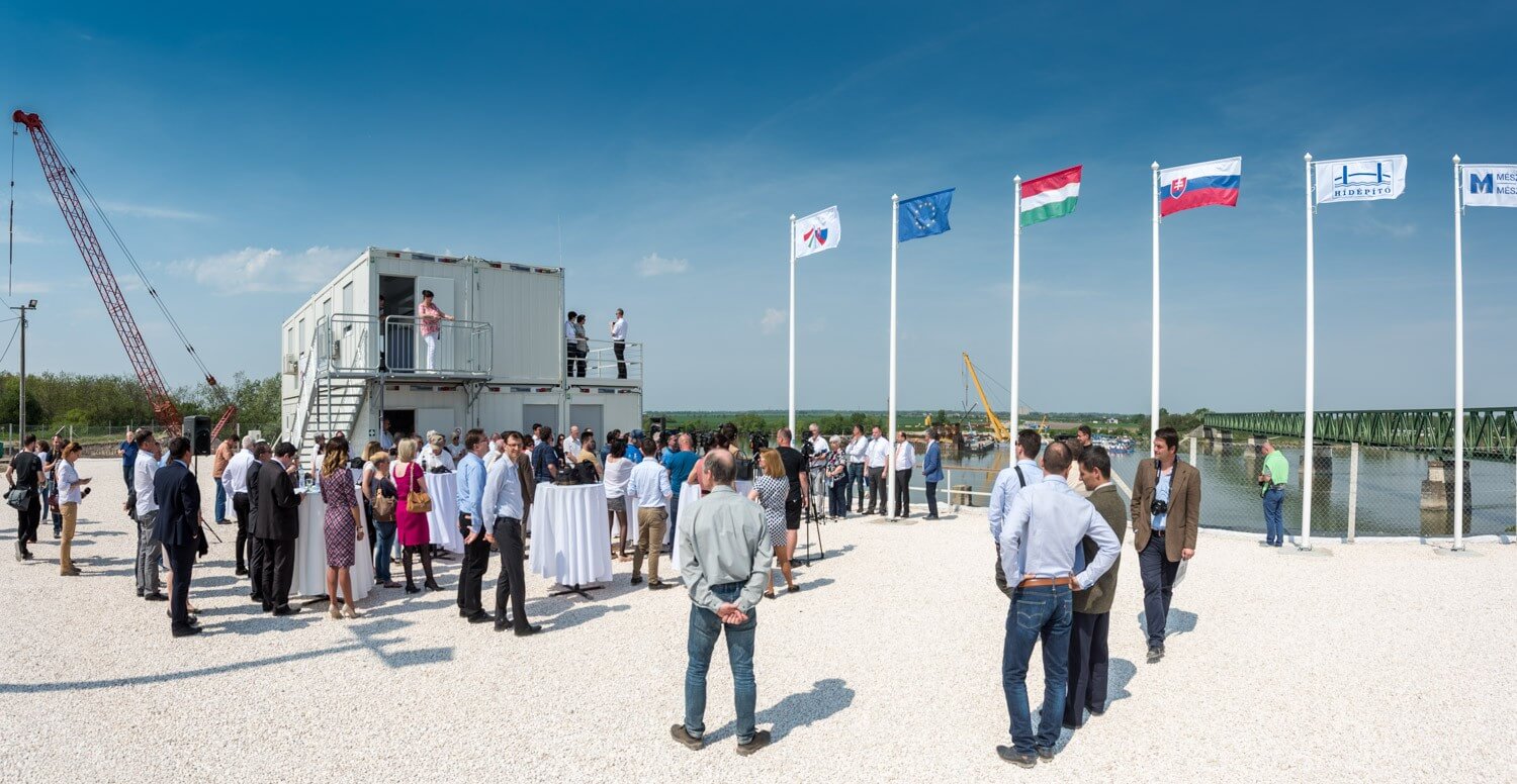 Hétfőn délután megnyitották az új Komáromi Duna-híd látogatóközpontját. A 600 méteres, ferdekábeles híd a Mészáros és Mészáros Kft. és a Hídépítő Zrt. kivitelezésében jön létre Komárom és Révkomárom között.