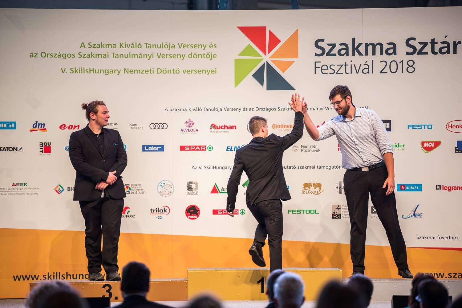 A Hungexpón a magasépítő technikusi szakma döntőjében hat szakközépiskolás csapott össze. Arról, hogy ki a legjobb, egy összetett viadal döntött: a vizsgafeladat megoldása után egy falazást kellett elvégezni, illetve ArchiCAD segítségével egy házat kellett megtervezni. „Az első feladatban méretezniük kellett egy vasalást, illetve hőszigetelést, falazást kellett tervezniük” – árulta el Hornyák Szabolcs. „Ezeknek a fiataloknak magasépítő technikusként már mindent meg kell tudniuk oldani szakterületükön, ezt tükrözik a versenyfeladatok. Gyakorlatilag építésvezetőként működnek a kisebb projektekben, vagyis az összes folyamatot össze kell fogniuk.”