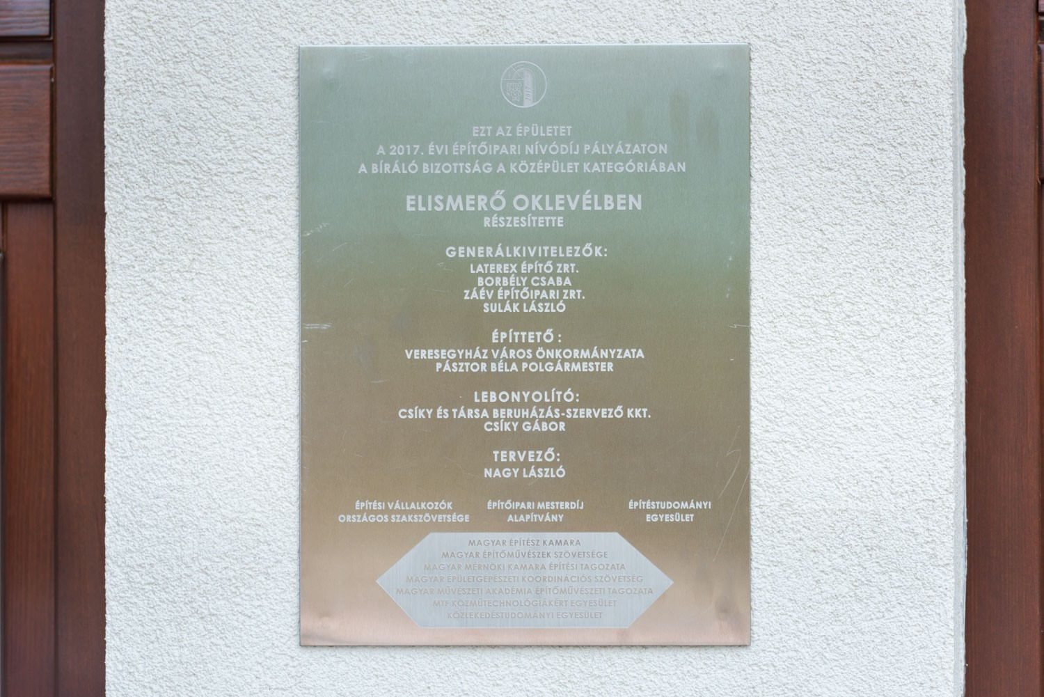 Az elismerő oklevelet igazoló tábla leleplezésekor a Laterex képviseletében Borbély Csaba termelési igazgató megköszönte mind Pásztor Béla polgármesternek, mind a tervezőnek, valamint a konzorciumi partner ZÁÉV-nek is az együttműködést.