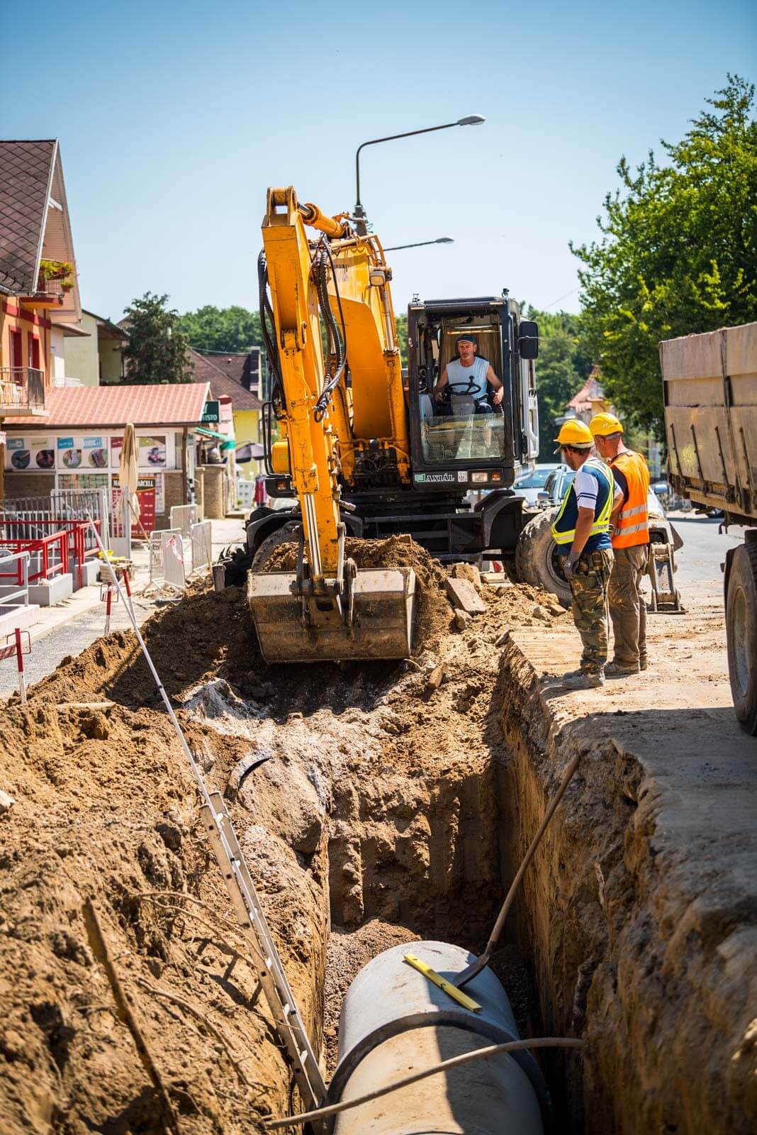 A pontos egyeztetés azért is különösen fontos a beruházásnál, mert annak fontos részét képezi több közművezeték felszín alatti elhelyezése, illetve csapadékelvezető csatornák kiépítése is. Itt is előjön az a probléma, ami a rendszerváltás előtt elkészült tervrajzoknál és közműtérképeknél gyakori: nagyon hiányos az információ. Emiatt sokszor rugalmasan kell reagálni a helyszínen, ahol a projekt szakembereinek gyakran kell azonnali döntéseket hoznia – mondja el a vezető mérnök.