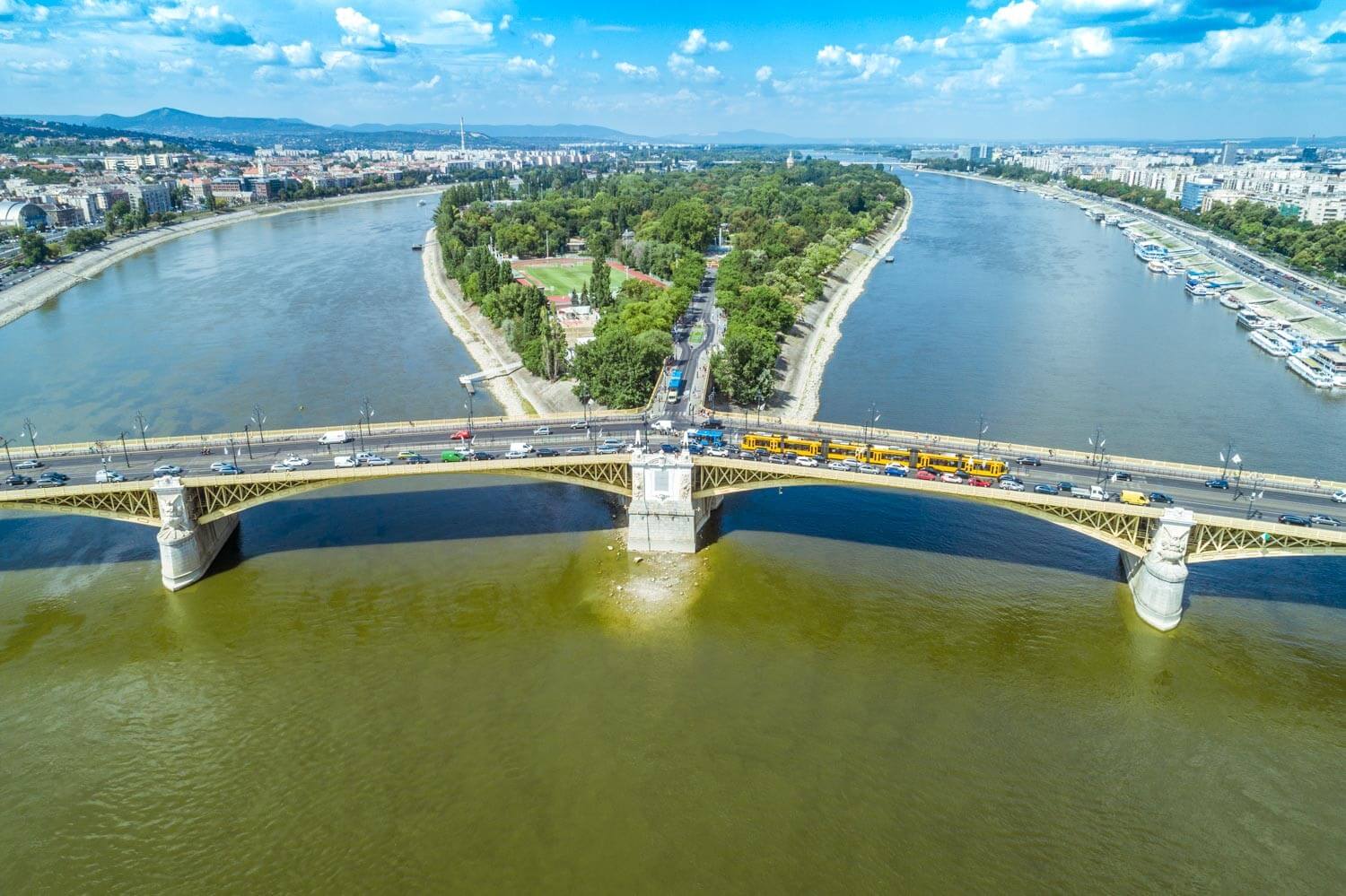 1882-ben, a Lánchíd sikerességén felbuzdulva kezdték meg a Margit híd építését a francia Ernest Goülin, valamint Kraft és Förster bécsi építészek tervei alapján, akiknek összesen mintegy tizenötezer aranyfrank ütötte markát a projekt díjazásaként. A négy év alatt megépülő híd Pestet kötötte össze Budával, azonban a Margit-szigetre ekkor még nem lehetett róla bejutni. További huszonnégy évnek kellett eltelnie, hogy megépítsék és megnyissák azt a szárnyhidat, ami megnyitotta az utat és szabad bejárást biztosított a hídról a szigetre, amit korábban csak csónakkal lehetett megközelíteni.