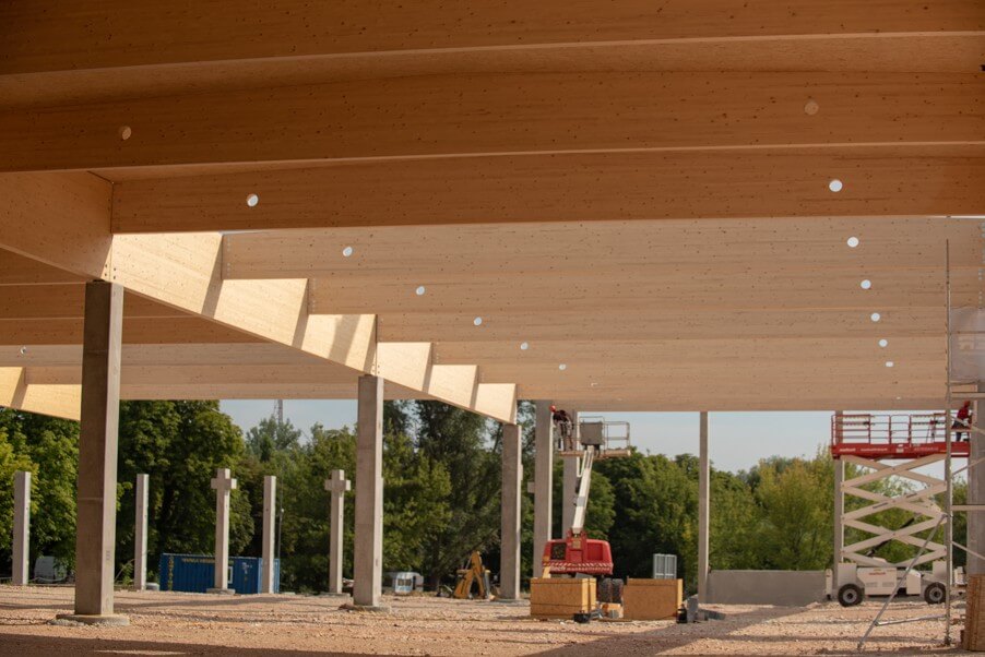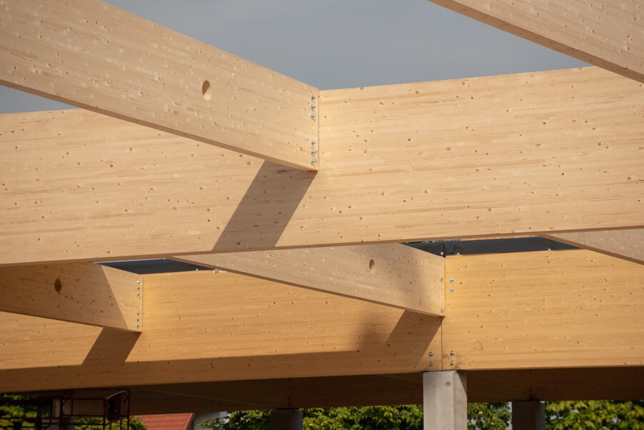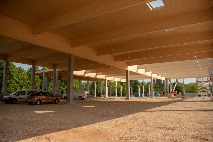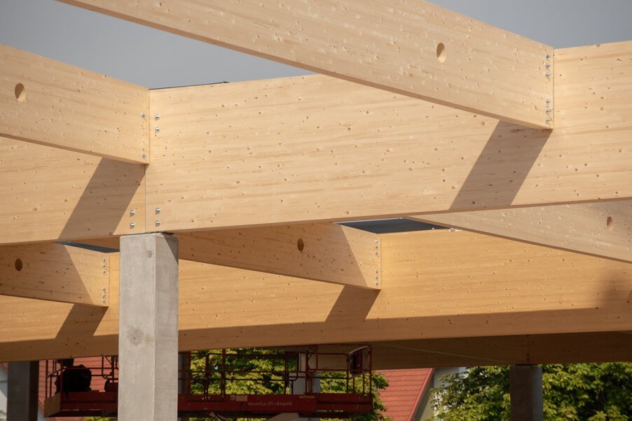 Az áruház előregyártott szerkezeteit a Ferrobeton Zrt. készíti, míg a rétegelt, ragasztott fatartóval készülő tetőért egy osztrák faszerkezetgyártó, a Rubner csoport felelős. A projektmenedzser hangsúlyozta, a faszerkezetű tető kuriózumnak számít egy kereskedelmi létesítmény esetében, mivel a legtöbb esetben ez betonból szokott készülni. A SPAR azonban nem csupán a funkcióra, hanem az egyedi design-ra és a minőségi alapanyagokra is hangsúlyt helyezett, természetközeli állapotot kívánnak sugározni, részben a tatai helyszín miatt is.
