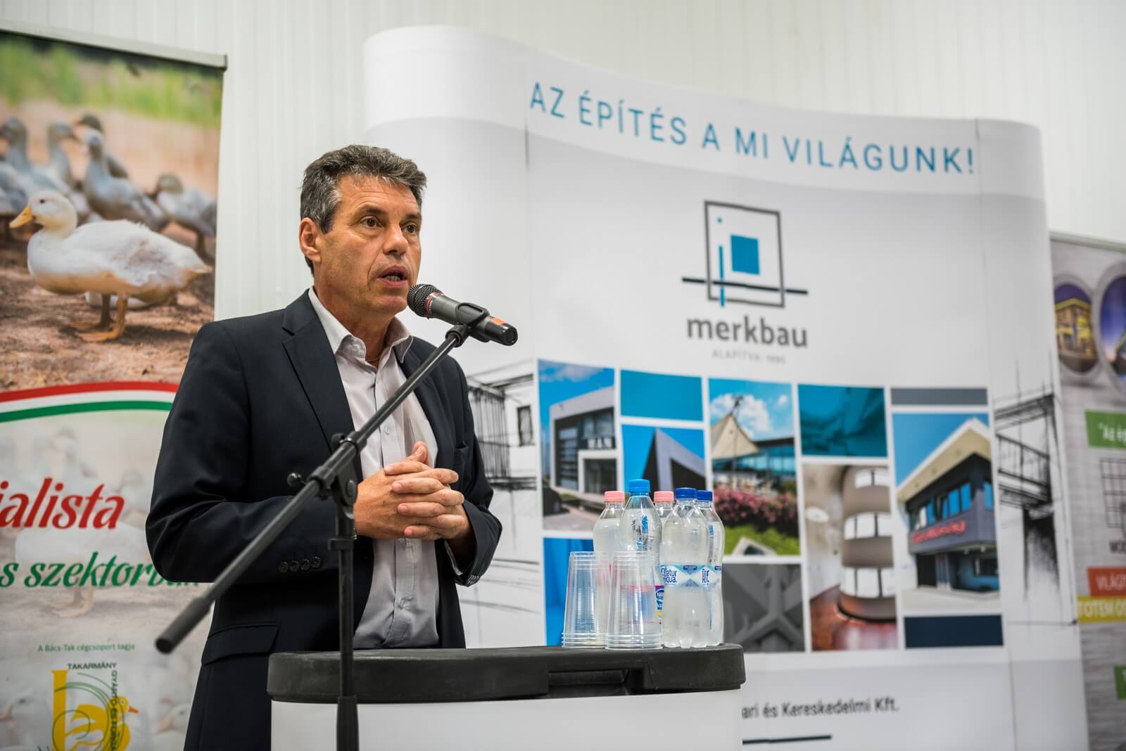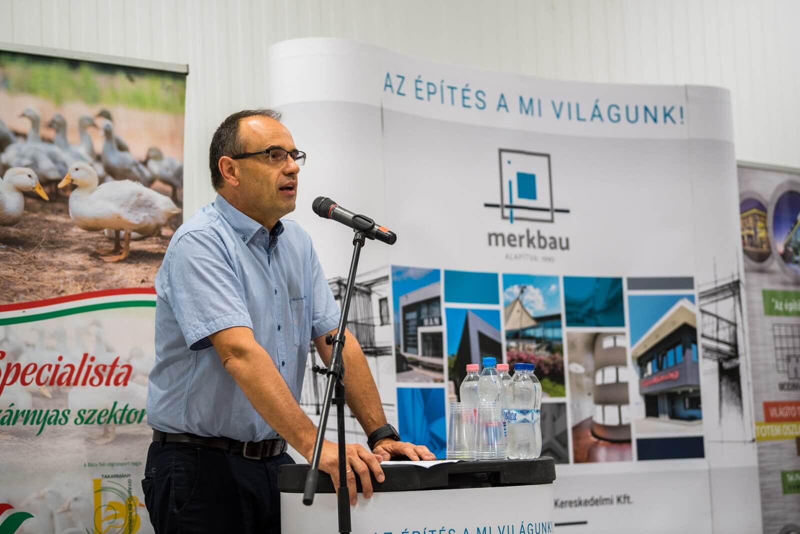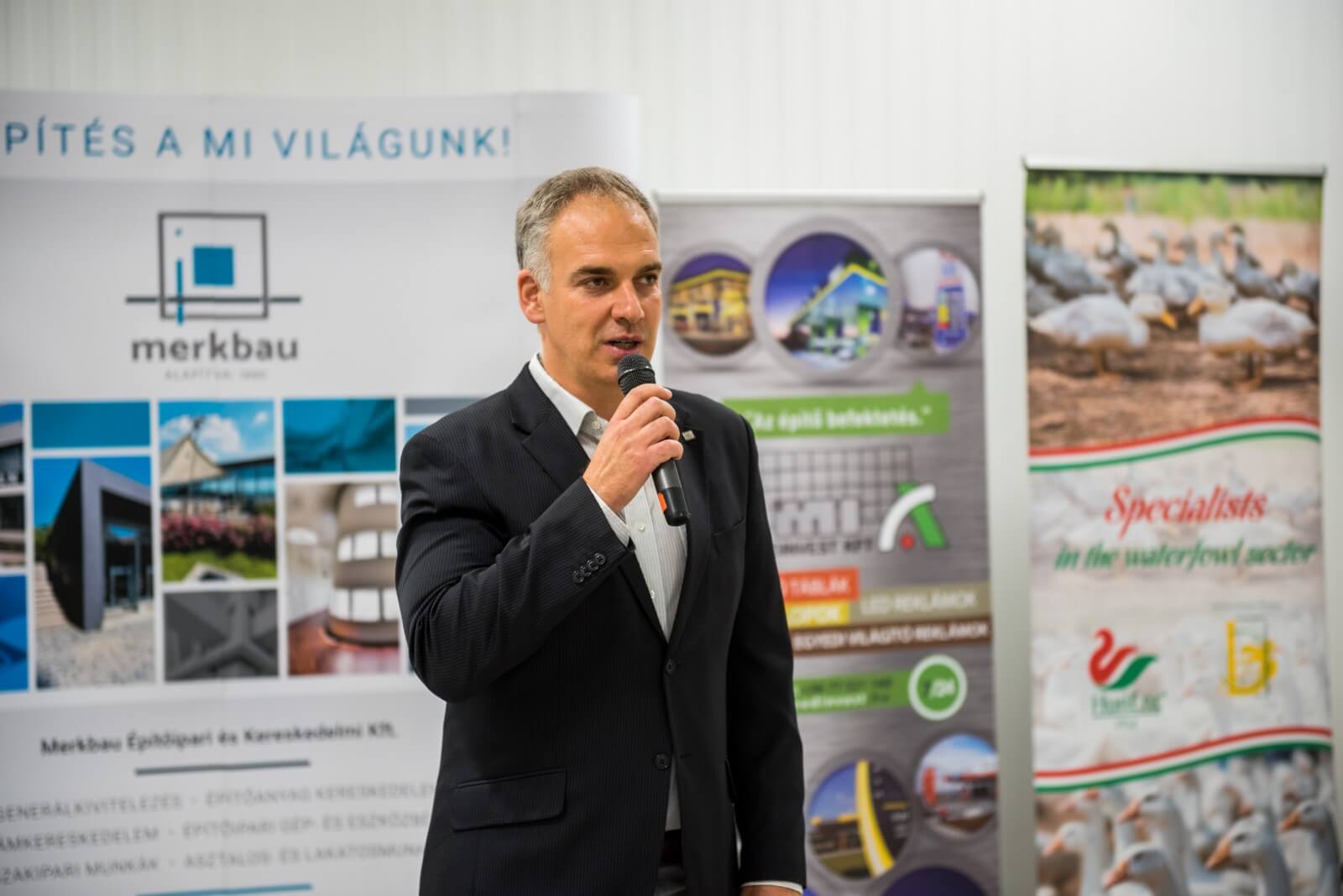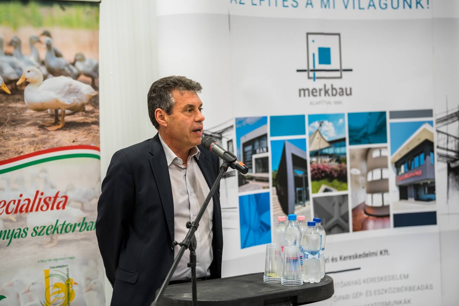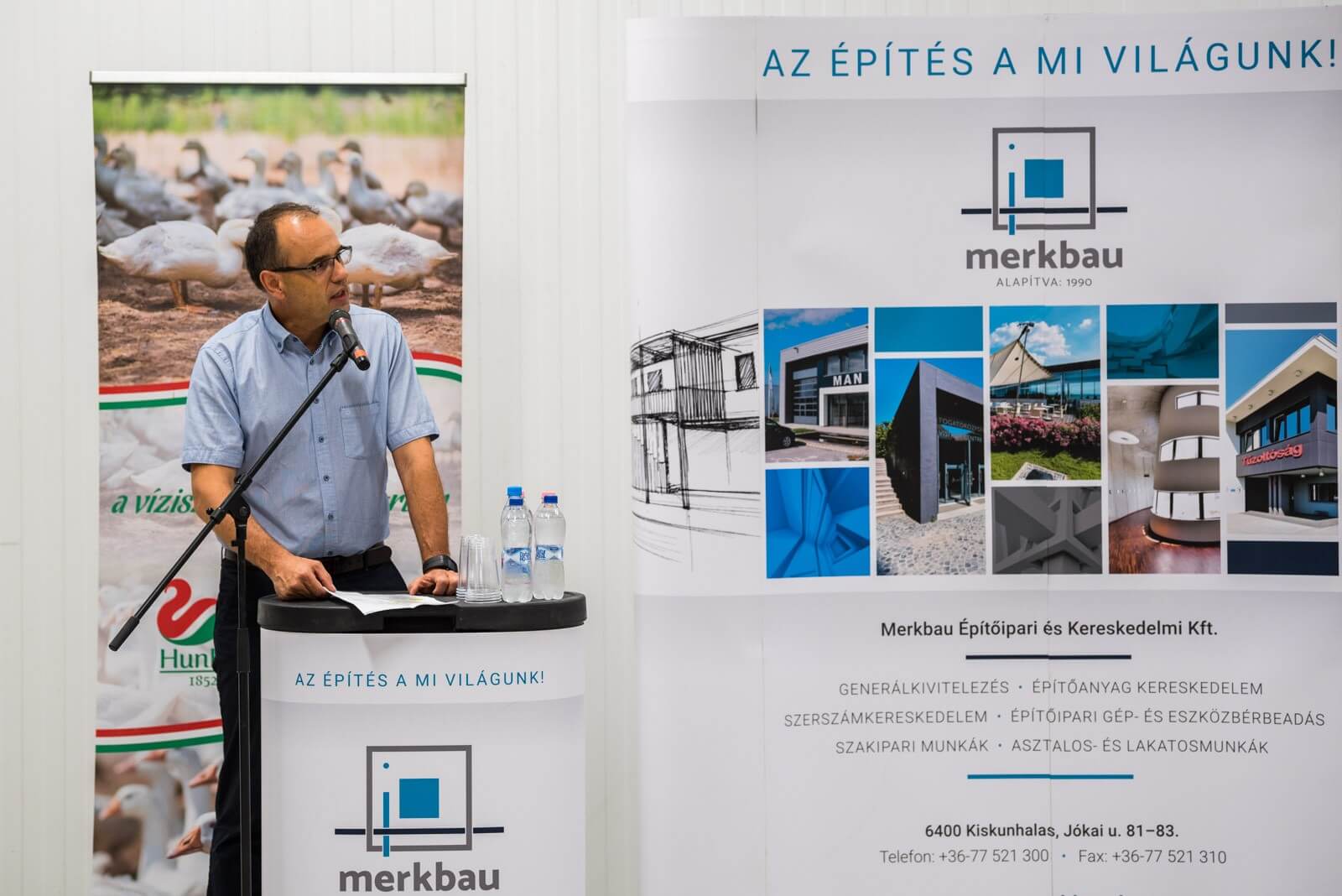 Knáb János, a Merkbau Kft. műszaki igazgatója a Modinvest Kft. nevében is köszöntötte a résztvevőket, és nagy megtiszteltetésnek nevezte, hogy a térség legnagyobb beruházását kivitelezhetik, és hozzájárulhatnak a Hunent márkanév ismertebbé tételéhez. Hozzátette: a kivitelezési munka 2017 őszén kezdődött, a befejezés pedig mostanra már csak néhány hónapnyira van, az átadás 2018 őszén meg fog történni.
