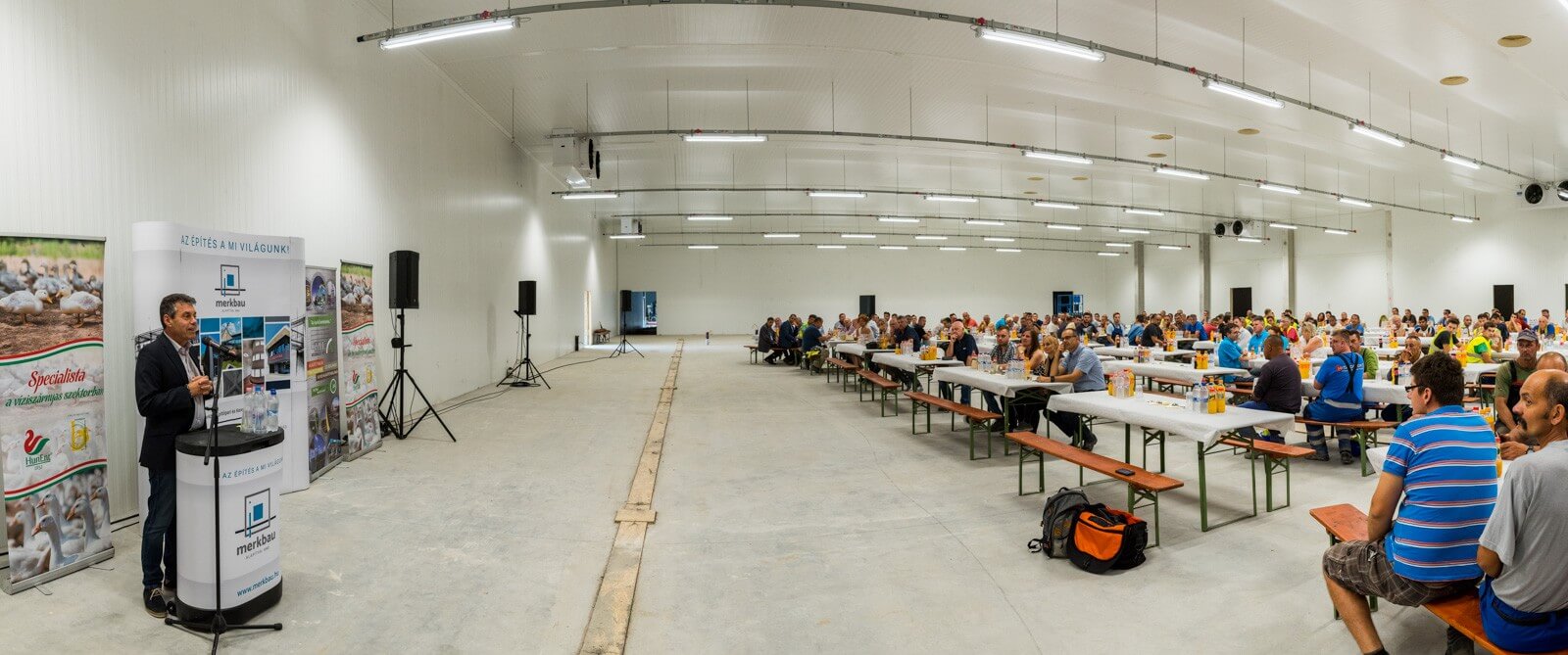 Szerkezetkész a több mint 18 ezer négyzetméteres víziszárnyas vágóhíd, melyet 12,6 milliárd forintból épít a Hunent Víziszárnyas Feldolgozó Zrt. számára a Merkbau Kft. és a Modinvest Kft.