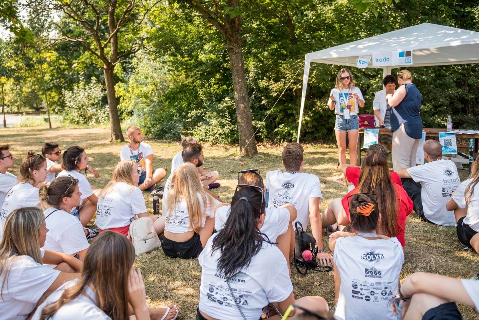 A Magyar Építő Zrt. – a WHB csoporthoz hasonlóan – kiemelt támogatóként vett részt a rendezvényen. A cég képviseletében Ress Marianna vezérigazgatói asszisztens lapunknak elmondta, hogy a táborban résztvevő 120 gólyát (melyből 90-en építőmérnökök) és a szervező felsőbbéves hallgatókat az anyagi támogatás mellett hasznos ajándékcsomaggal is meglepték.