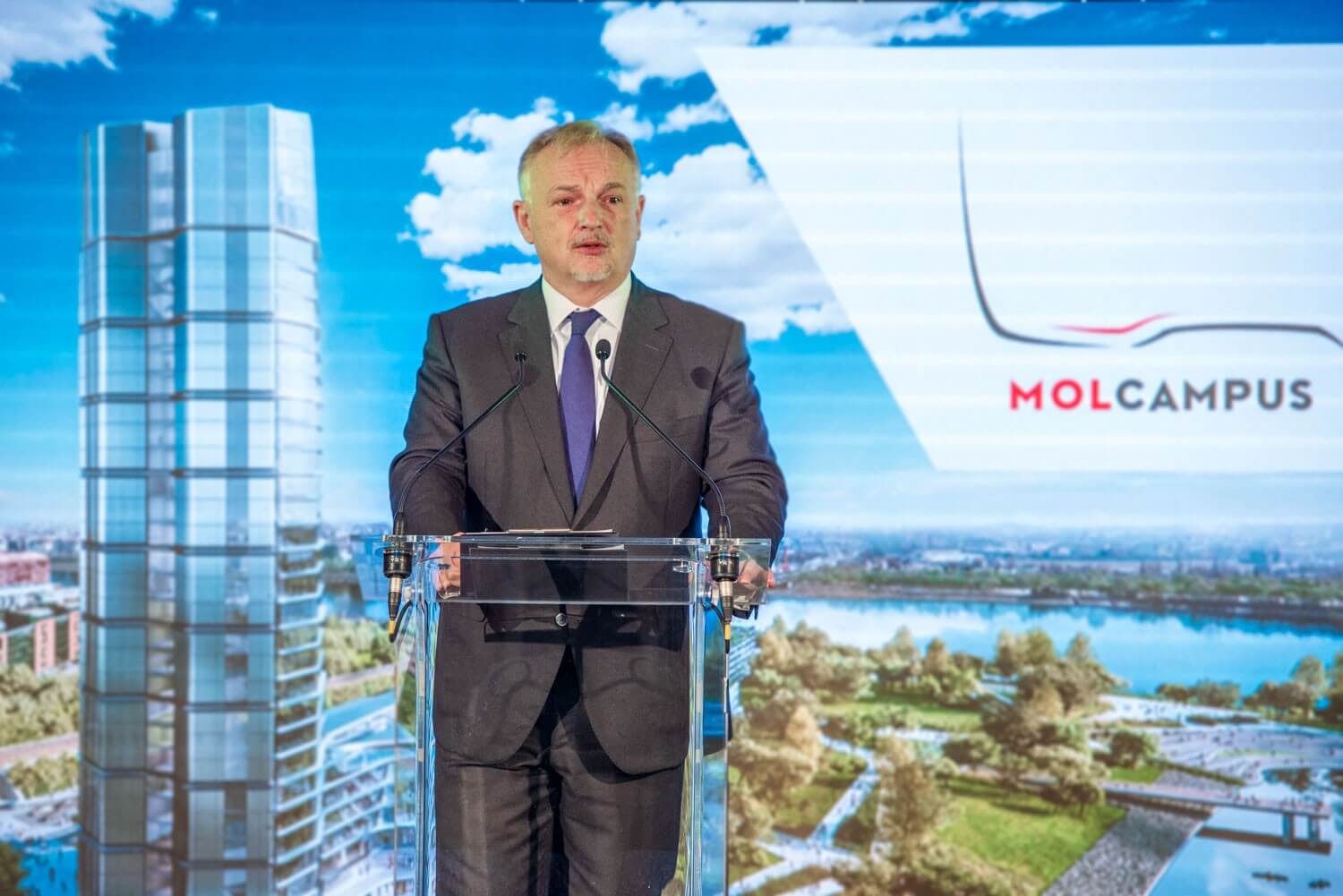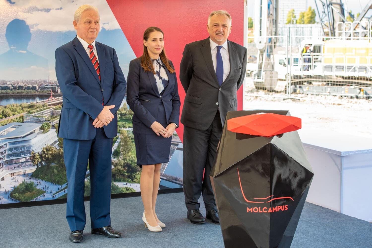Letették Dél-Budapest egyik meghatározó új épületének alapkövét kedden. A MOL közép-európai ambícióit hirdető 120 méter magas, 28 emeletes, 98 ezer négyzetméteres MOL Campus tervrajzait napra pontosan egy évvel ezelőtt, október 2-án mutatták be a nagyközönségnek.