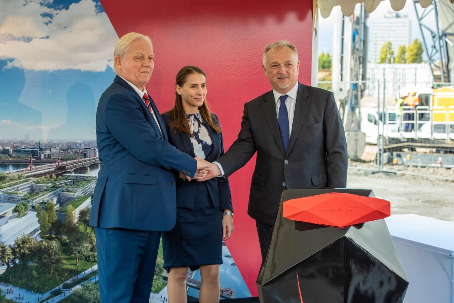 Hernádi Zsolt kifejtette: több száz magyar mérnök munkájával fog elkészülni az épület. Kiemelte: az innováció, a környezettudatosság és a zöld terek szerepe különösen fontos.