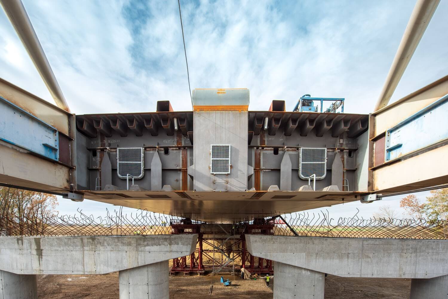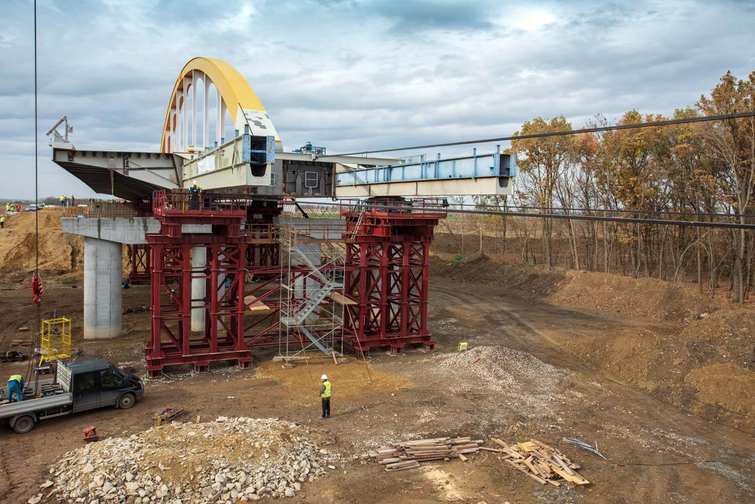 A behúzás után még egy függőleges mozgatás következik, ezáltal kerül a szerkezet rá a híd támaszaira.