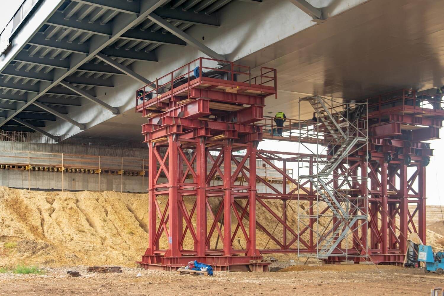 Az acél pályaszerkezetű mederhíd acélrudakkal függesztett ívhídként készült el. A mederhíd mozgatásához szükséges segédszerkezetek (a csőcölöpök, jármok, bakok, csúszkák, szerelőcsőrök, ívszerelő állványok) súlya meghaladja az 500 tonnát.