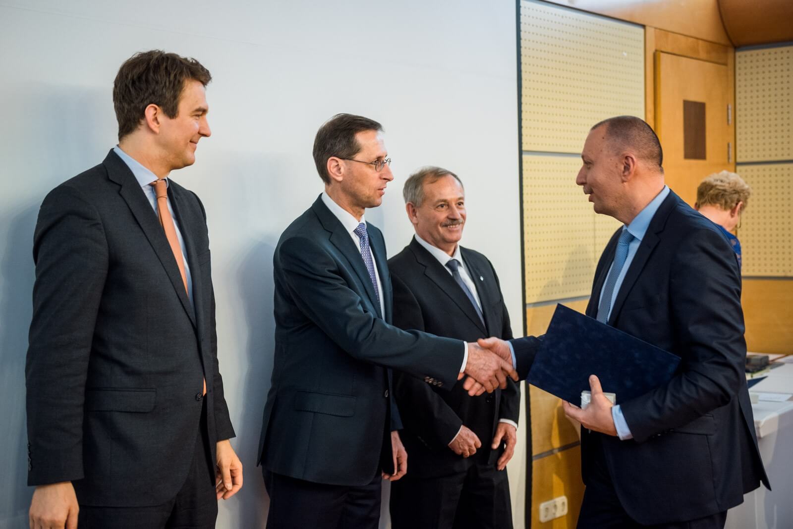 Az Építési Alkotói Díjakat dr. Kiss Jenő, a Magyar Mérnöki Kamara Építési Tagozata elnöke adta át. A díjazottak: