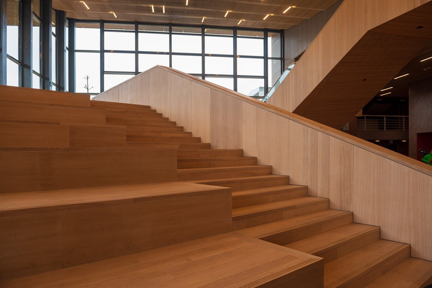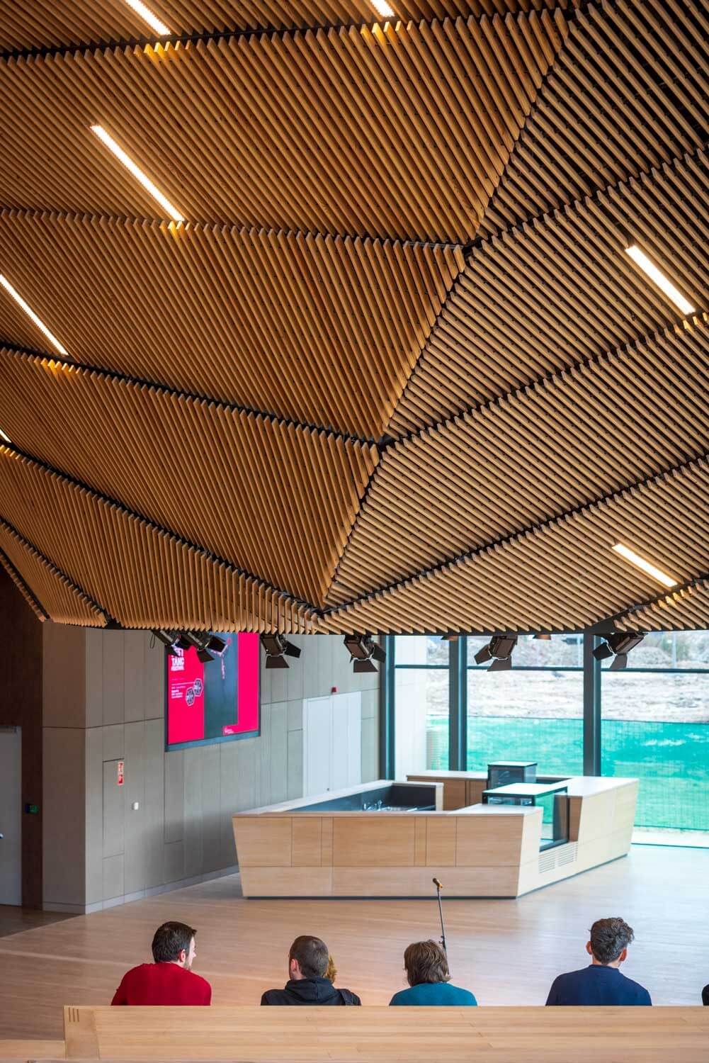 A termet tartó 1500 tonnás vasbeton szerkezethez közel 200 tonna betonacélt építettek be. A tartók geometriáját finoman lekövető fa-álmennyezet pedig 13 ezer darab faelem felhasználásával készült.