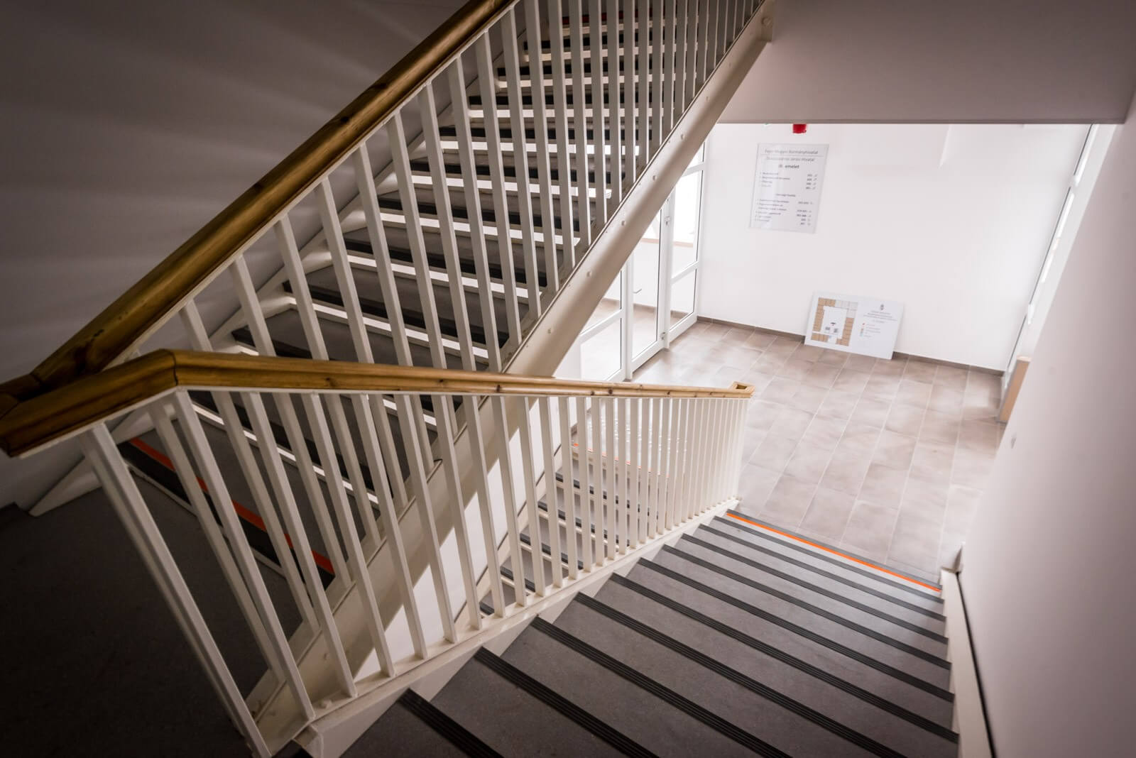 Tavaly januárban vették át a munkaterületet a Szórád Márton úti épületnél, ami korábban a dunaújvárosi vasmű rendelőintézete volt. Az első lépésben a régi épületet le kellett bontani egészen az acélszerkezetig. „Ezt követően többek közt a homlokzatot, a tetőszigetelést, a belső részeket, az aljzatot, a lifteket és a modern gépészetet valamint a teljes erősáramú és gyengeáramú rendszereket is fel kellett építenünk” – mutatott rá a projektvezető.