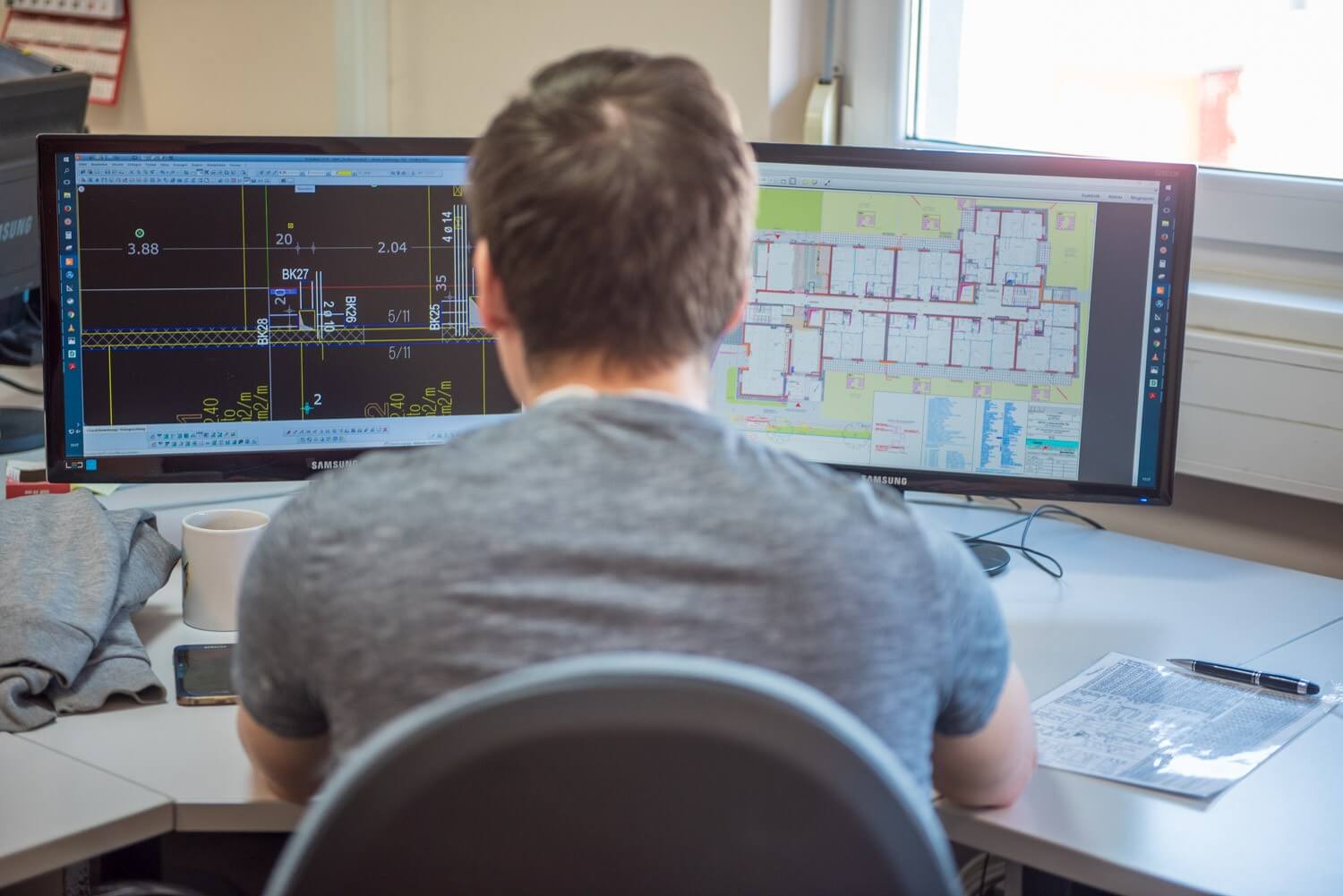 A beérkező tervek alapján a cég mérnökei felszeletelik az épületet, megkeresik a legideálisabb megoldást, és az így generált igények jutnak el a gyártásra.