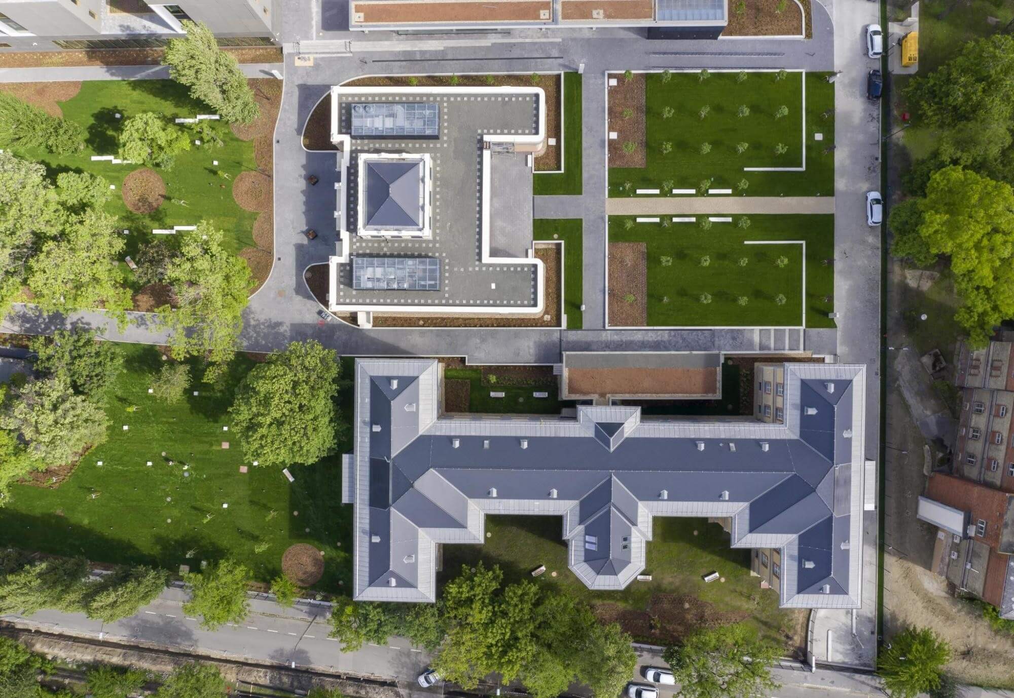 A telek két értékes, Freund Vilmos által terezett régi épületét örökségvédelmi szempontok figyelembevételével újították fel. Az új épület tagoltságával és anyaghasználatával illeszkedik a 19. századi, kisebb volumenű kórházi pavilonépületekhez.