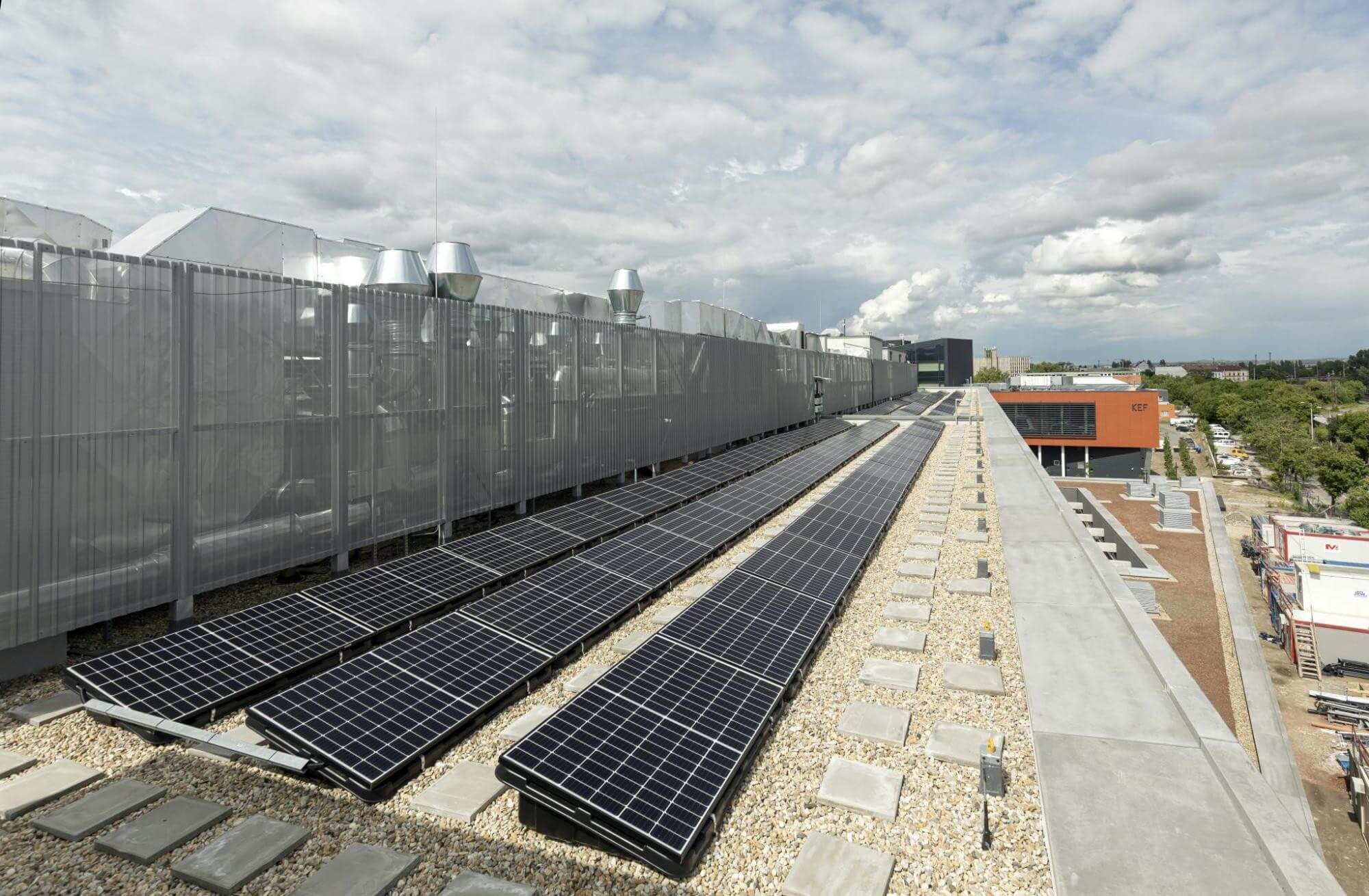 A tetőkön elhelyezett napelemek pedig a villamosenergia-felhasználás egy jelentős részét is fedezik.