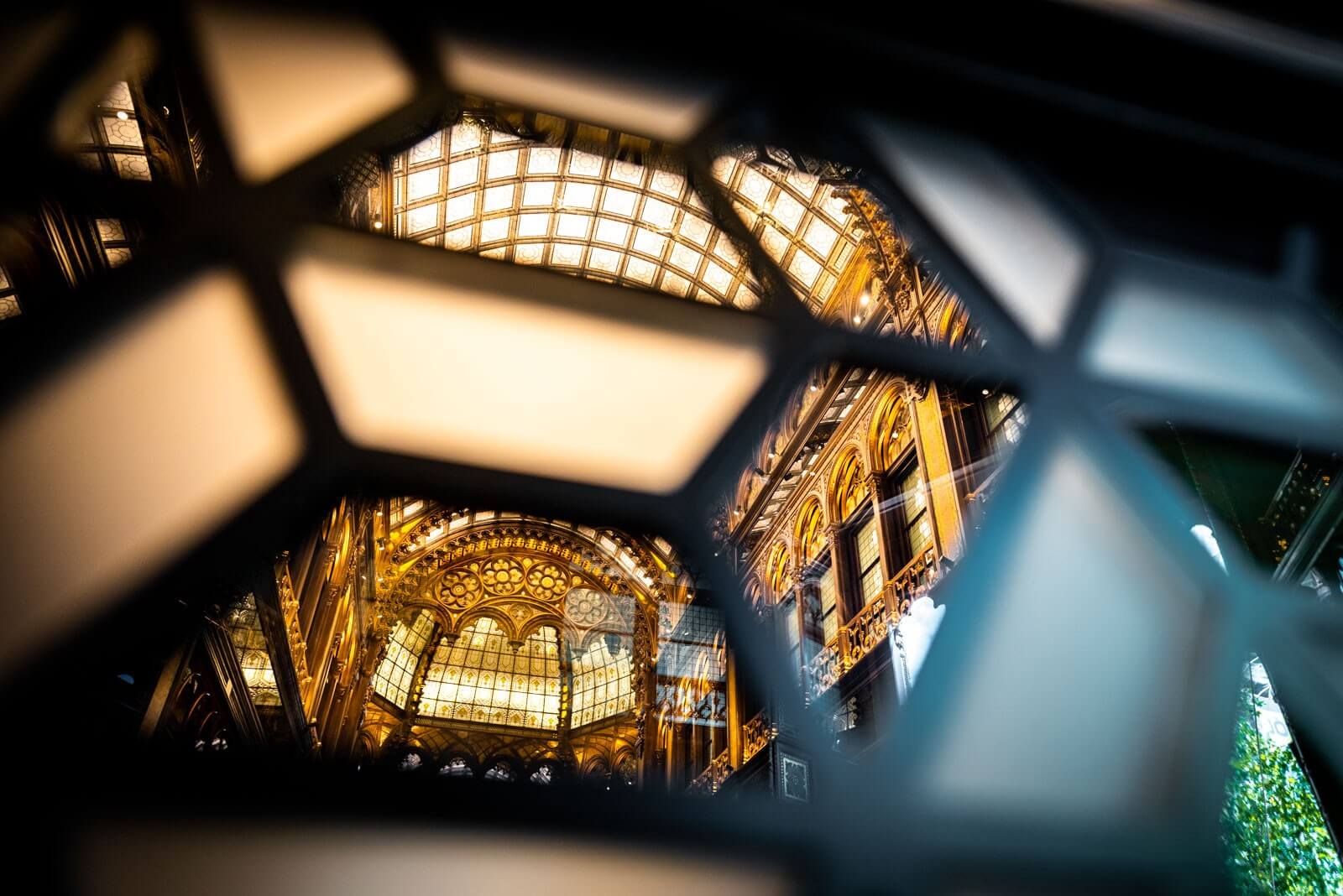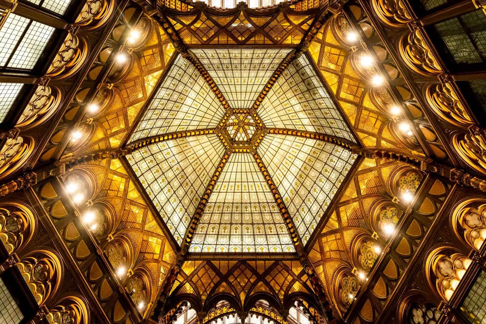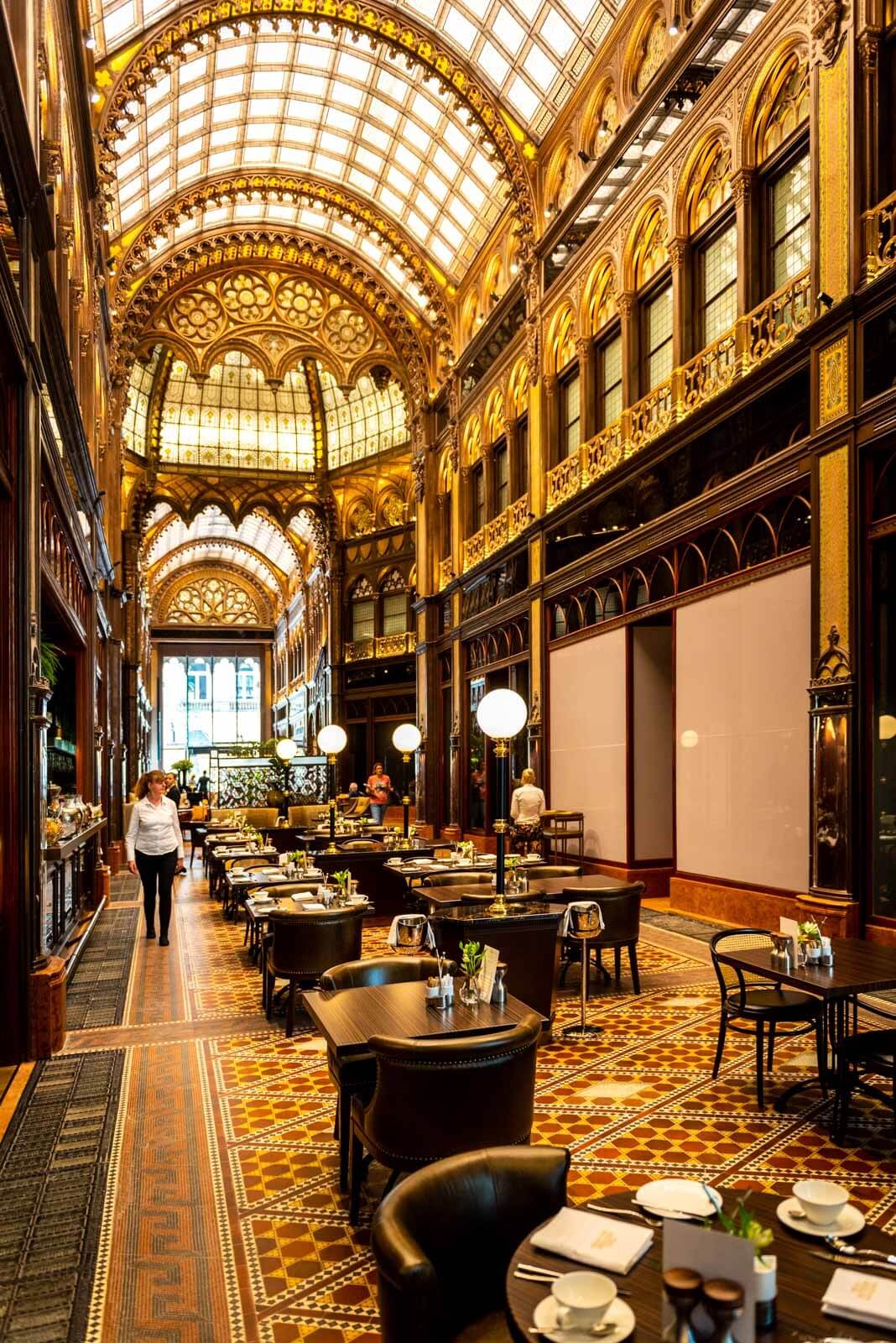 Fő ékessége, a Ferenciek tere és a Petőfi Sándor utca között átvezető hatszögletű passzázs, melyeket egyedi díszítésű, speciális préselt üvegelemekkal, úgynevezett fényhozó Luxfer-prizmákkal (lux=fény, fero=hozni) fedték le.